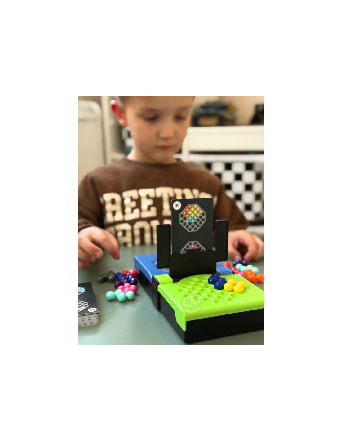 - Z puli swoich kolorowych kulek, gracze jak najszybciej starają się ułożyć wzór pokazany na karcie przed nimi