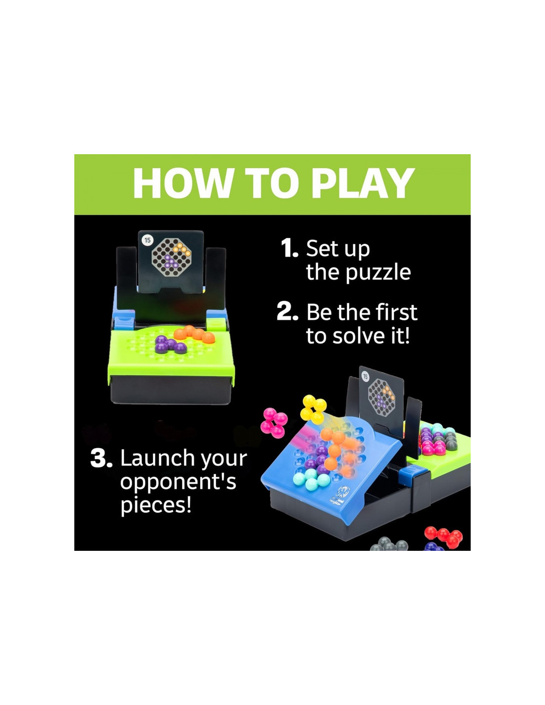 - Gracz, który pierwszy ułoży wzór, naciska przycisk z boku planszy powodując rozrzucenie kulek z planszy przeciwnika