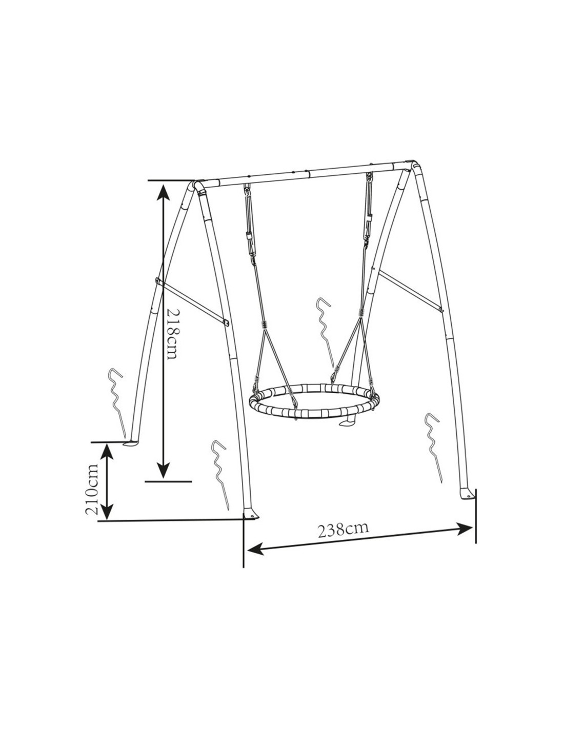 ✔ Dėl kompaktiškų matmenų jis tilps net mažame sode, o 2,2 m aukštis suteikia platų sūpavimo diapazoną