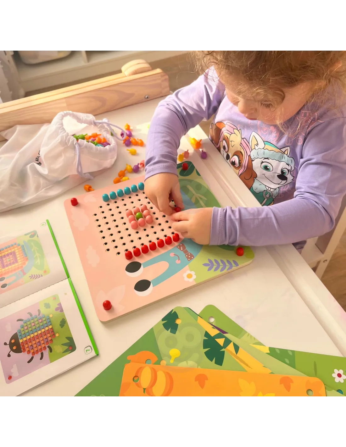 Atraskite stebuklingą būdą, kaip suderinti linksmą žaidimą su jūsų mažylio intensyviu vystymusi, naudodami šį unikalų dėlionę! Kiekviena lentelė – tai nauja nuotykių kelionė, kurioje jūsų vaikas tampa mažuoju menininku, spalvingomis smeigtukėmis puošdamas sraigės kriauklę ar egzotiškos žuvies žvynelius. Tai ne tik raštų sudėliojimas, bet visų pirma įdomus kantrybės ir tikslumo pratimas, kuris jus užims valandų valandas. Dėka visiškai natūralių ir saugių medžiagų, galite būti tikri, kad siūlote savo vaikui tai, kas geriausia jam ir aplinkai. Pasirinkite žaislą, kuris žadina vaizduotę ir paverčia mokymąsi nuostabiausia nuotykiu po saule!