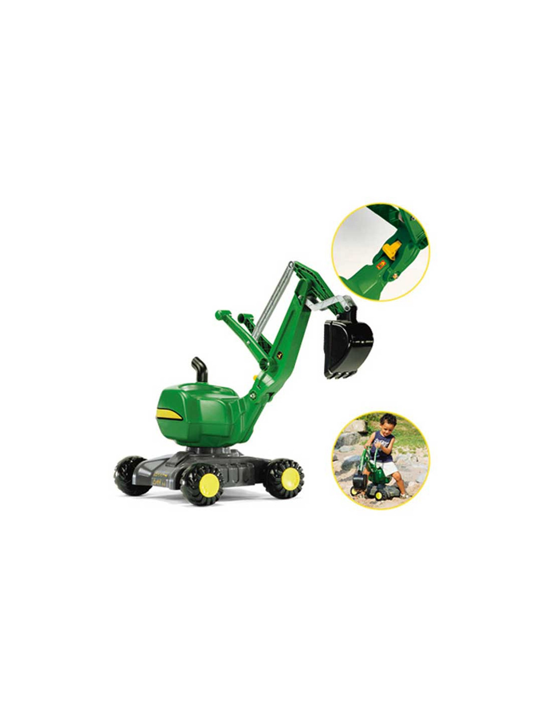 metų amžiaus. Ekskavatorių lengva naudoti - puikiai tinka sodui ar paplūdimiui. Su šiuo visiškai funkcionaliu žaislu mažieji inžinieriai gali susikurti savo statybvietes ir išlaisvinti savo vaizduotę. Ekskavatorius turi įspūdingą 360° pasukimo funkciją, todėl vaikai gali judinti pakrovimo svirtį visomis kryptimis. Tai leidžia jiems lengvai pasiimti smėlį, akmenis ar kitas medžiagas ir gabenti į kitą vietą. Ypatinga ekskavatoriaus savybė yra automatinis pakrovimo svirties fiksavimas. Paėmus medžiagą, rankena automatiškai užsifiksuoja, kad būtų galima saugiai transportuoti. Tai suteikia vaikams tikrovišką žaidimo patirtį ir palaiko jų motorinius įgūdžius. Dėl ryškių spalvų ir autentiško dizaino John Deere rollyDigger traukia akį.