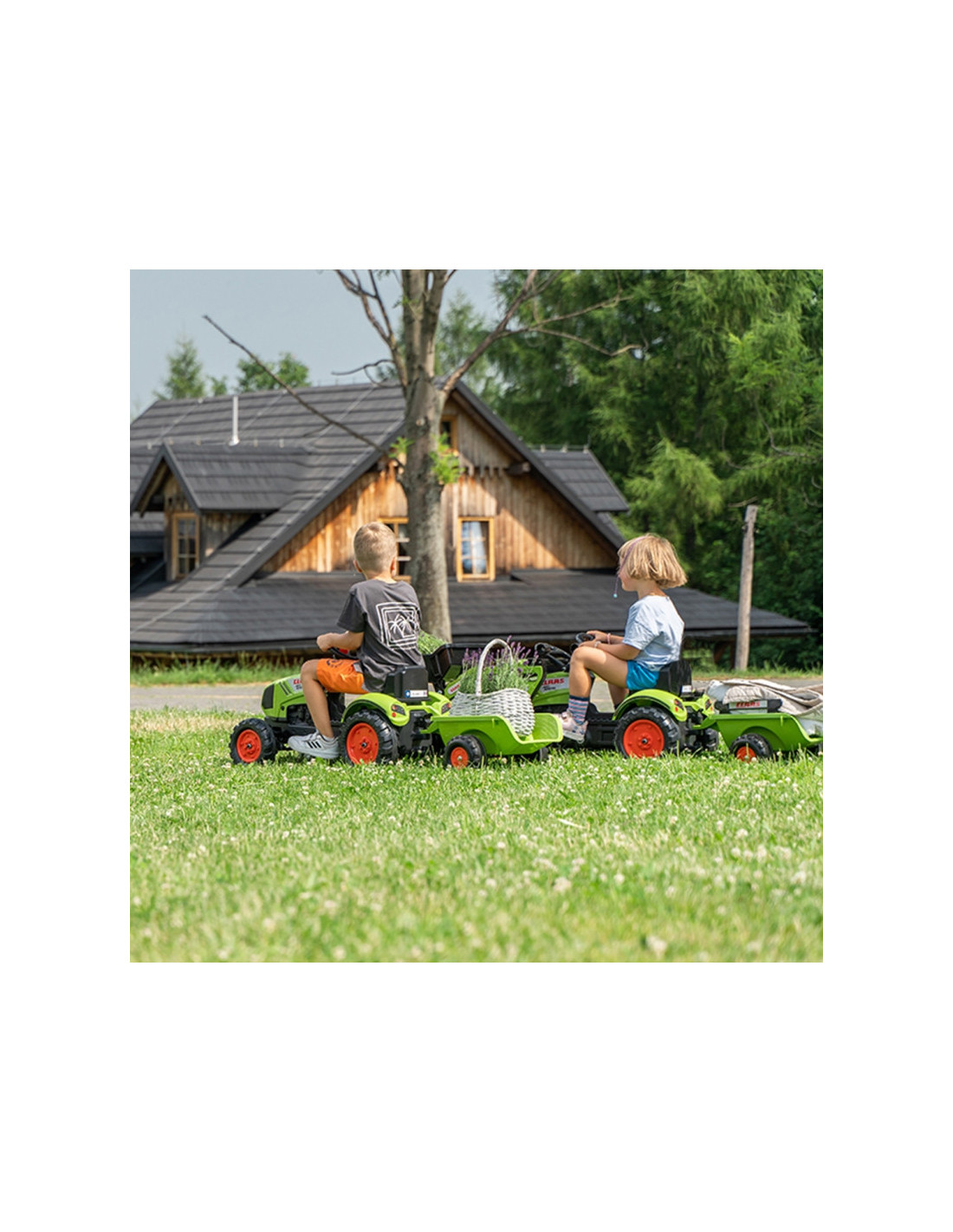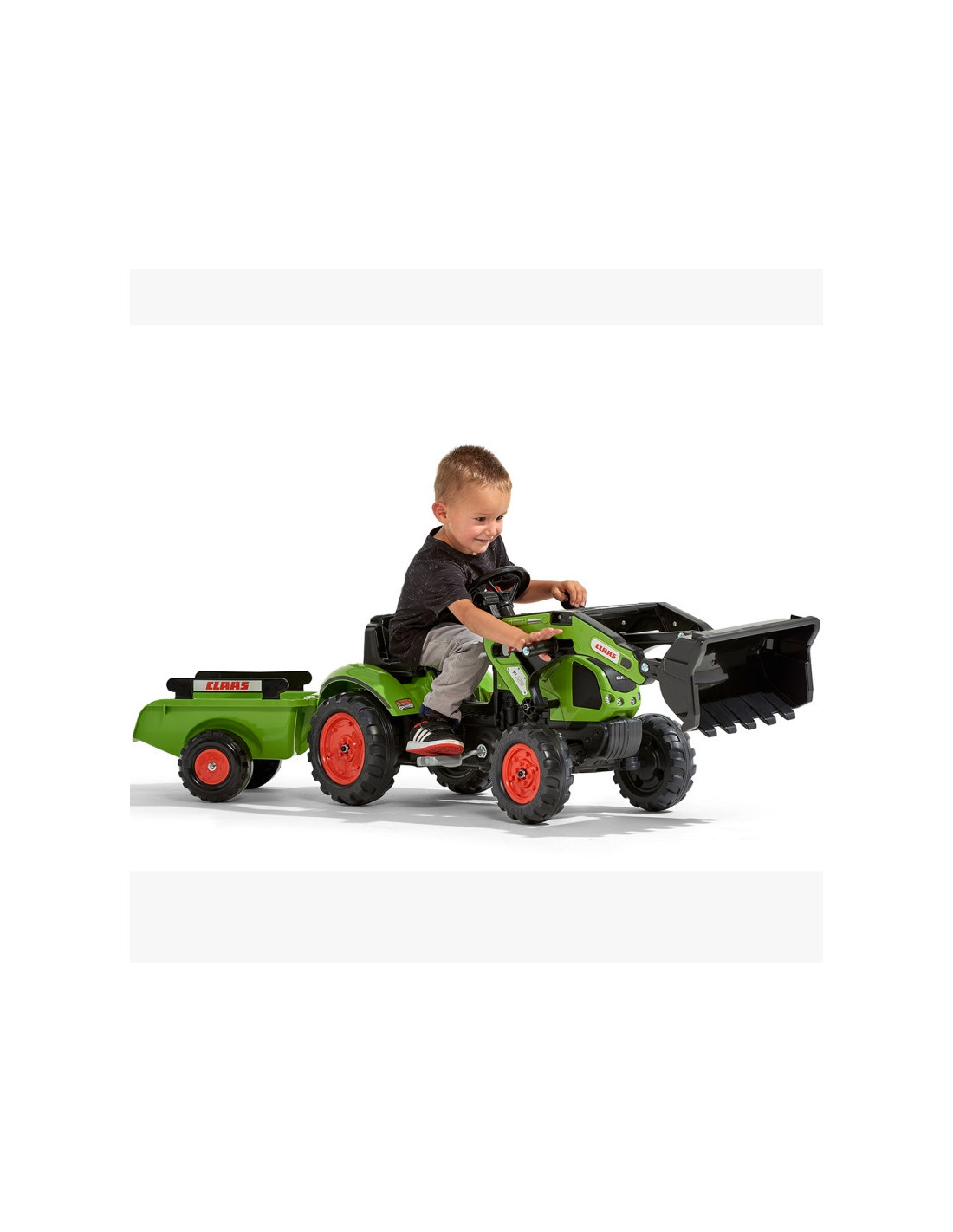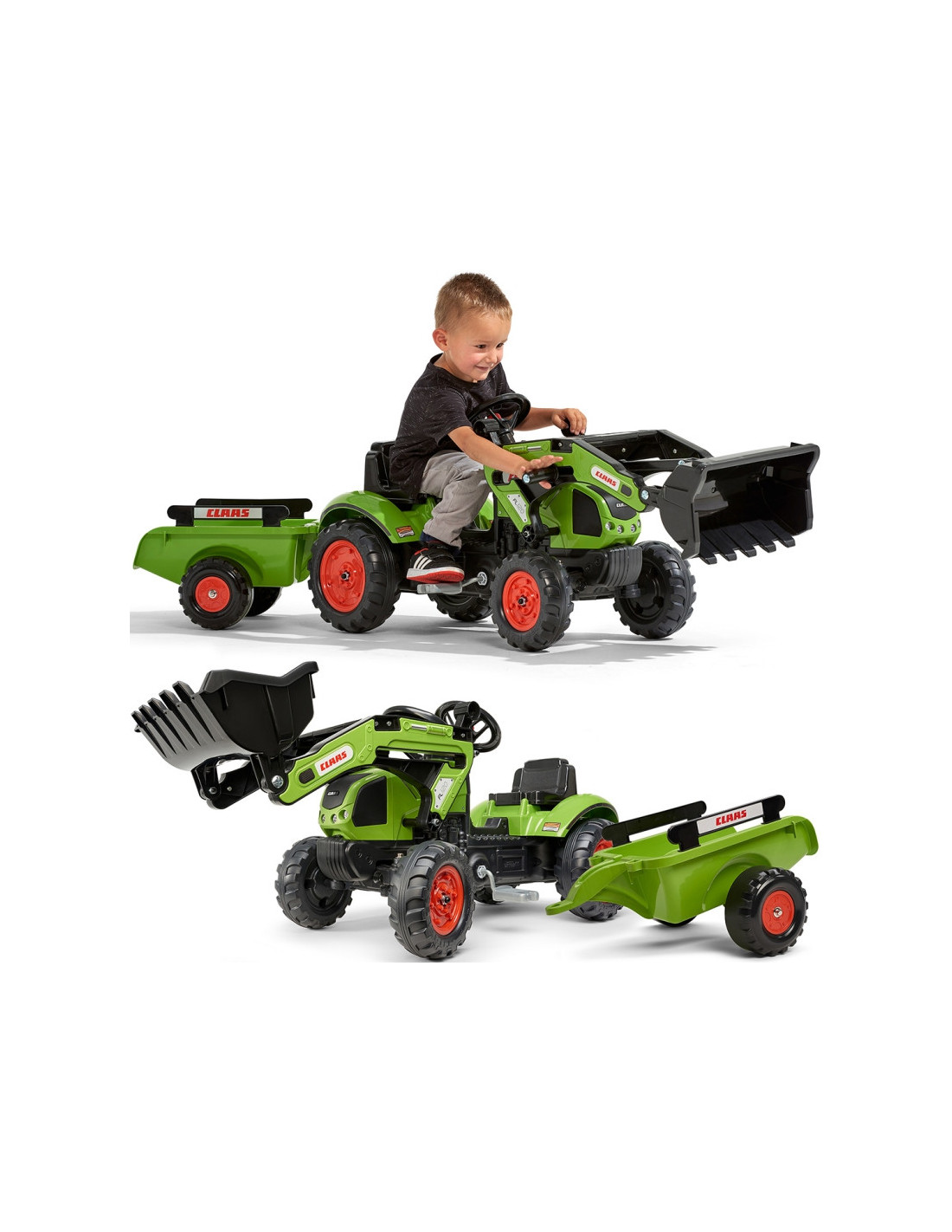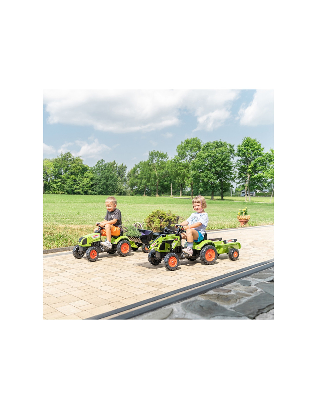FALK pedalinis traktorius CLAAS su priekaba ir priekiniu kaušu yra daugelio mažų traktorių vairuotojų svajonės išsipildymas. Kruopščiai pagaminta, atkreipiant dėmesį į smulkiausias detales! Joks ūkininkas neniekintų tokio dalyko. Transporto priemonė pagaminta iš aukščiausios kokybės plastiko, skirta vaikams nuo 2 metų. Rinkinio ilgis 162 cm. Transporto priemonėje yra priekinis kaušas, nuimama priekaba su skydeliais ir vairas su garso signalu. Traktoriaus ratai pagaminti iš aukštos kokybės plastiko.