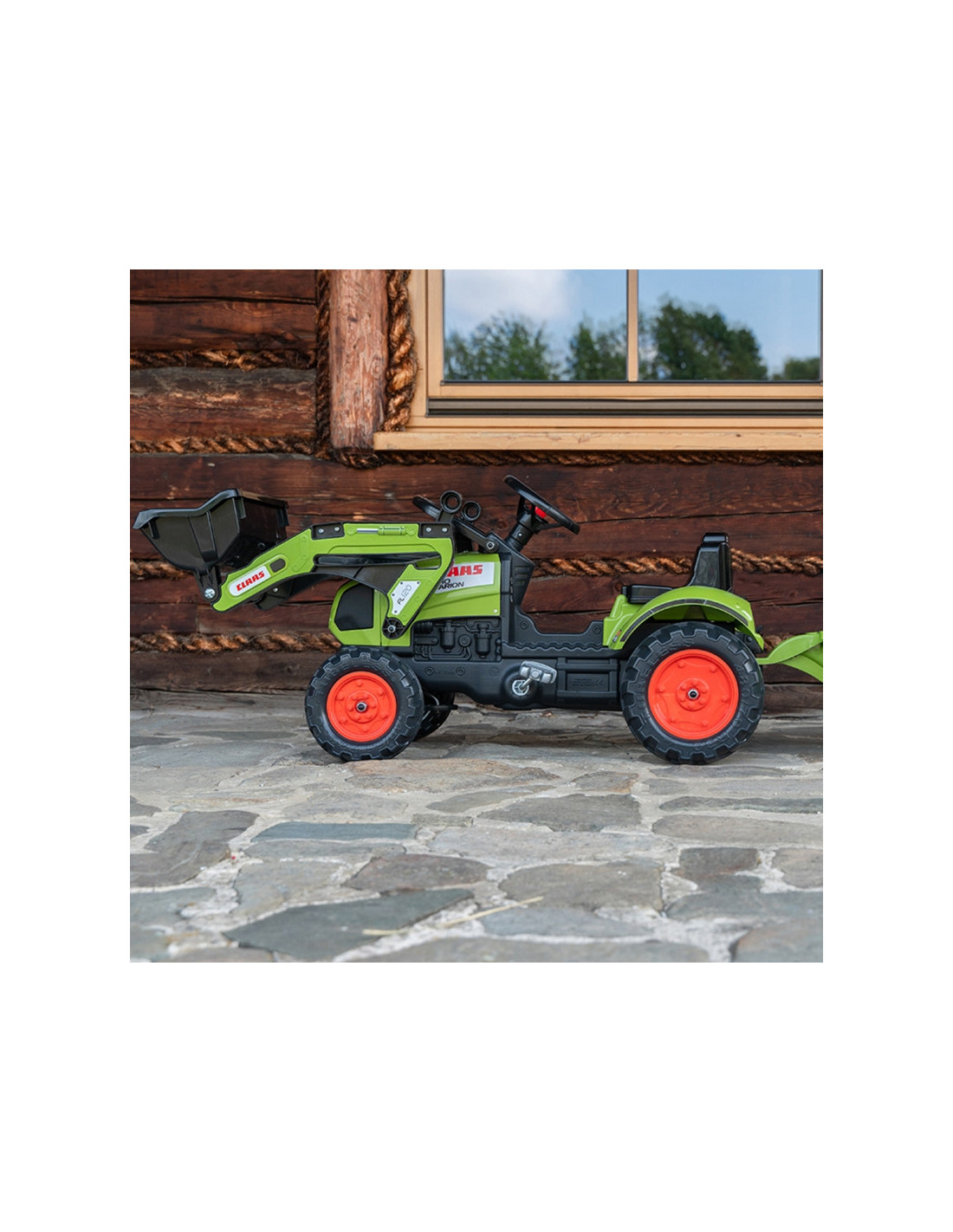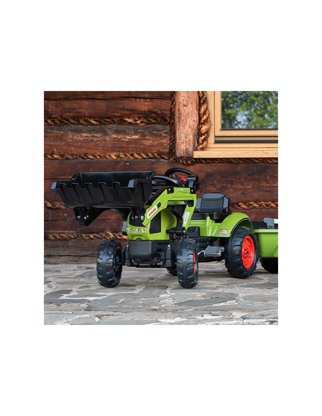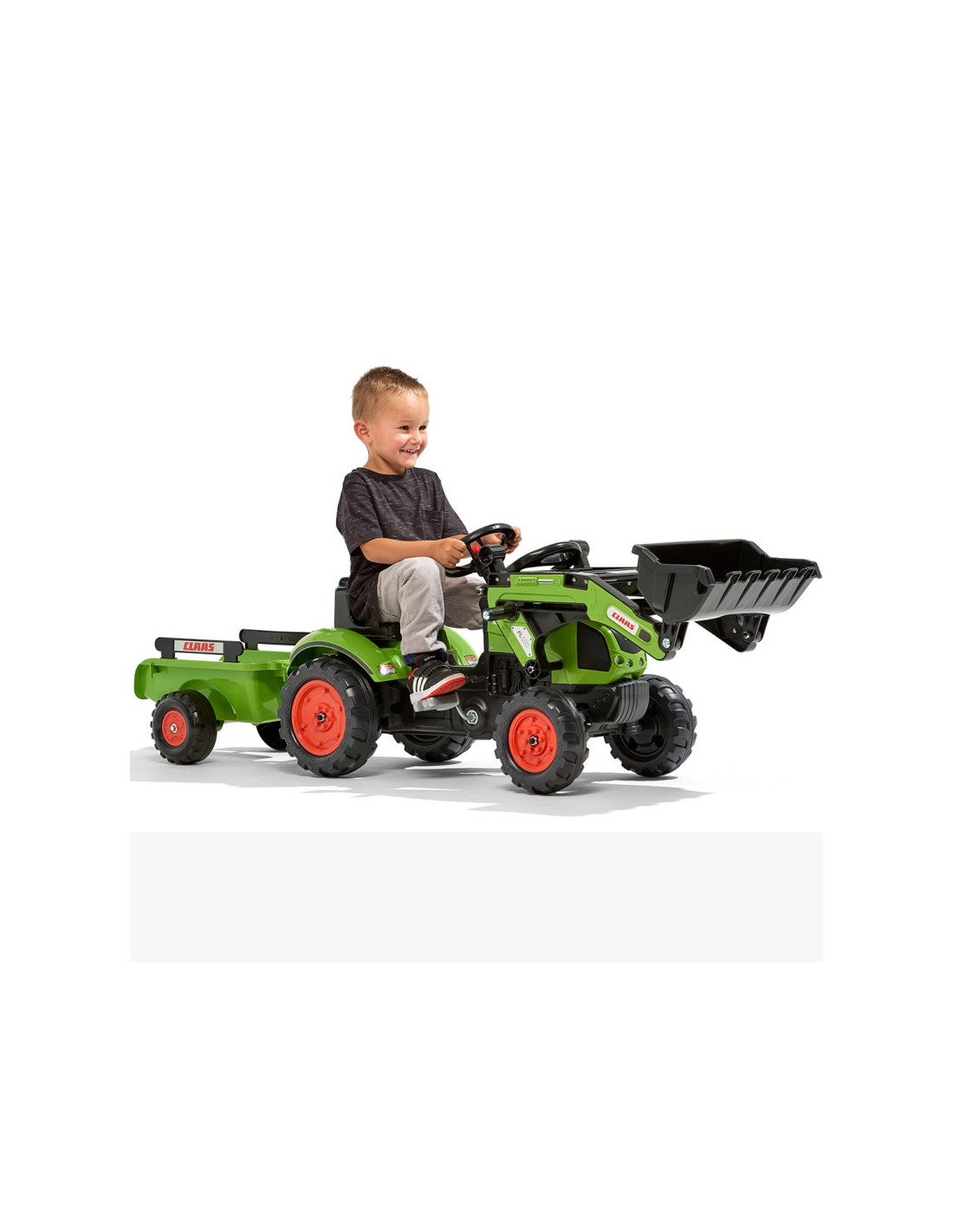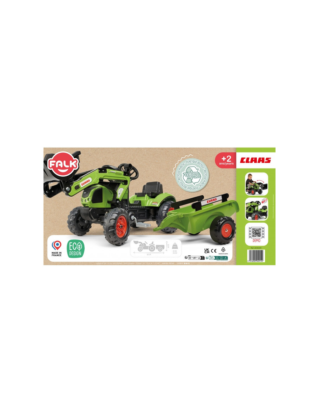 FALK pedalinis traktorius CLAAS su priekaba ir priekiniu kaušu yra daugelio mažų traktorių vairuotojų svajonės išsipildymas. Kruopščiai pagaminta, atkreipiant dėmesį į smulkiausias detales! Joks ūkininkas neniekintų tokio dalyko. Transporto priemonė pagaminta iš aukščiausios kokybės plastiko, skirta vaikams nuo 2 metų. Rinkinio ilgis 162 cm. Transporto priemonėje yra priekinis kaušas, nuimama priekaba su skydeliais ir vairas su garso signalu. Traktoriaus ratai pagaminti iš aukštos kokybės plastiko.