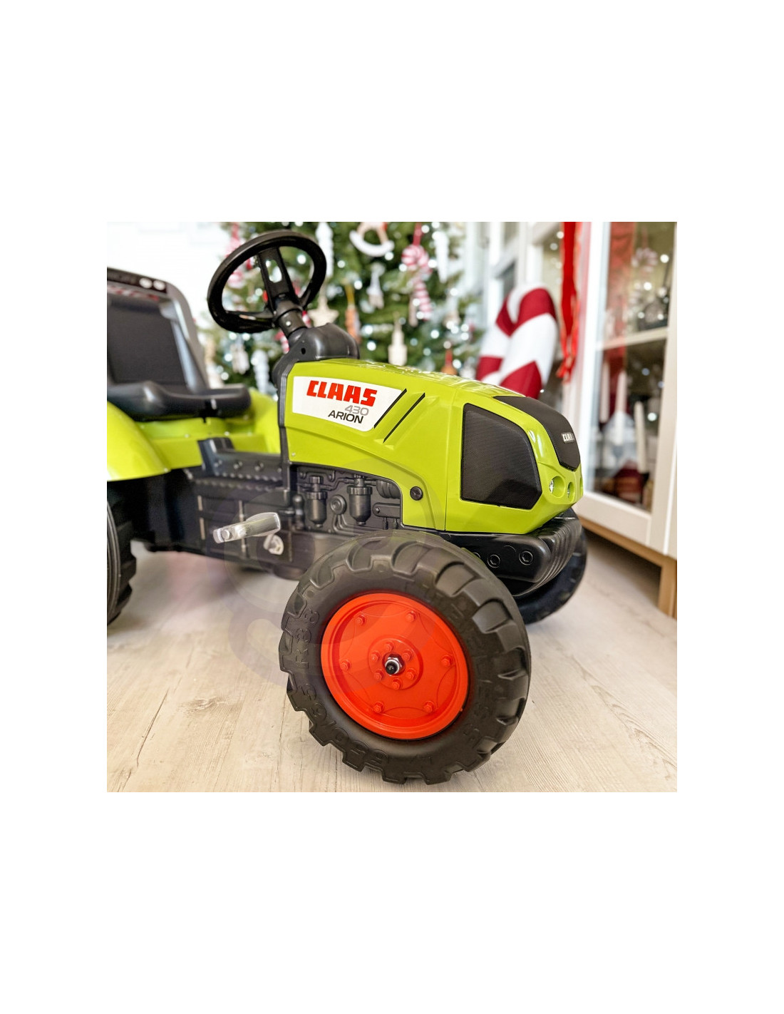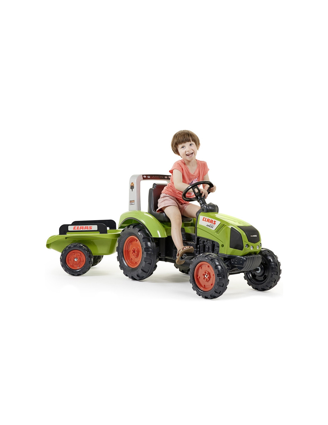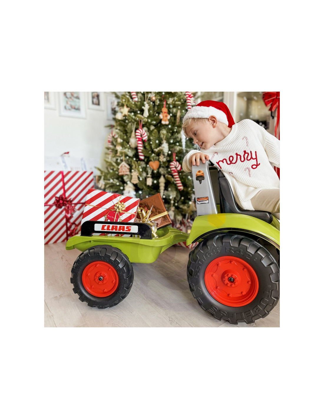 FALK pedalinis traktorius "Claas" su priekaba yra daugelio mažų traktorių vairuotojų svajonės išsipildymas. Kruopščiai pagaminta, atkreipiant dėmesį į smulkmenas! Joks ūkininkas neniekintų tokio dalyko. Transporto priemonė pagaminta iš aukščiausios kokybės plastiko. Skirta vaikams nuo 3 metų. Transporto priemonėje yra nuimama priekaba su skydeliais ir vairas su garso signalu. Traktoriaus ratai pagaminti iš aukštos kokybės plastiko.