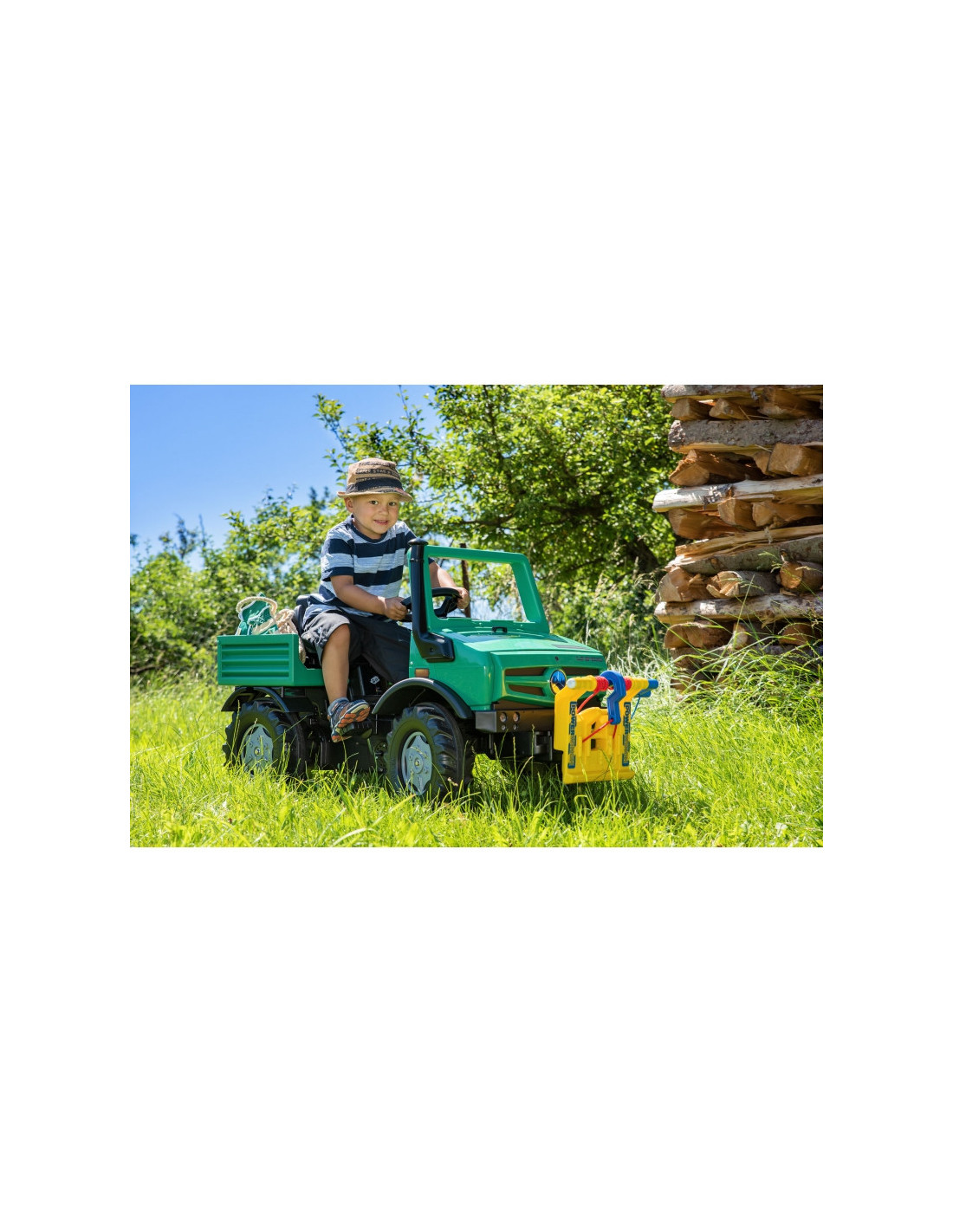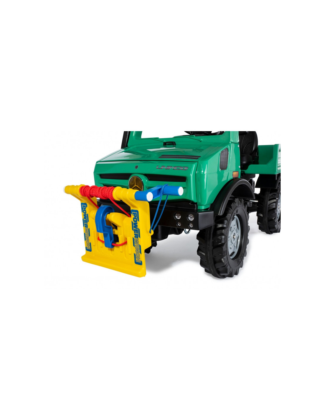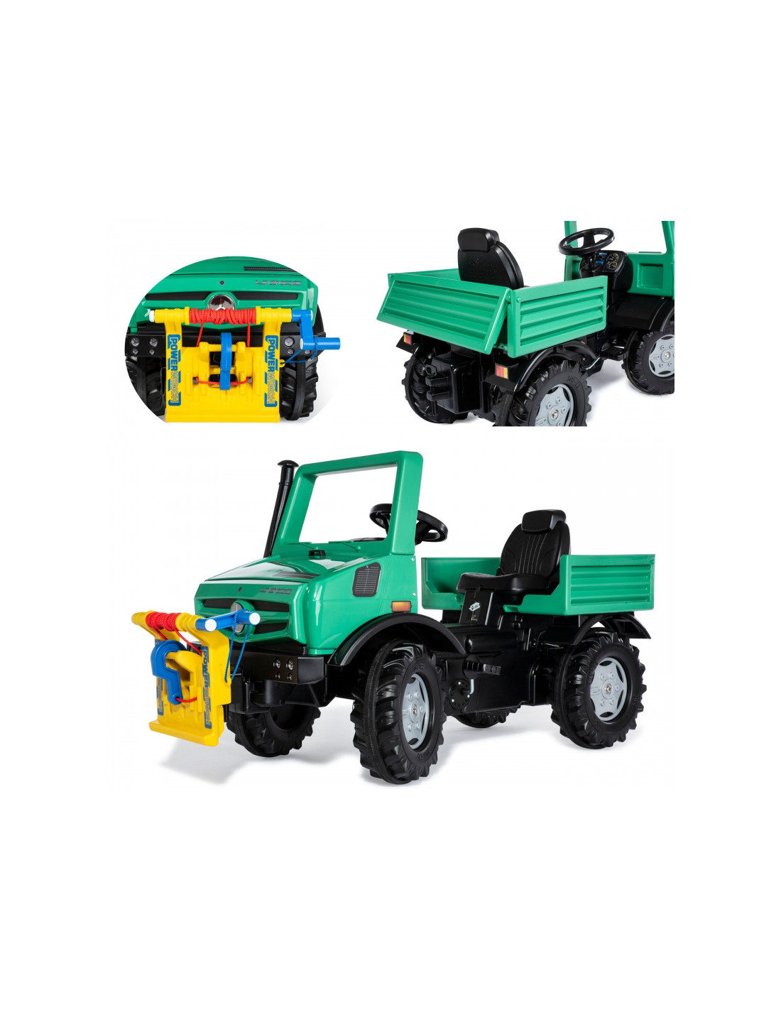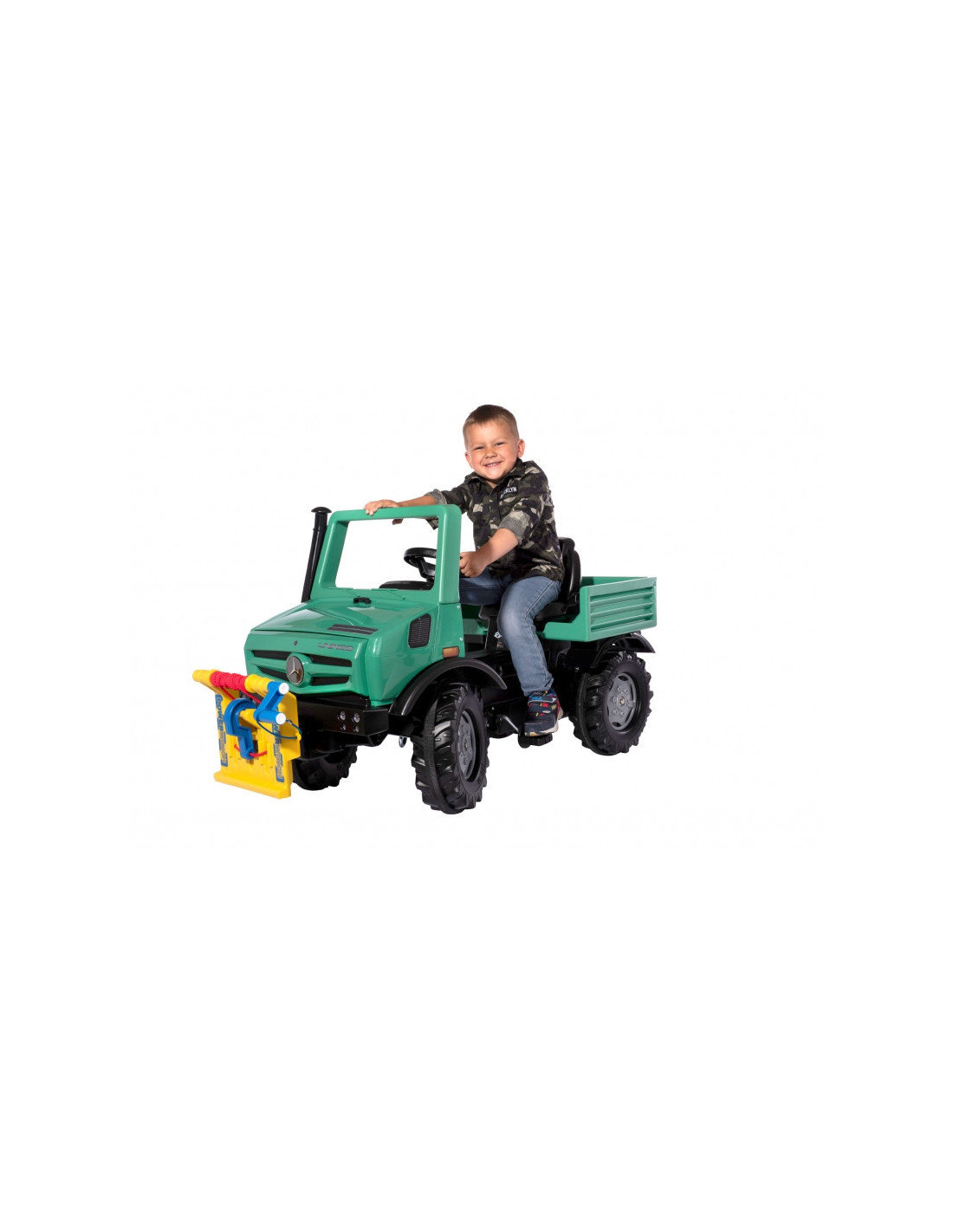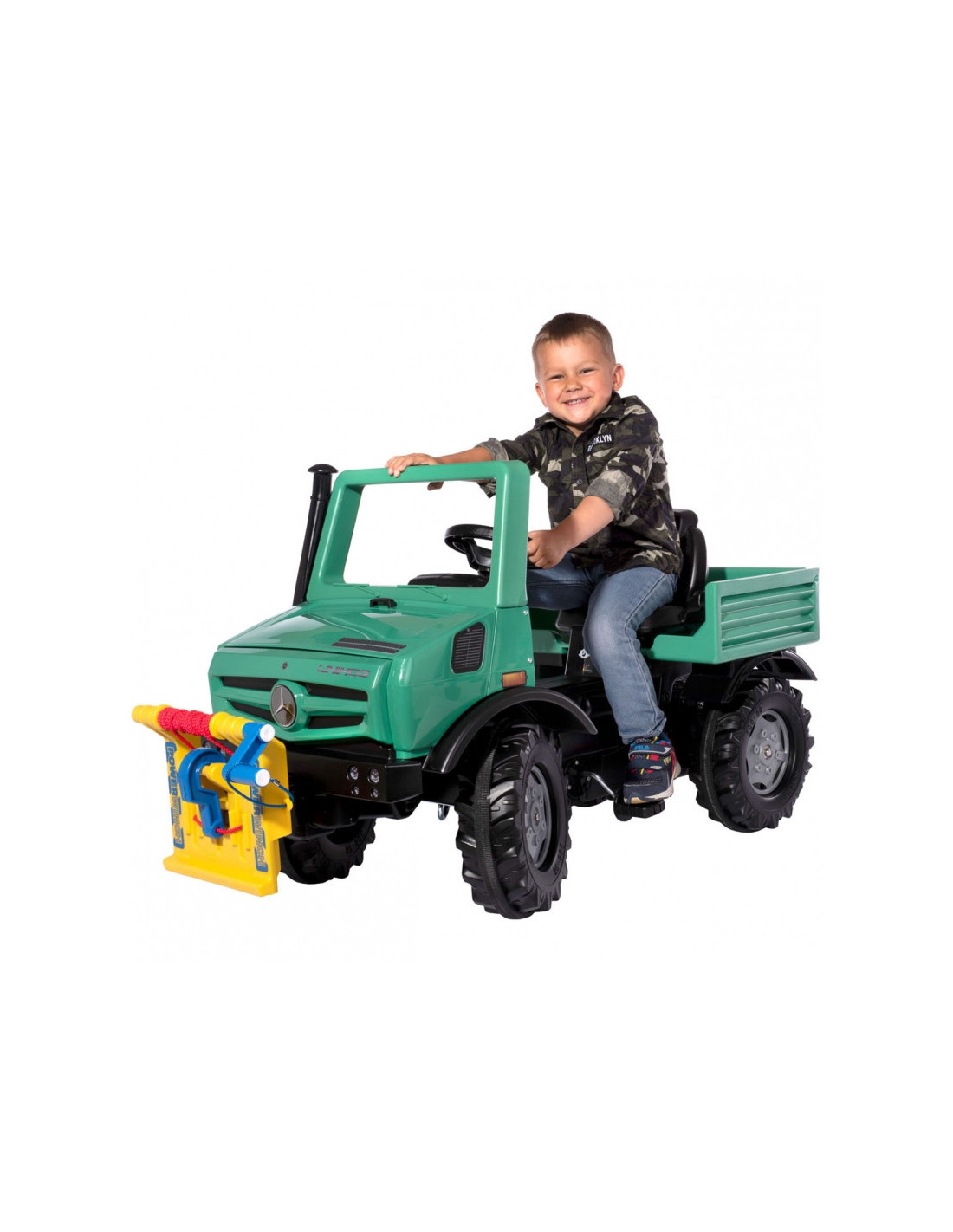 Mercedes-Benz licencijuotas visureigis RollyUnimog Forst su vilkimo lynu yra aukščiausios kokybės originalus vokiškas gaminys, kuris tarnaus jūsų vaikams daugelį metų. Didelis, žalias vežimėlis su virve ir vilkimo kabliu, tai puiki dovana vaikams nuo 3 metų. Automobilis puikiai tinka jauniesiems nuotykių ieškotojams, suteikdamas jiems saugias pramogas su begaliniu scenarijų skaičiumi! Žalias visureigis Mercedes turi patogią, reguliuojamą sėdynę, kurios dėka automobilis auga kartu su mažyliu. Be to, visa mechaninė sistema yra kruopščiai sukonstruota, o tai garantuoja, kad vaikas neturi prieigos prie jos, užtikrinant visišką saugumą žaidžiant. Vienas iš išskirtinių "RollyUnimog Forest" bruožų yra funkcionali gervė su švaistikliu. Dėl šios priežasties mažieji tyrinėtojai gali žaisti miškininkystės darbų simuliacijas arba eiti padėti kam nors, kam to reikia. Švaistiklis leidžia vaikams traukti virvę ir paimti daiktus – tai puikus būdas lavinti smulkiąją motoriką. Tylios padangos užtikrina, kad žaislas naudojimo metu nekeltų nereikalingo garsaus triukšmo.