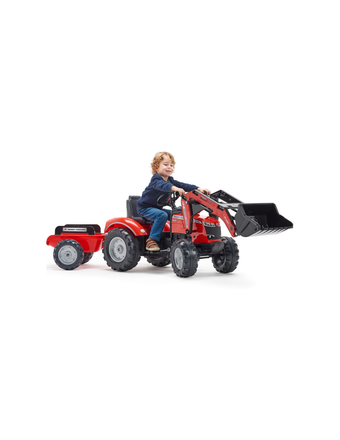 FALK pedalinis traktorius "Massey Ferguson" su priekaba yra daugelio mažų traktorių vairuotojų svajonės išsipildymas. Kruopščiai pagaminta, atkreipiant dėmesį į smulkiausias detales! Joks ūkininkas neniekintų tokio dalyko. Transporto priemonė pagaminta iš aukščiausios kokybės plastiko ir skirta vaikams nuo 3 metų. Transporto priemonėje yra priekinis kaušas, nuimama priekaba su skydeliais ir vairas su garso signalu. Traktoriaus ratai pagaminti iš aukštos kokybės plastiko.