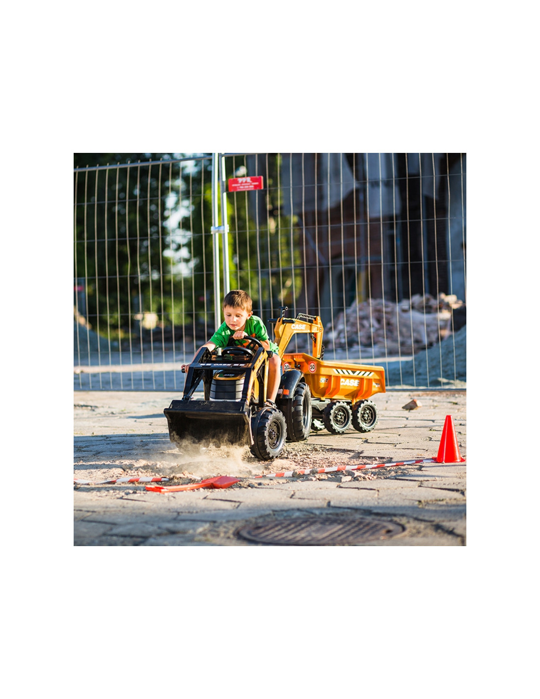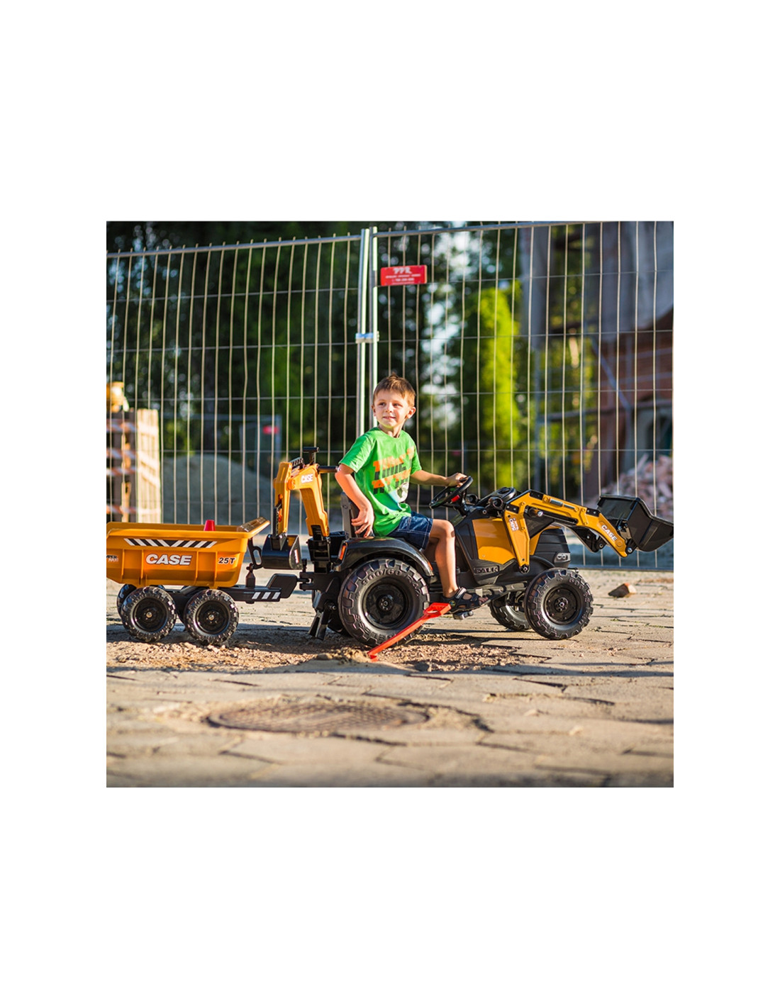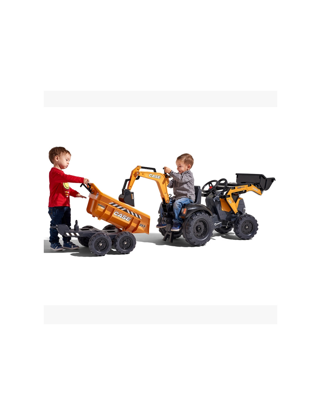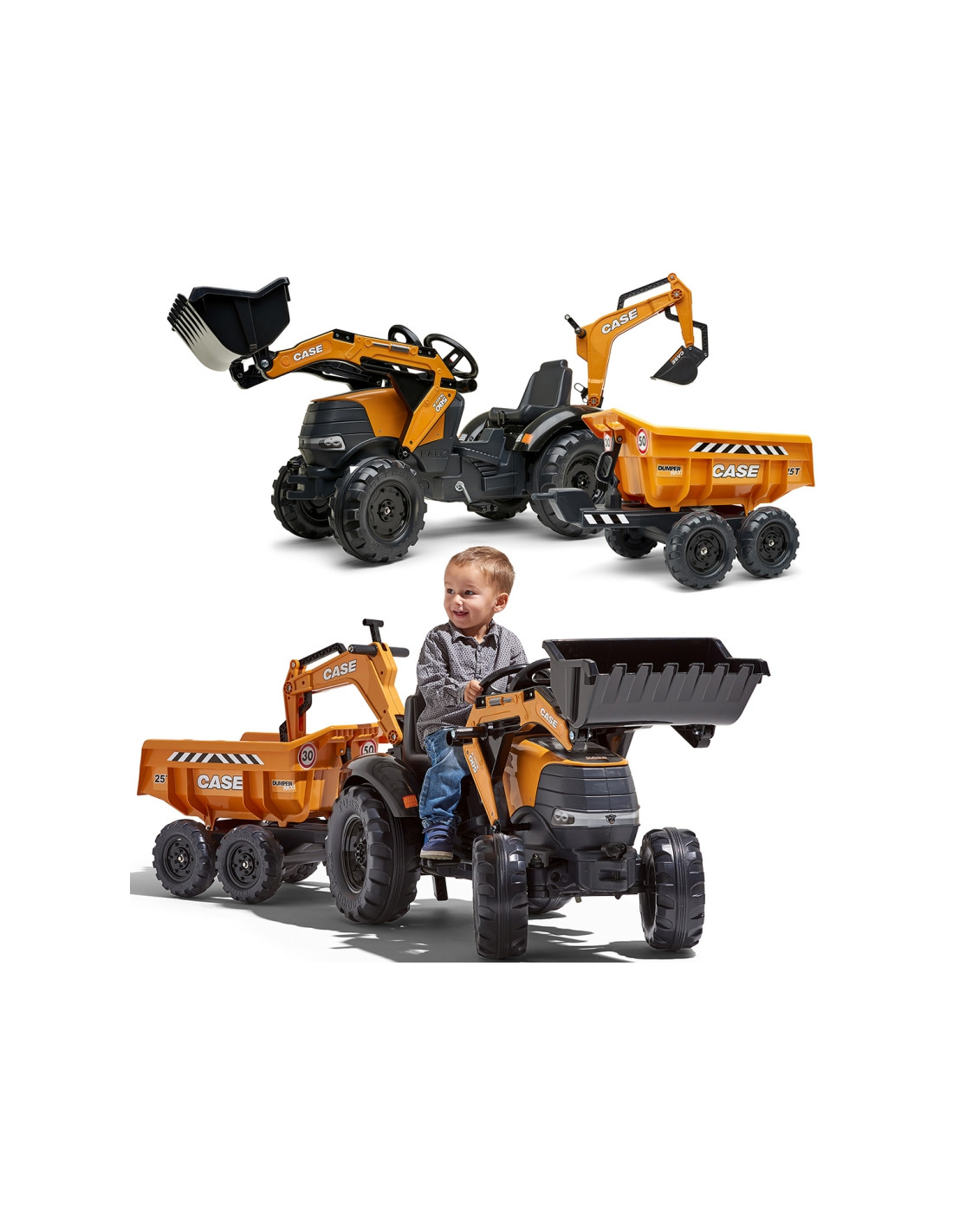 „FALK“ „Case IH“ ekskavatorius-traktorius – daugelio jaunų traktorių vairuotojų svajonės išsipildymas. Kruopščiai pagamintas, atsižvelgiant į smulkiausias detales! Nė vienas ūkininkas neatsisakytų tokio modelio. Ši pedalais varoma transporto priemonė yra puiki dovana bet kuriam vaikui. Naujausias CASE BACKHOE pedalais varomas traktorius vaikams su kaušu, krautuvu ir priekaba yra pagamintas iš aukštos kokybės plastiko ir turi pasukamą sėdynę. Ši transporto priemonė tinka vaikams nuo 3 metų. Šis modelis patiks kiekvienam jaunam traktoriaus vairuotojui. Jis pasižymi originalia spalvų gama.