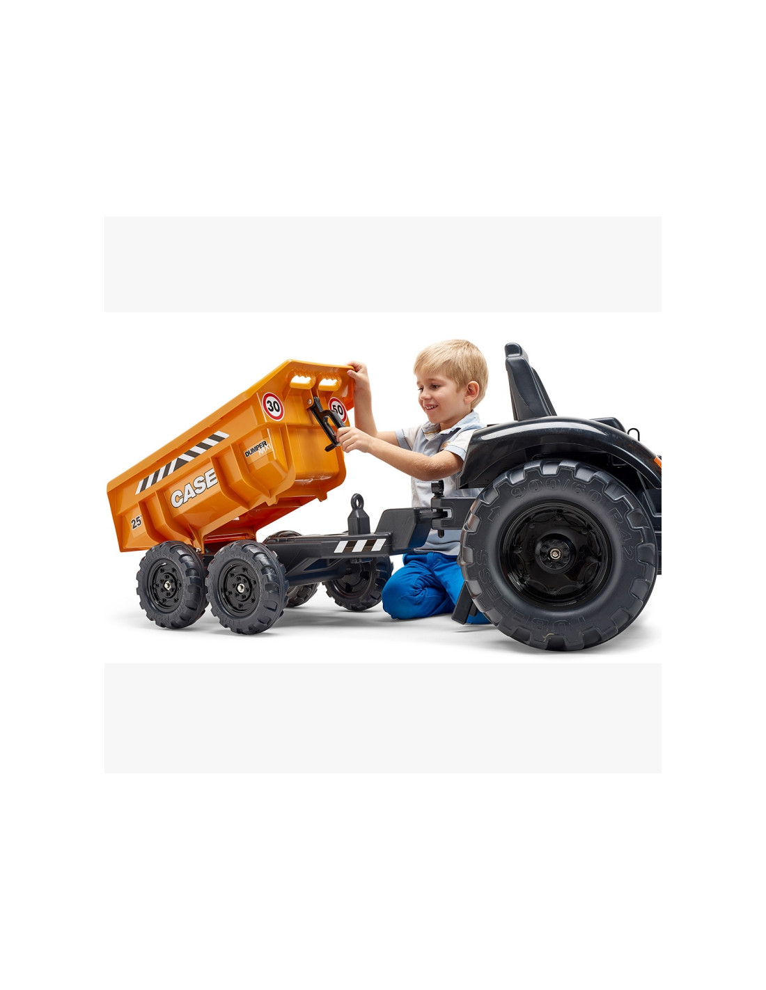 FALK Case IH ekskavatorius-traktorius, oranžinis su priekaba, kilnojamuoju kaušu vaikams nuo 3 metų