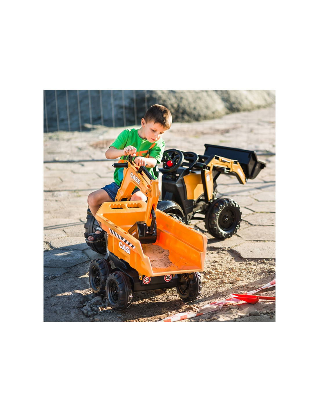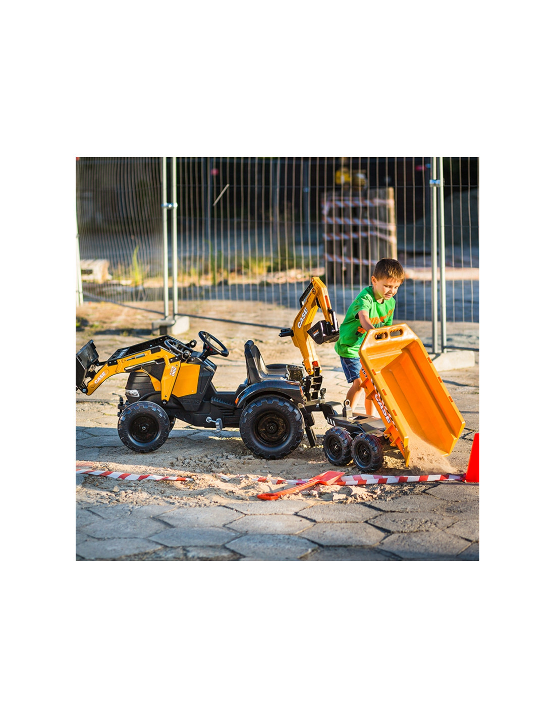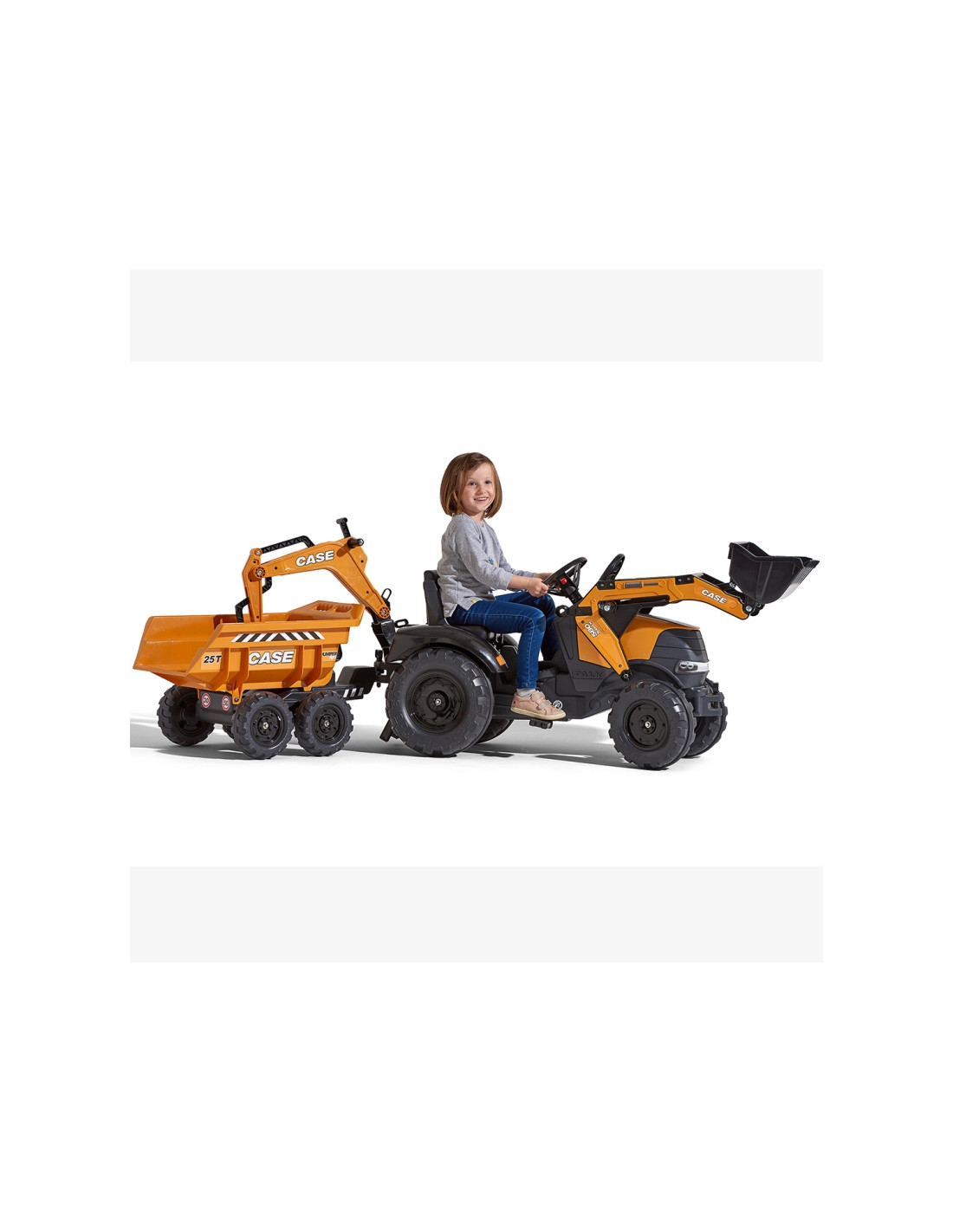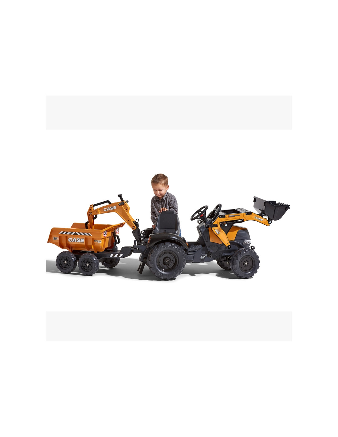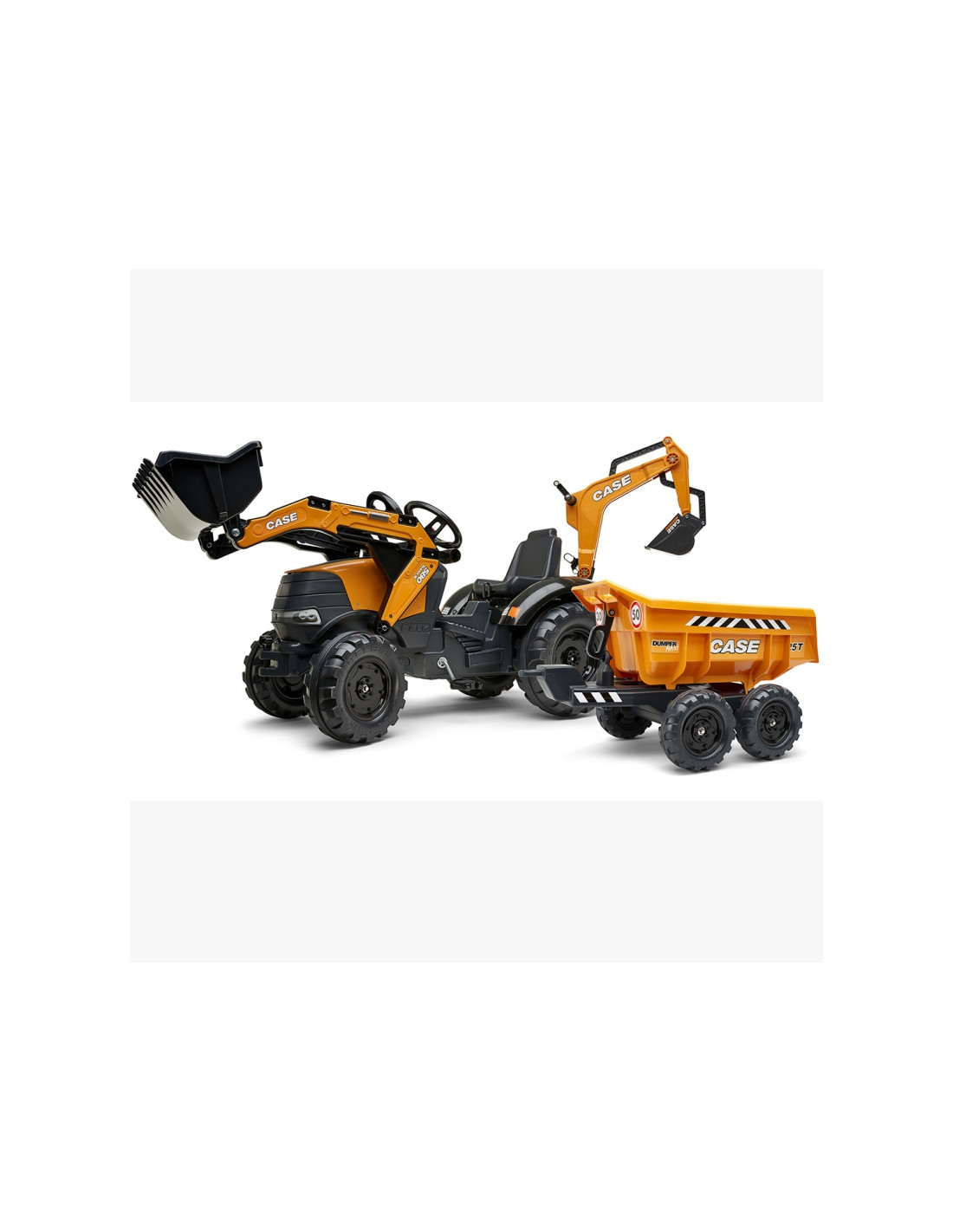 FALK Case IH ekskavatorius-traktorius, oranžinis su priekaba, kilnojamuoju kaušu vaikams nuo 3 metų