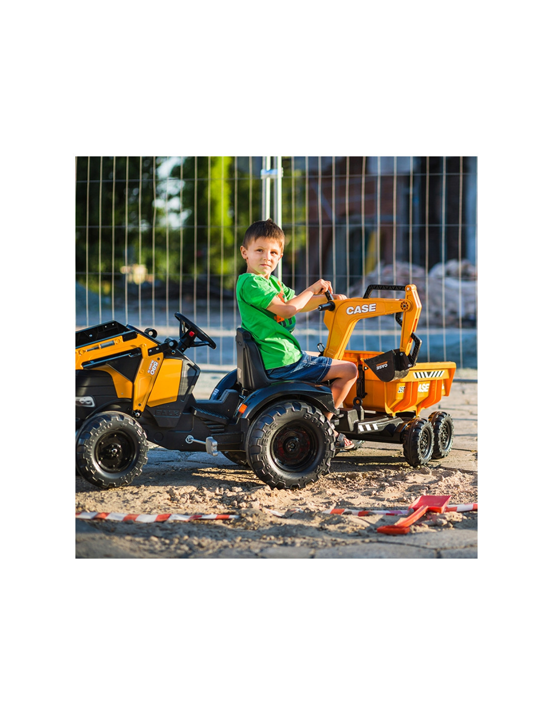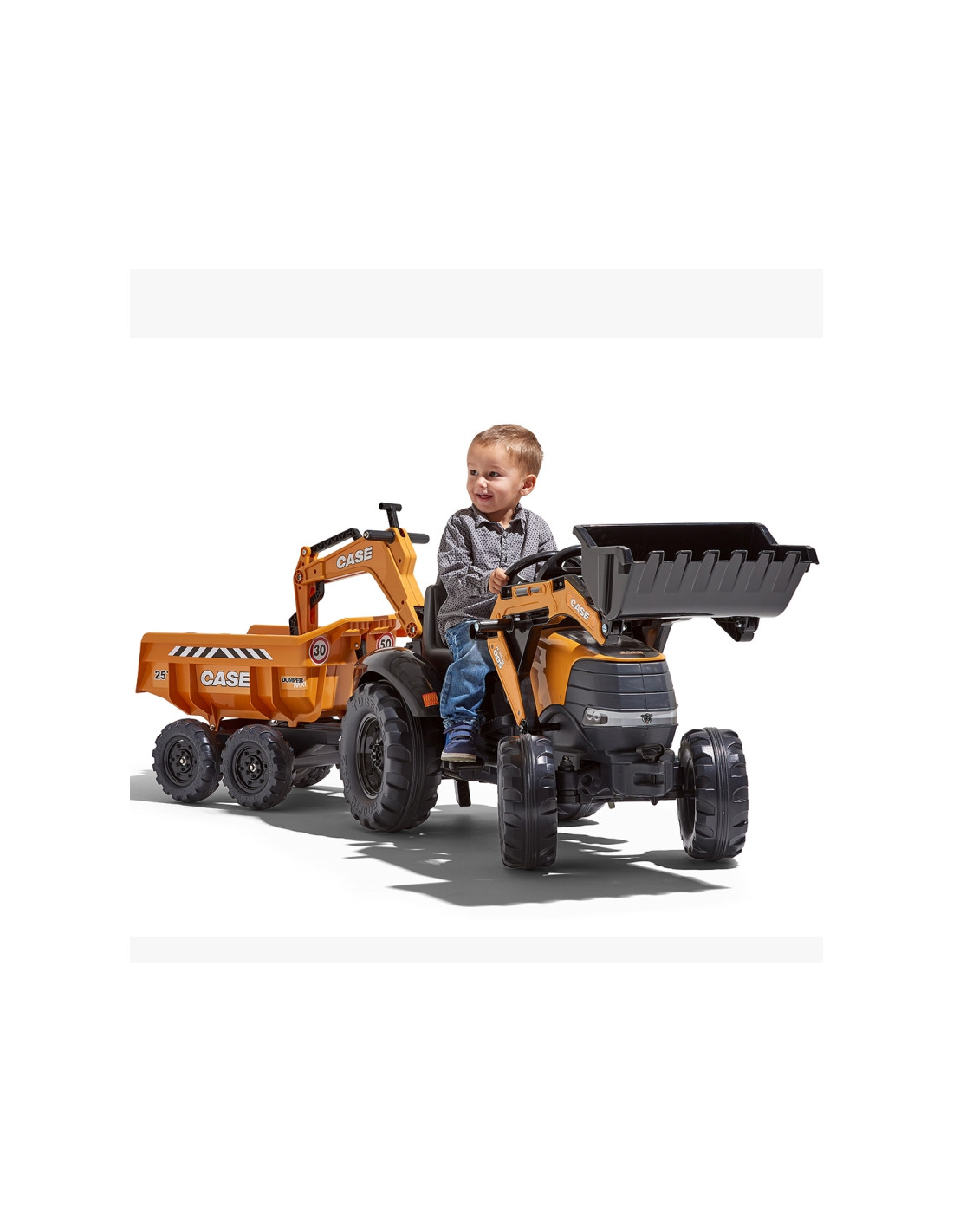 „FALK“ „Case IH“ ekskavatorius-traktorius – daugelio jaunų traktorių vairuotojų svajonės išsipildymas. Kruopščiai pagamintas, atsižvelgiant į smulkiausias detales! Nė vienas ūkininkas neatsisakytų tokio modelio. Ši pedalais varoma transporto priemonė yra puiki dovana bet kuriam vaikui. Naujausias CASE BACKHOE pedalais varomas traktorius vaikams su kaušu, krautuvu ir priekaba yra pagamintas iš aukštos kokybės plastiko ir turi pasukamą sėdynę. Ši transporto priemonė tinka vaikams nuo 3 metų. Šis modelis patiks kiekvienam jaunam traktoriaus vairuotojui. Jis pasižymi originalia spalvų gama.