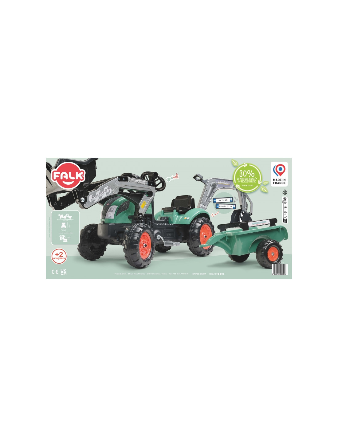 „Falk“ „Farm Lander“ ekskavatorius-krautuvas su priekaba – daugelio mažųjų traktorių vairuotojų svajonės išsipildymas. Kruopščiai pagamintas, atsižvelgiant į mažiausias detales! Joks ūkininkas neatsisakytų šio varianto. Ši pedalais varoma transporto priemonė yra puiki dovana bet kuriam mažyliui. „Farm Lander“ pedalais varoma transporto priemonė su kaušu, krautuvu ir priekaba pagaminta iš aukštos kokybės, 30 % perdirbto plastiko.