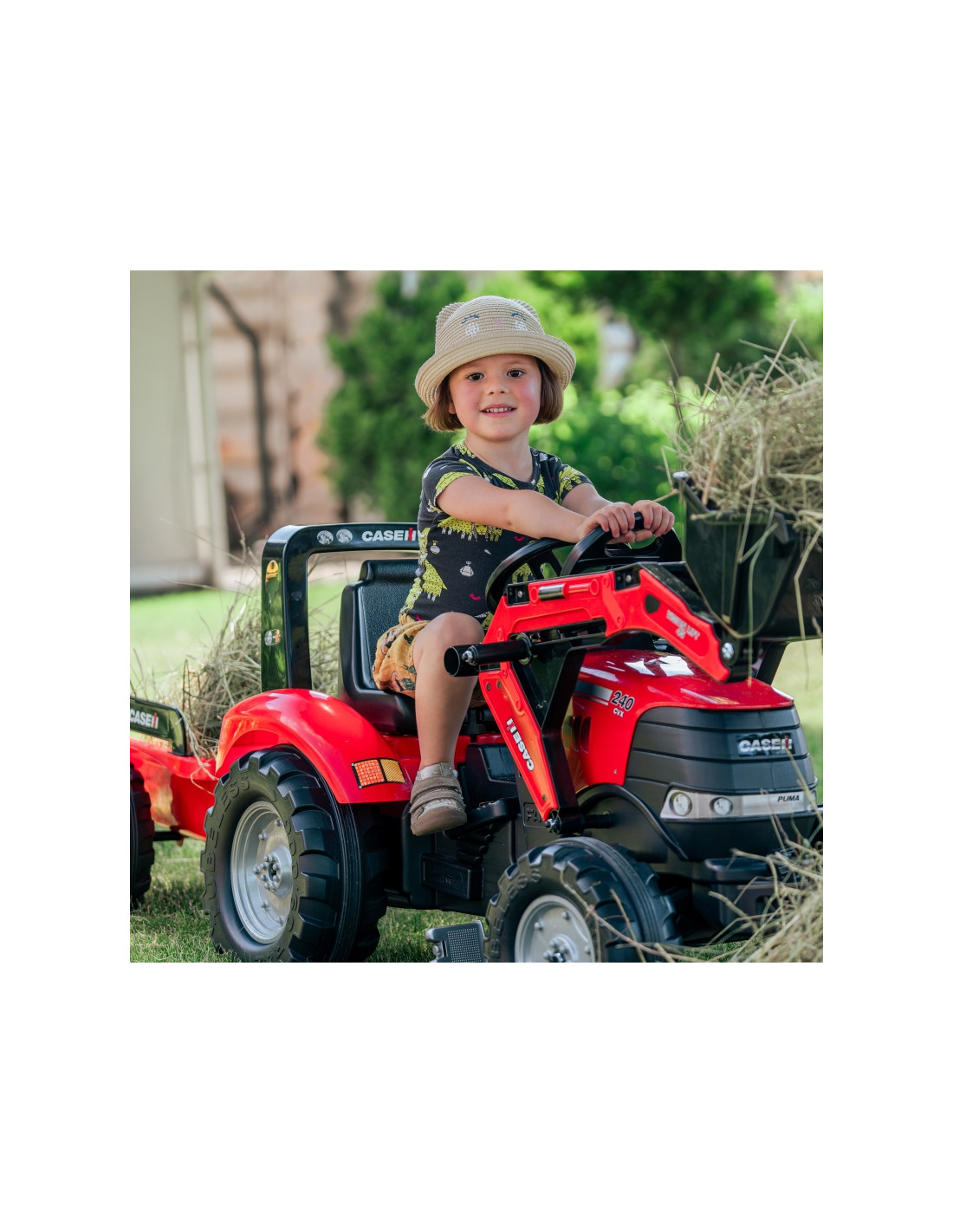 „FALK Case“ pedalais varomas traktorius su priekaba – daugelio vaikų svajonės išsipildymas. Kruopščiai pagamintas, atsižvelgiant į smulkiausias detales! Nei vienas vaikas nenusivils. Pagaminta iš aukščiausios kokybės plastiko. Tinka vaikams nuo 3 metų amžiaus. Turi nuimamą priekabą su panelėmis ir vairą su garso signalu. Traktoriaus ratai pagaminti iš aukštos kokybės plastiko.