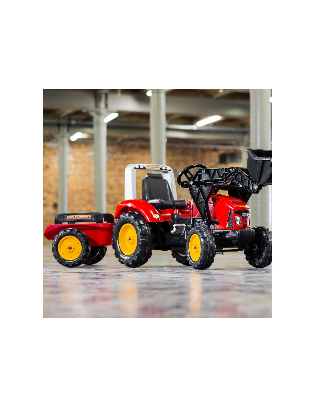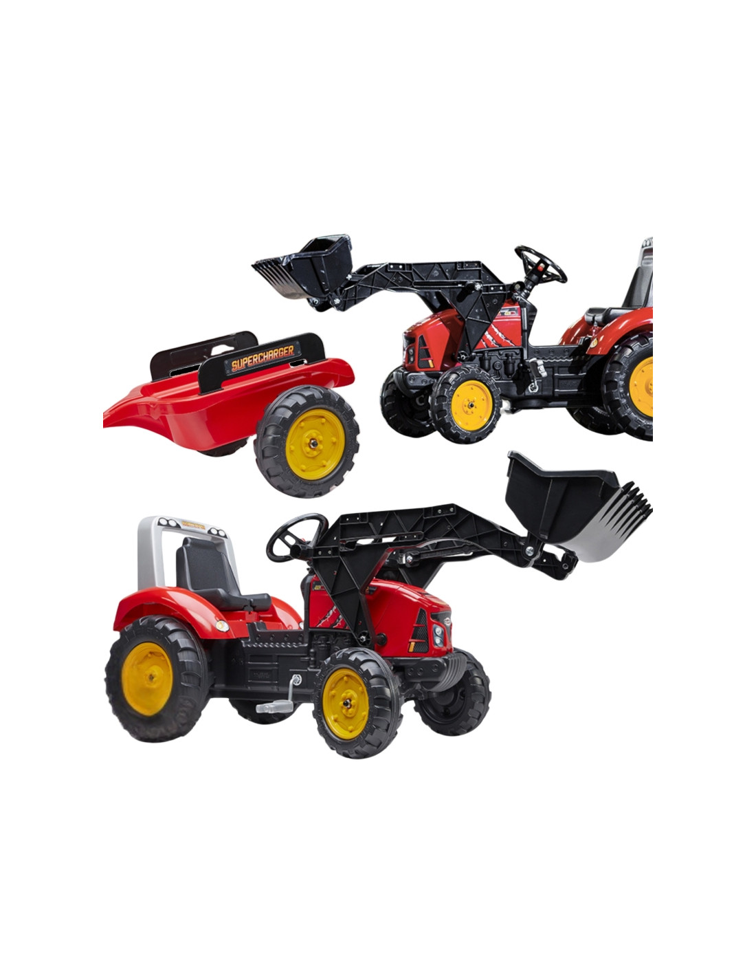 „FALK“ raudonas „Supercharger“ pedalais minamas traktorius su priekaba – kiekvieno mažojo traktoriaus vairuotojo svajonės išsipildymas. Kruopščiai pagamintas, atsižvelgiant į mažiausias detales! Nei vienas ūkininkas nenusivils. Pagaminta iš aukščiausios kokybės plastiko, ši transporto priemonė tinka vaikams nuo 3 metų amžiaus. Ji turi priekinį kaušą, nuimamą priekabą su panelėmis ir vairą su garso signalu. Traktoriaus ratai pagaminti iš aukštos kokybės plastiko. Traktorius taip pat turi atidaromą variklio dangtį su imituojamu tikru varikliu.