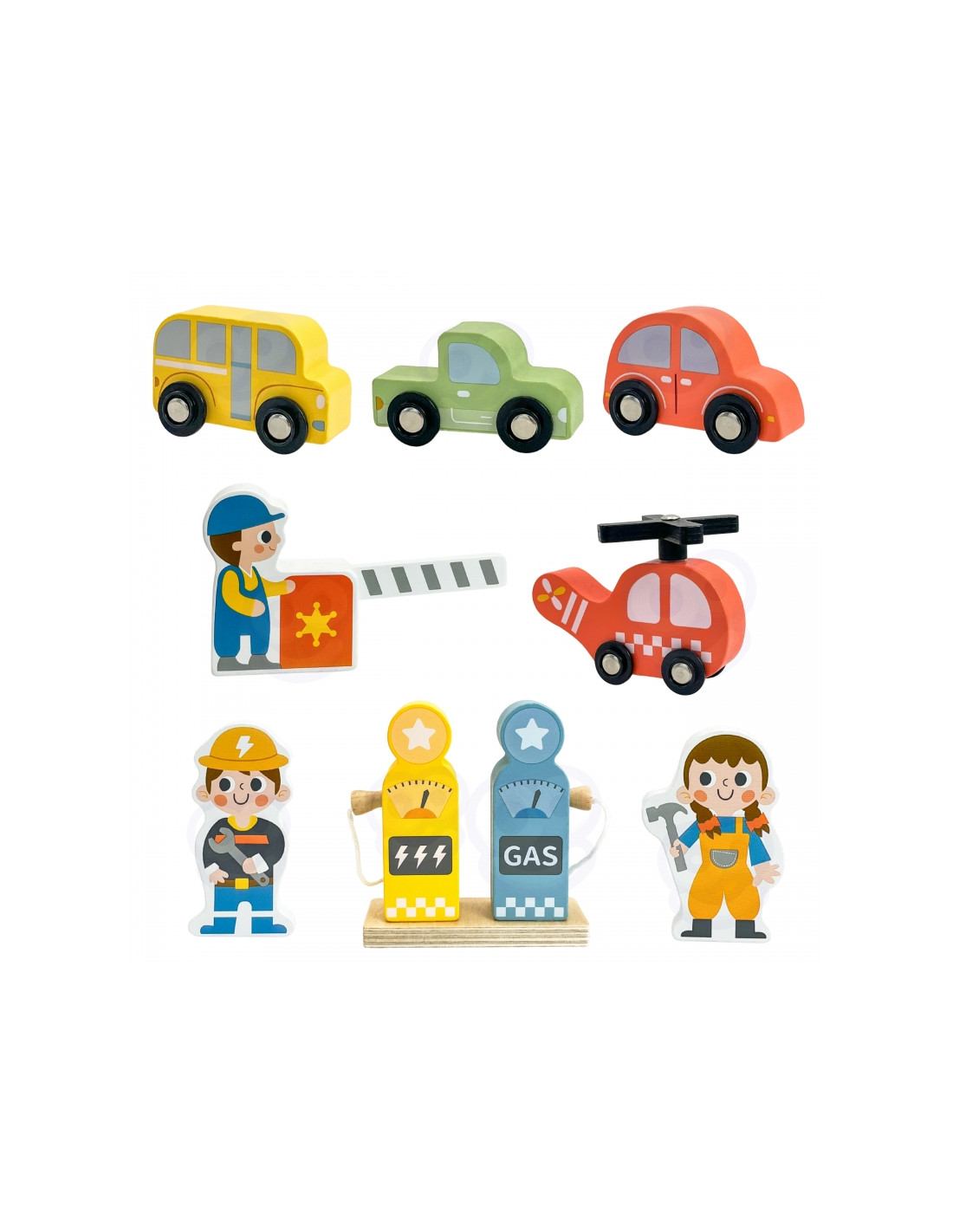 - - Motoriniai įgūdžiai – tikslus mažų medinių transporto priemonių valdymas rampomis, čiuožyklomis ir stovėjimo aikštelėmis lavina akių ir rankų koordinaciją bei pirštų miklumą. Figūrėlių pozicionavimas, degalinės komponentų valdymas ir sraigtasparnio judėjimas reikalauja kontroliuojamų, tikslių rankų judesių.