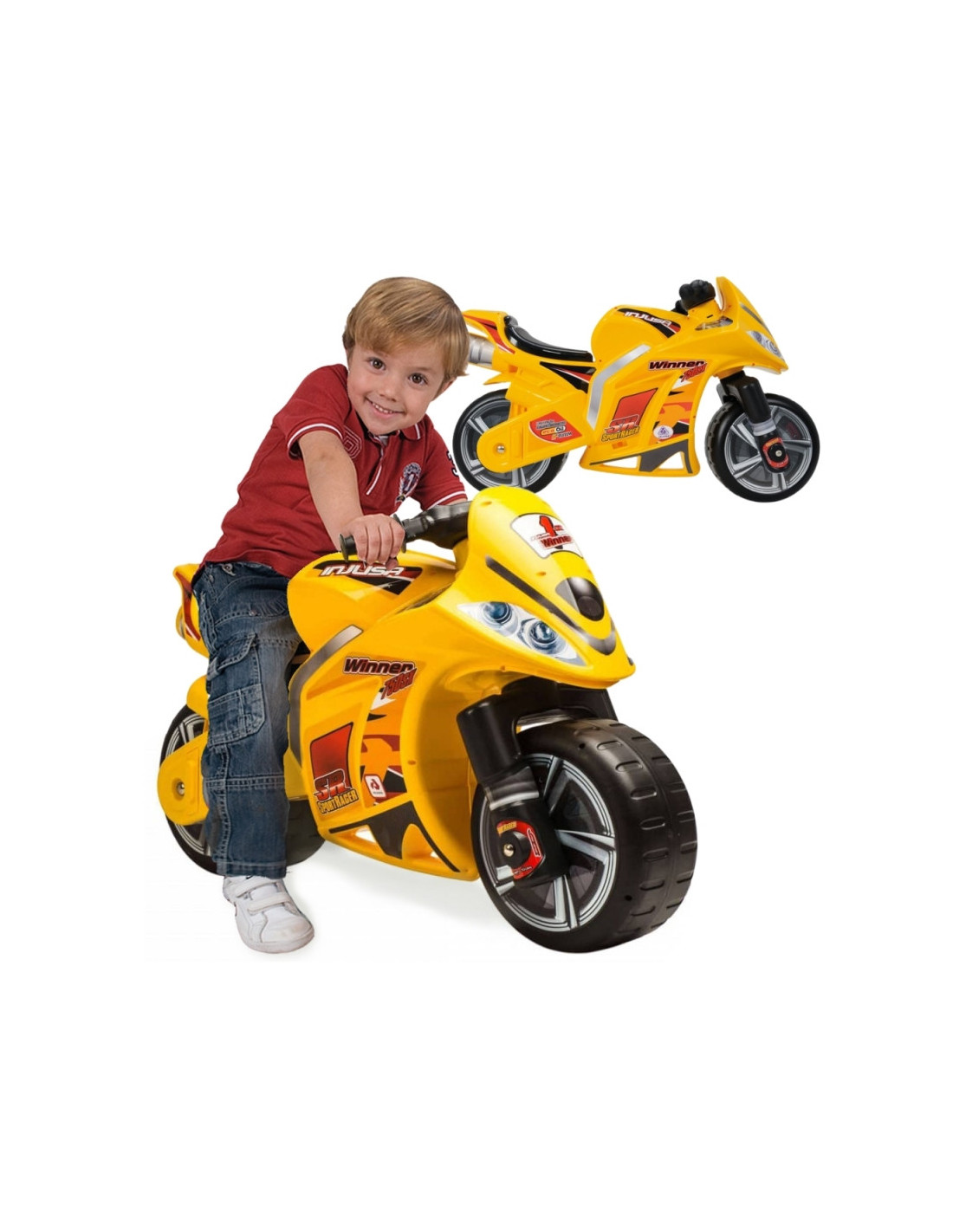 Ispanijos dviračių gamintojo INJUSA "Winner Running Motorcycle" yra puiki dovanos idėja vaikams nuo 18 mėnesių amžiaus. Kontūrinė sėdynė ir vairas su pasukamu priekiniu ratu užtikrina patogų ir saugų vairavimą. Platūs ratai suteikia transporto priemonei stabilumo, o sportiška išvaizda patraukia dėmesį.