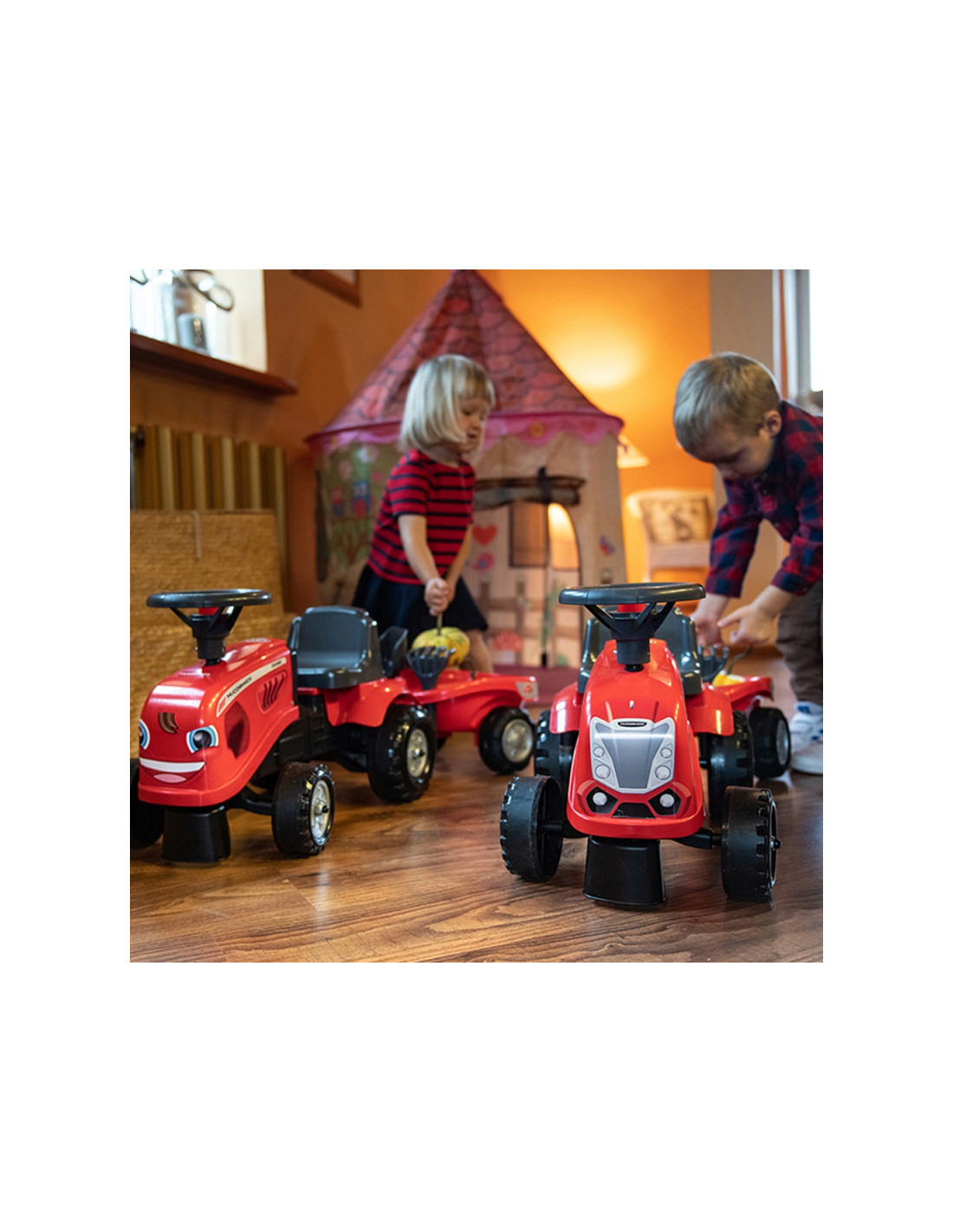 Baby Mac Cormick Ride-on traktorius su Falk priekaba yra daugelio mažų traktorių svajonės išsipildymas. Kruopščiai pagamintas, atkreipiant dėmesį į smulkiausias detales! Joks tikras ūkininkas neniekintų tokio dalyko. Transporto priemonė pagaminta iš aukščiausios kokybės plastiko ir skirta vaikams nuo 12 mėnesių amžiaus. Transporto priemonėje yra nuimama priekaba su skydeliais ir vairas su garso signalu. Traktoriaus ratai pagaminti iš aukštos kokybės plastiko. Be to, turime grėblį ir kastuvą, su kuriuo vaikas gali žaisti. Prie traktoriaus pritvirtinti lipdukai leis jūsų vaikui pasirinkti unikalų stilių. Šypsenėlė ar standartinis lipdukas? Nustebinkite visus ir priklijuokite jį ant transporto priemonės priekio.
