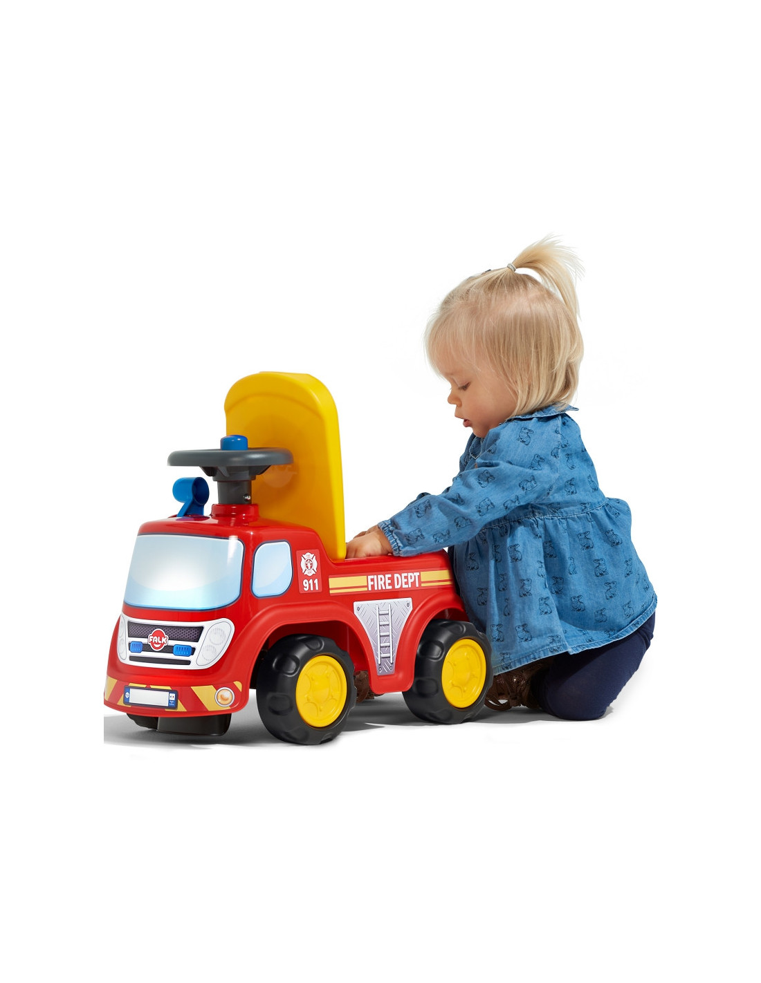 FALK ugniagesių ugniagesių automobilis yra važiuojamasis automobilis, kuris pradžiugins jūsų vaiką. Dėl vairo su garso signalu jūsų mažylis galės lengvai manevruoti lavindamas motorinius įgūdžius Šiame vaikiškame vežimėlyje yra praktiška daiktadėžė, esanti po sėdyne. Jame taip pat yra valstybinis numeris, ant kurio galite pavadinti važiavimą!