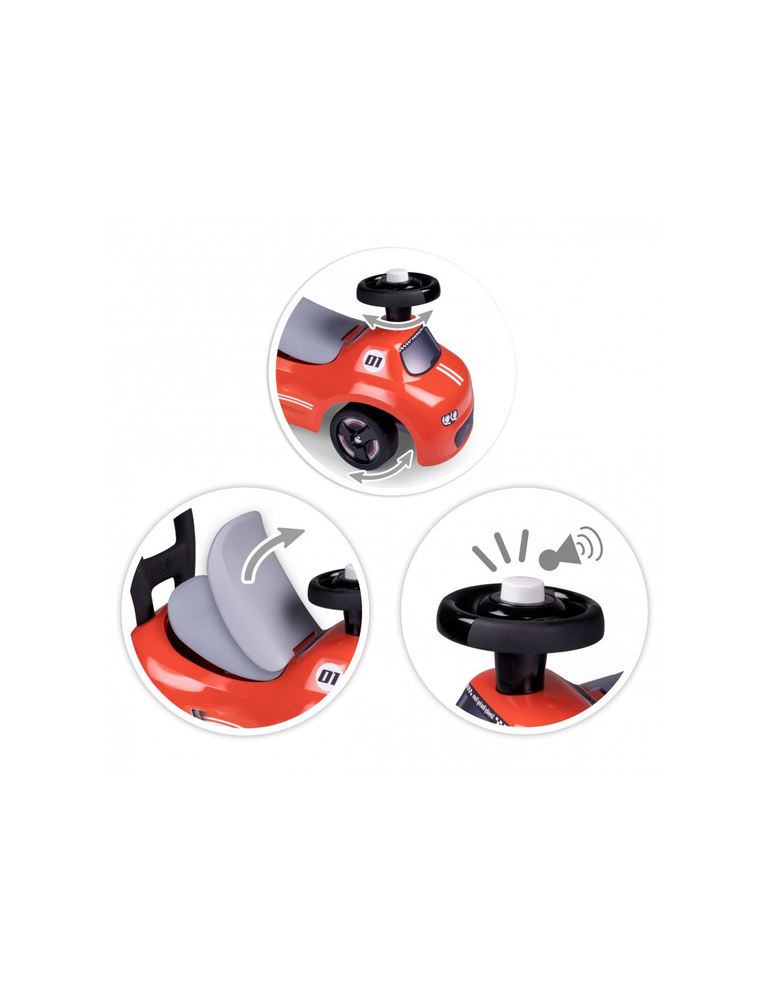 Važiuojamasis automobilis sukurtas atsižvelgiant į mažiausius vaikus – specialūs išsikišimai apsaugo nuo atsitiktinio pasvirimo į priekį ar atgal, o ergonomiškas atlošas veikia kaip rankena, todėl vaikui lengviau vairuoti transporto priemonę.