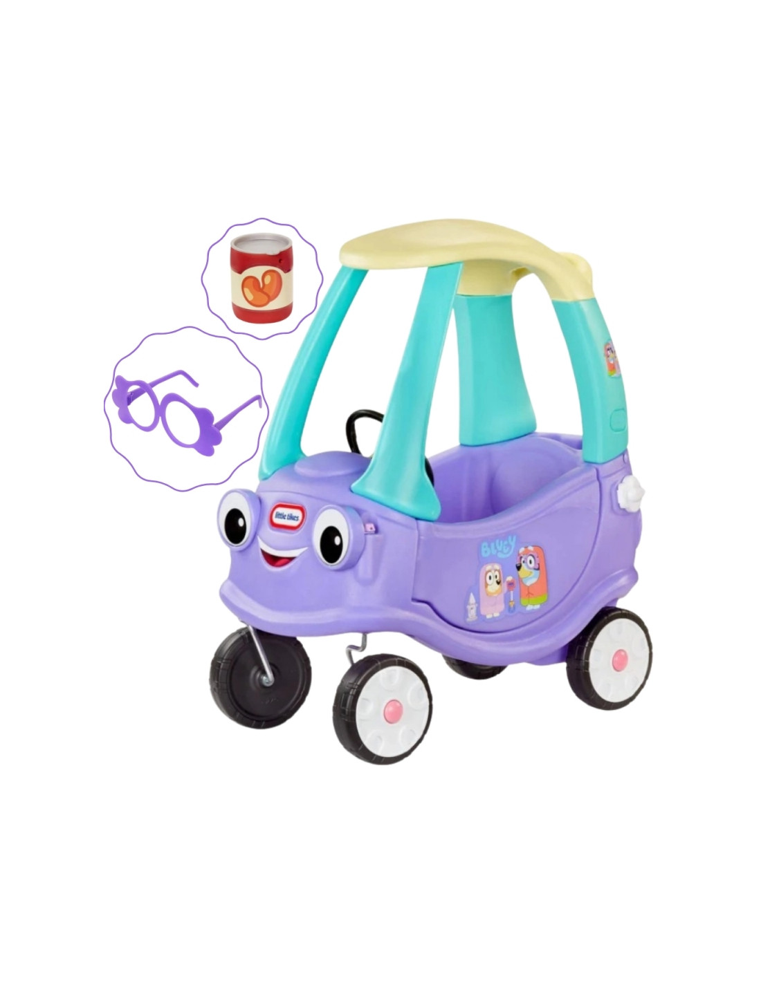 "Little Tikes Cozy Coupe Bluey" yra spalvingas pasivažinėjimas, įkvėptas populiarios "Bluey" pasakos. Klasikinis "Cozy Coupe" siluetas kartu su iš serijos žinomomis spalvomis ir detalėmis pradžiugins kiekvieną mažąjį šio nuotykio gerbėją. Dėl tvirtos konstrukcijos ir maksimalios iki 22,68 kg apkrovos transporto priemonė idealiai tinka vaikams nuo 18 mėnesių amžiaus. Jis puikiai veiks tiek namuose, tiek kieme, užtikrins aktyvų žaidimą ir palaikys mažų vaikų motorinį vystymąsi.
