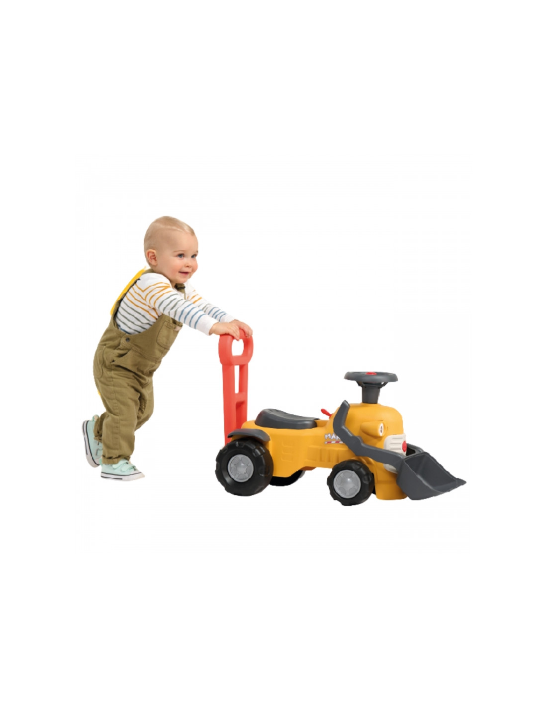 FALK ekskavatorius "Marcel Excavator Ride-on" yra pirmoji kompaktiška transporto priemonė su veikiančiu priekiniu kaušu, vairu su garso signalu ir patogia stūmimo rankena, kuri jau 12 mėnesių kviečia smagiai praleisti laiką namuose ir lauke. Stabili konstrukcija ir gerai apgalvotos detalės, tokios kaip spustelėjęs klavišas, pasukamas vairas ir daiktadėžė po sėdyne, kiekvieną važiavimą sujungia judesius su vaidmenų žaidimu.