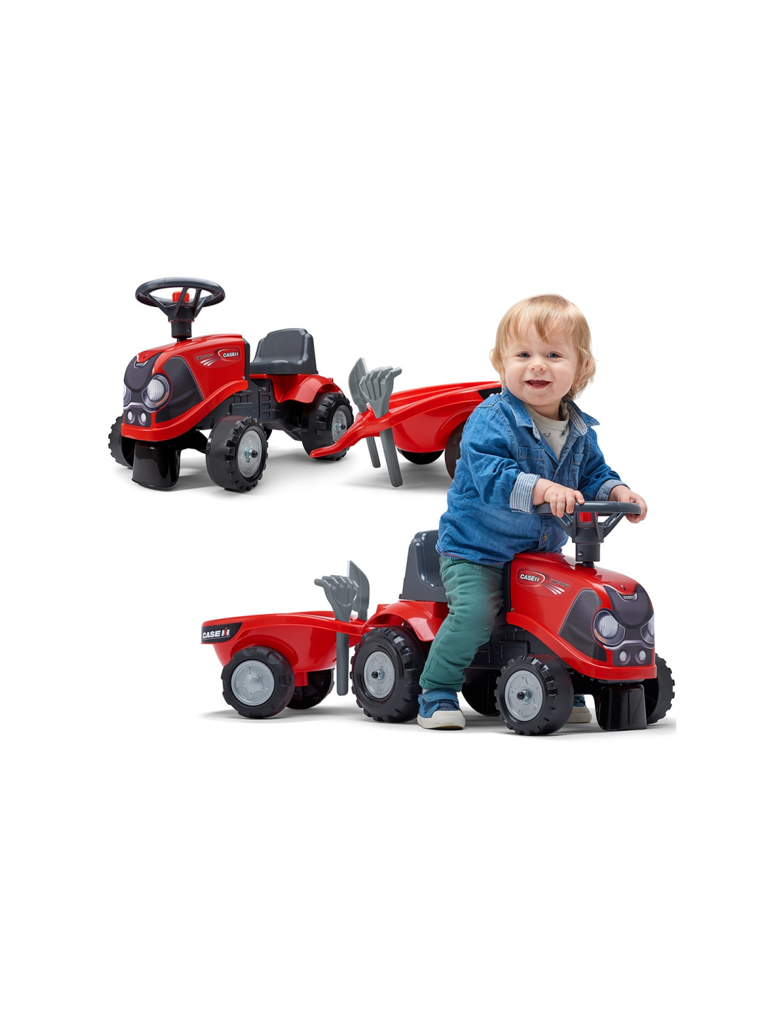 FALK Baby Case IH Ride-On Red su priekaba + priedais, skirtas nuo 12 mėnesių amžiaus
