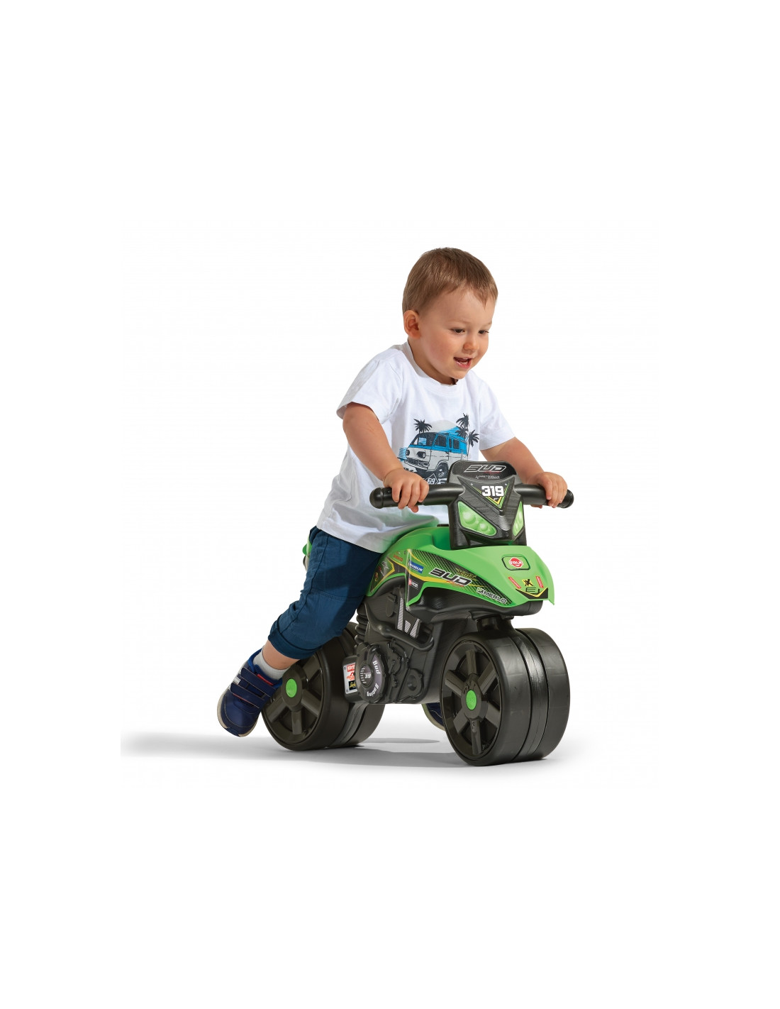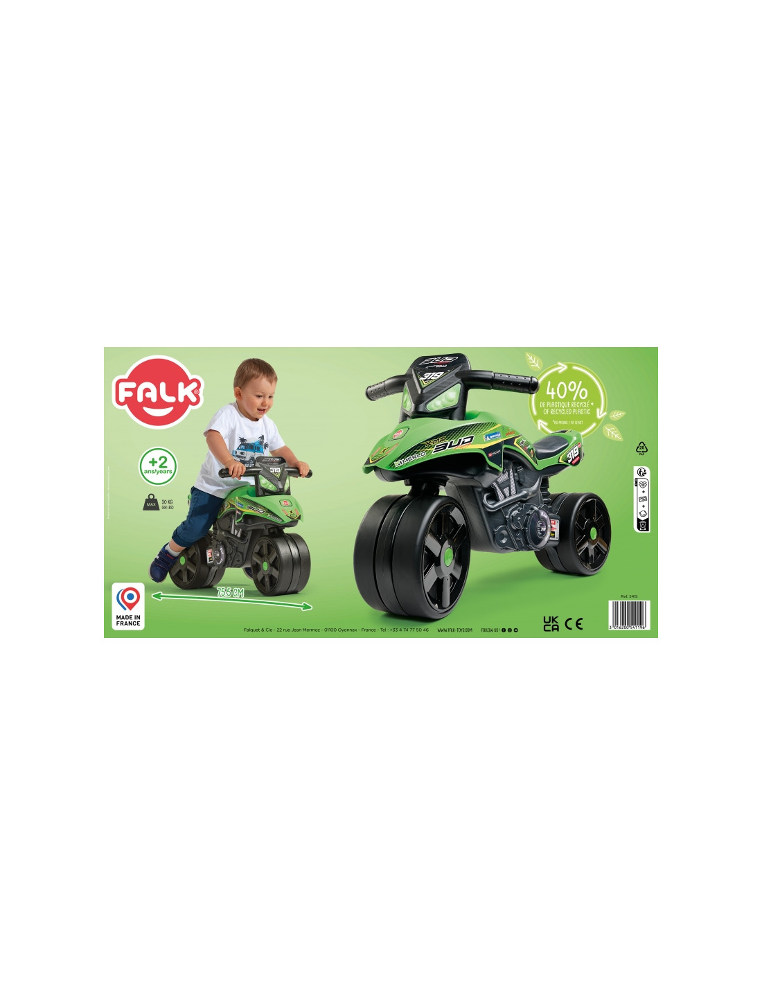 Prancūzų žaislų gamintojo „Falk“ važiuojantis variklis yra ideali dovana vaikams nuo 1 metų amžiaus . Graži grafika ir labai tikroviška išvaizda suteiks daug džiaugsmo mažiesiems . Vairuotojas turi didelius ratus , kurie puikiai važiuoja įvairiais paviršiais . Priekinis ratas sukasi, kad būtų lengviau vairuoti ir sukti.