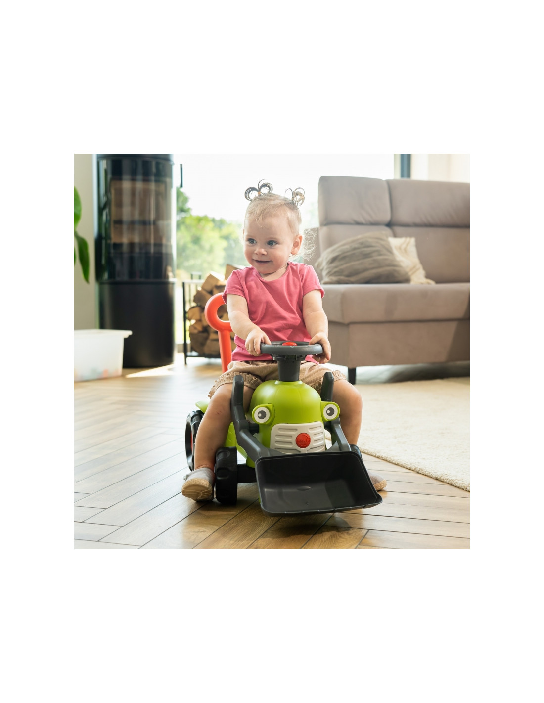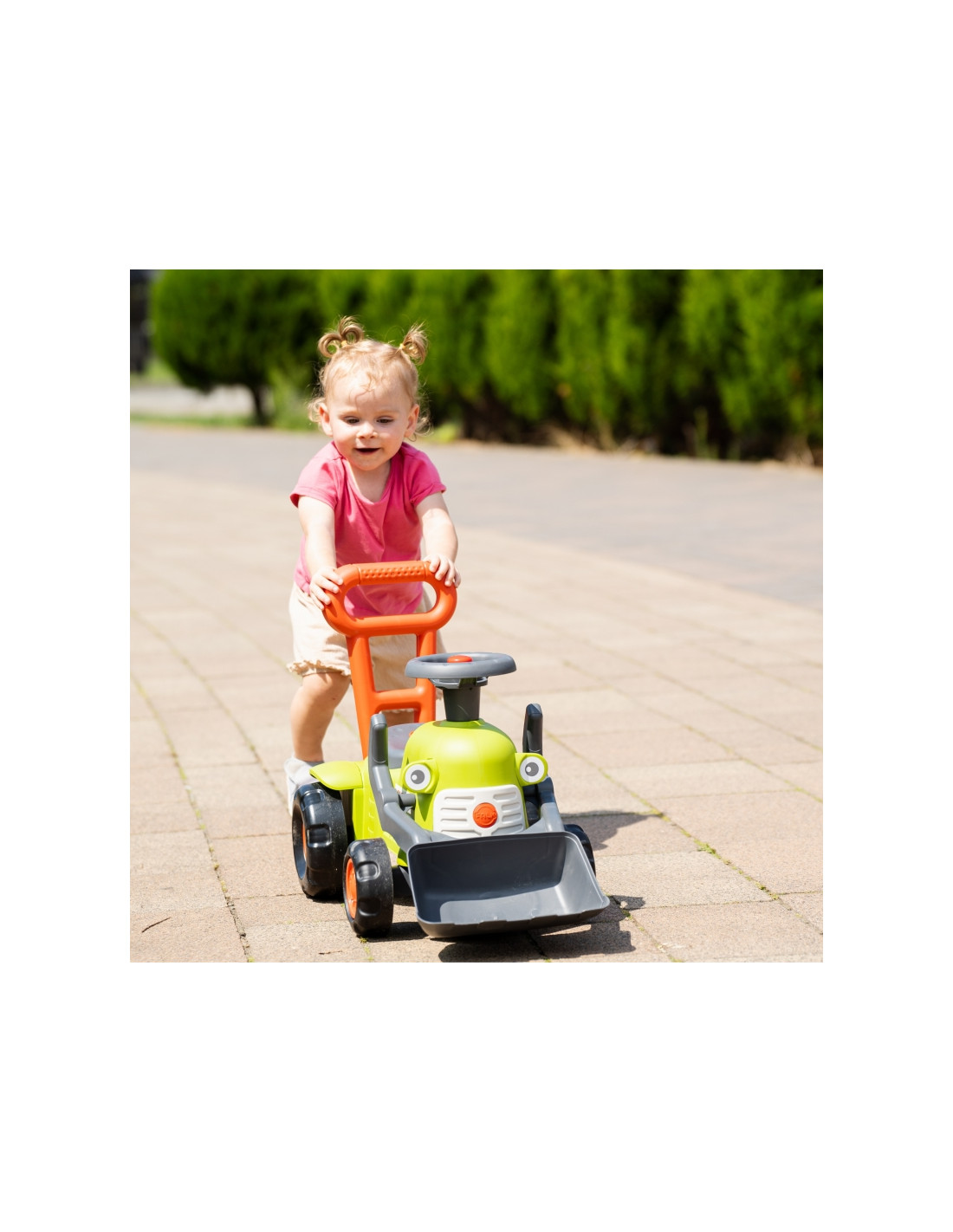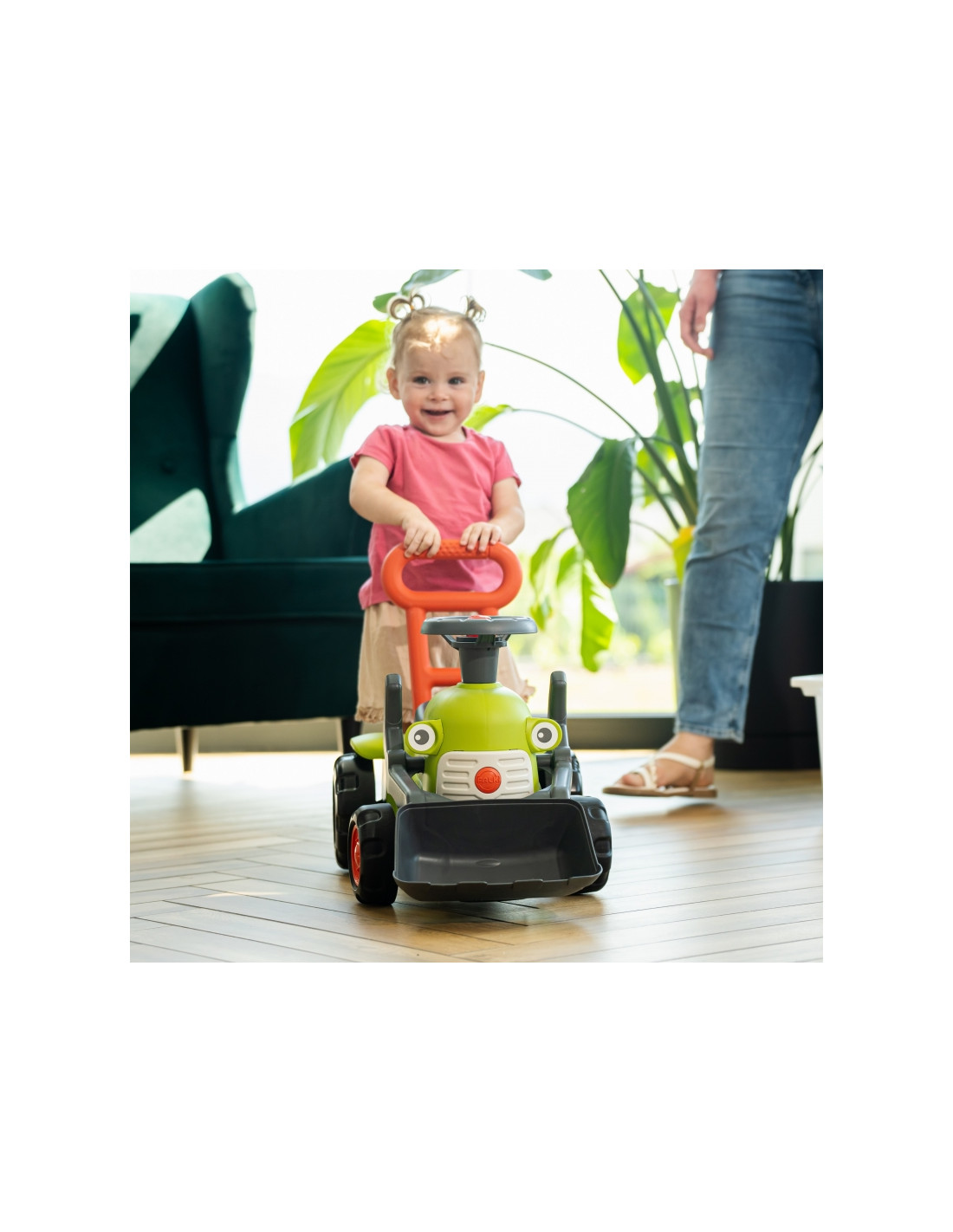 "Ride-on" klasės traktorius su "Falk" priekaba yra daugelio mažų traktorių vairuotojų svajonės išsipildymas. Kruopščiai pagaminta, atkreipiant dėmesį į smulkiausias detales. Joks tikras ūkininkas neniekintų tokio dalyko. CLAAS traktorius su kaušu ir priekaba pagamintas iš aukščiausios kokybės medžiagų. Transporto priemonė skirta vaikams nuo 12 mėnesių amžiaus. Transporto priemonėje yra nuimama priekaba su skydeliais ir vairas su garso signalu.