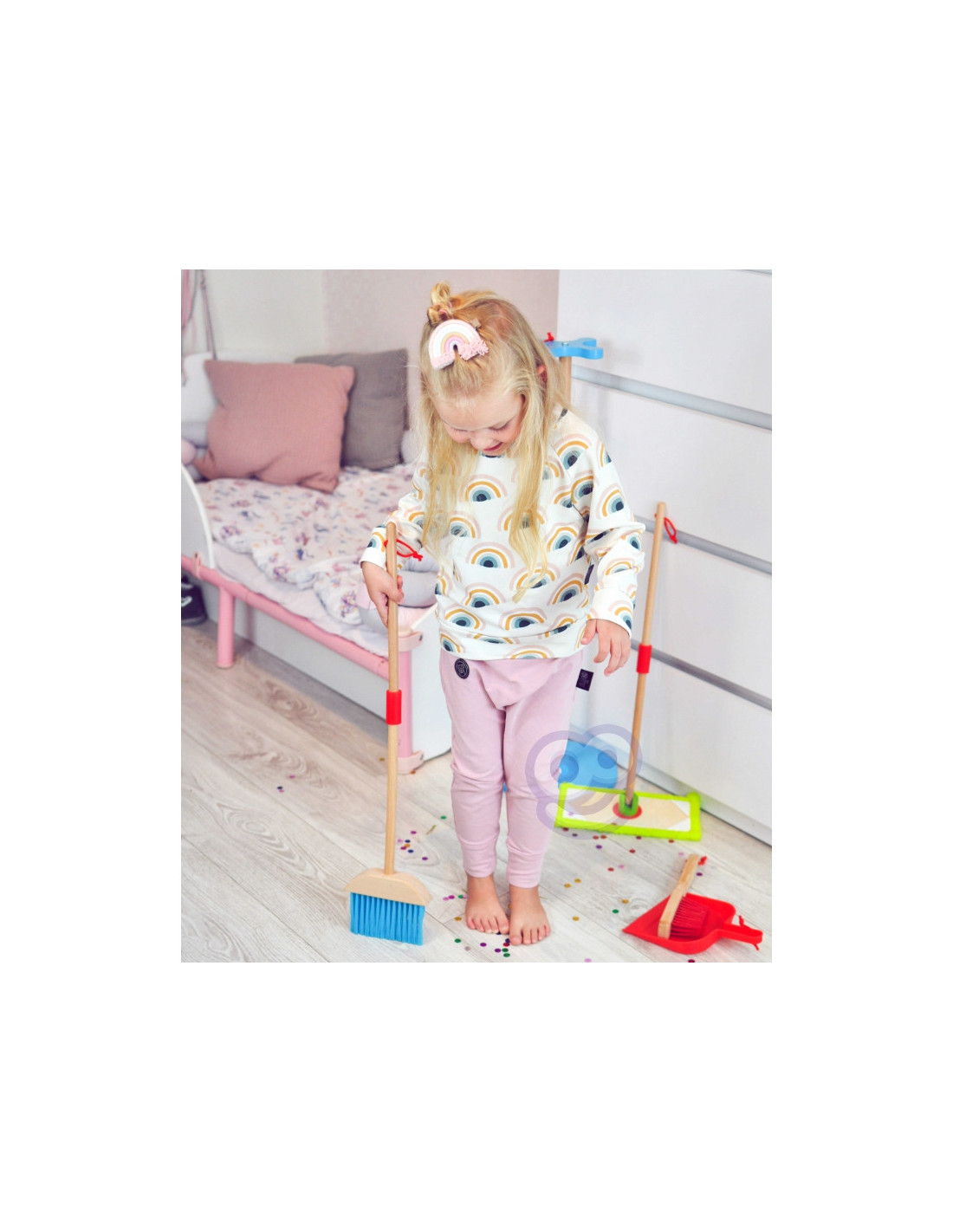 „Tooky Toy“ valymo rinkinys – puikus pasirinkimas mažiesiems, norintiems aktyviai įsitraukti į namų ruošą. Šis spalvingas, iš medienos pagamintas rinkinys turi vaikų rankoms pritaikytų priedų, kurių dėka tvarkymasis tampa smagus ir įtraukiantis. Žaislas ne tik suteikia daug džiaugsmo, bet ir skatina vaiko vystymąsi, ugdo atsakomybės jausmą bei formuoja gerus kasdienius įpročius.