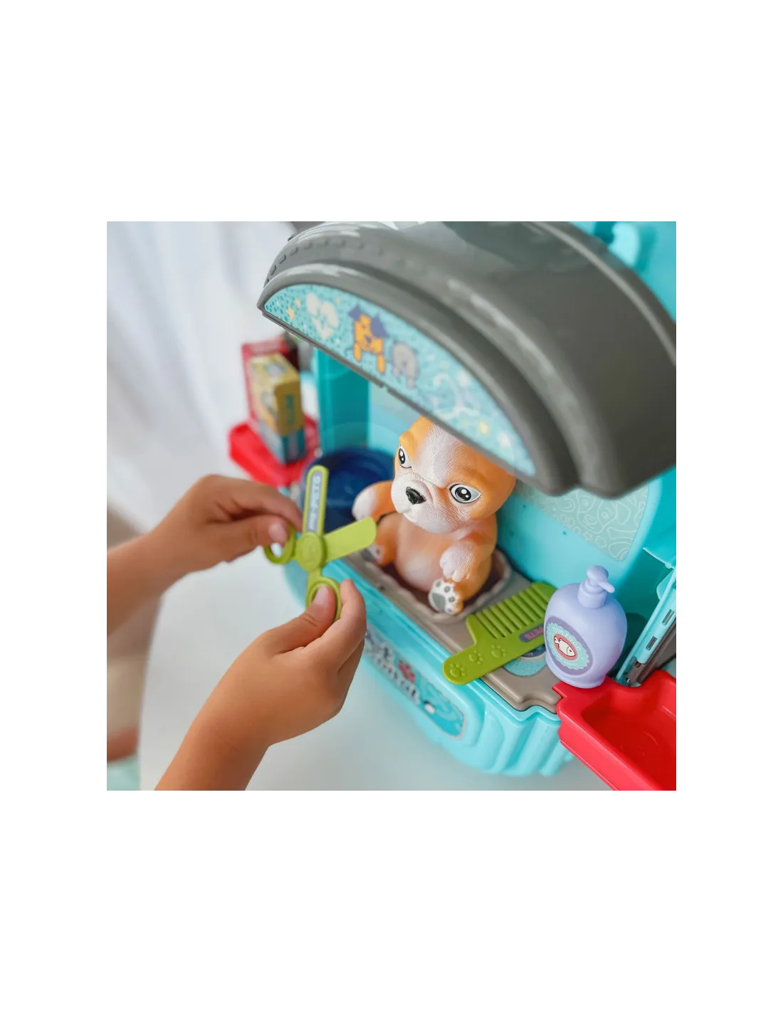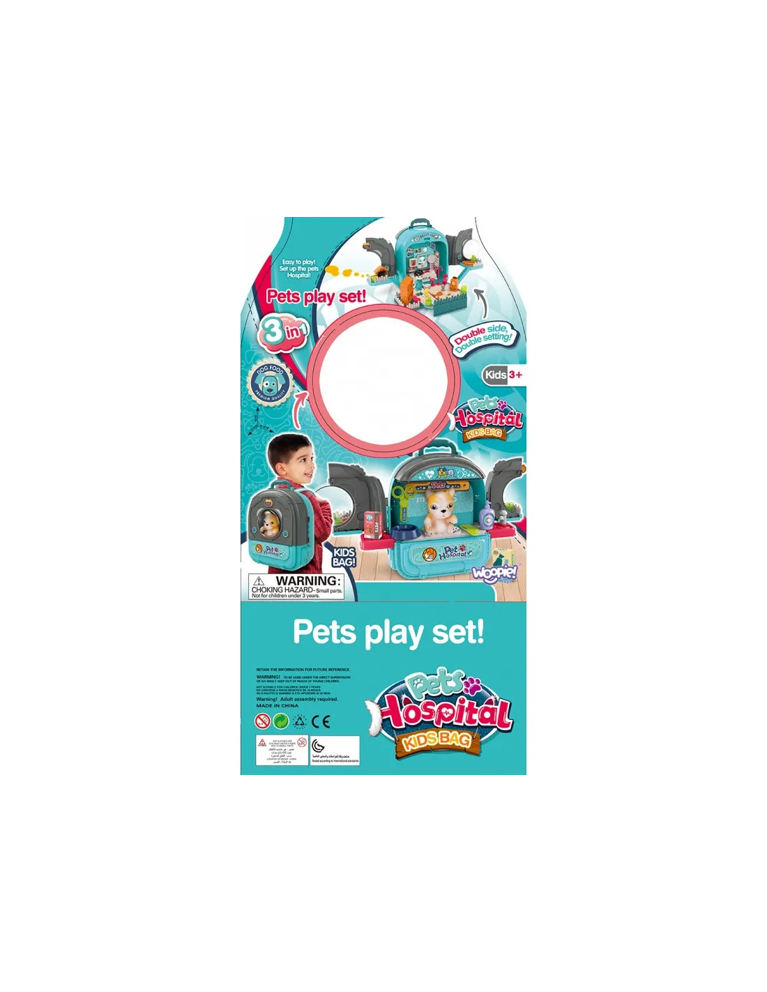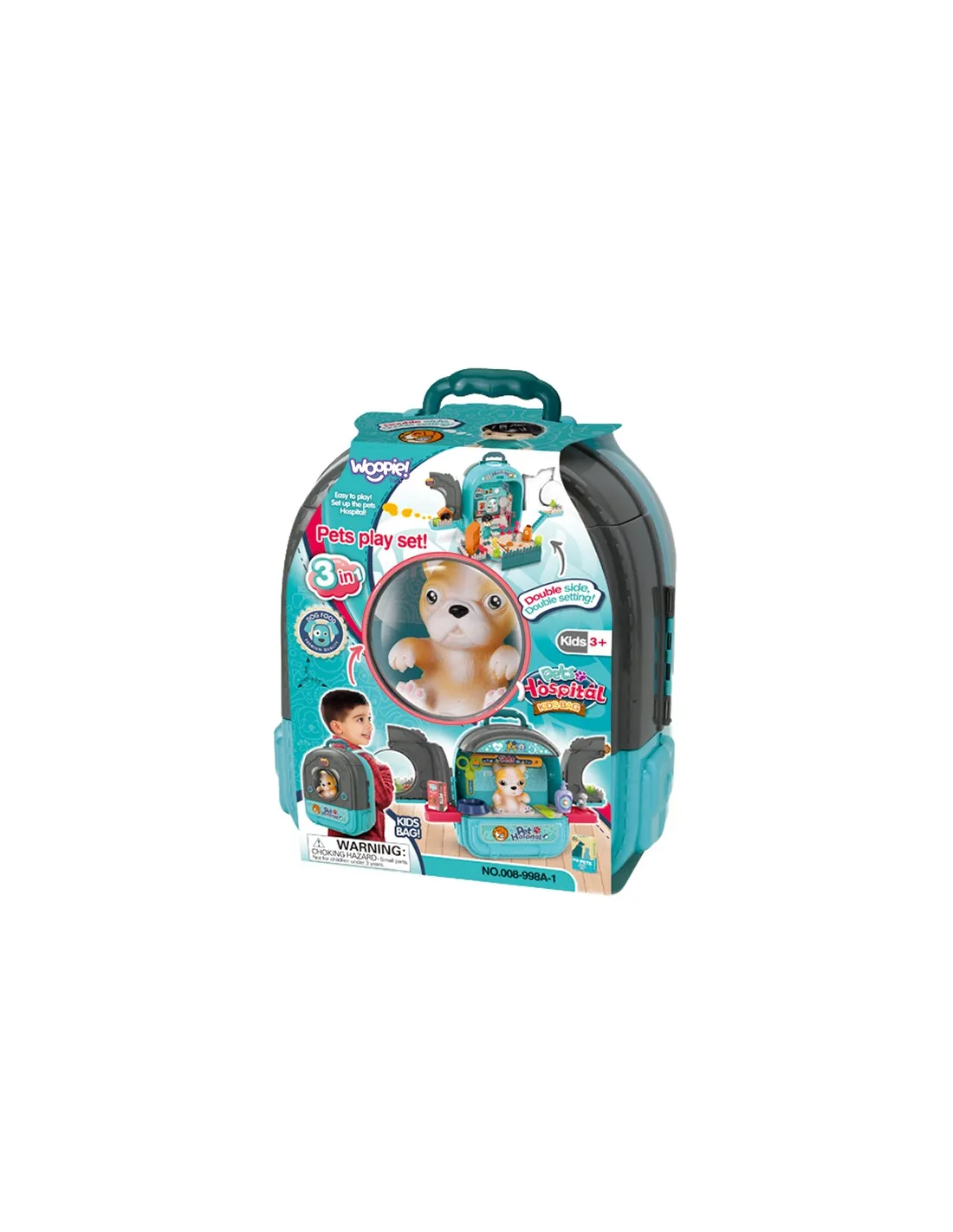 WOOPIE lėlių namų "3-in-1" šunelių kirpimo rinkinys kuprinėje idealiai tinka mažiesiems gyvūnų mylėtojams. Gyvūnų priežiūros reikmenys, leis žaisti veterinarą dar tikroviškiau ir patraukliau. Rinkinį sudaro nešiojamas lagaminas, kuris transformuojasi į pilno dydžio gyvūnų ligoninę su įvairiomis patalpomis ir įrankiais. Žaislas pagamintas iš aukštos kokybės vaikams saugių medžiagų ir turi daug spalvingų elementų, skatinančių kūrybišką žaidimą. Jis puikiai tinka kaip dovana, padedanti vaikui ugdyti empatijos ir rūpinimosi įgūdžius.