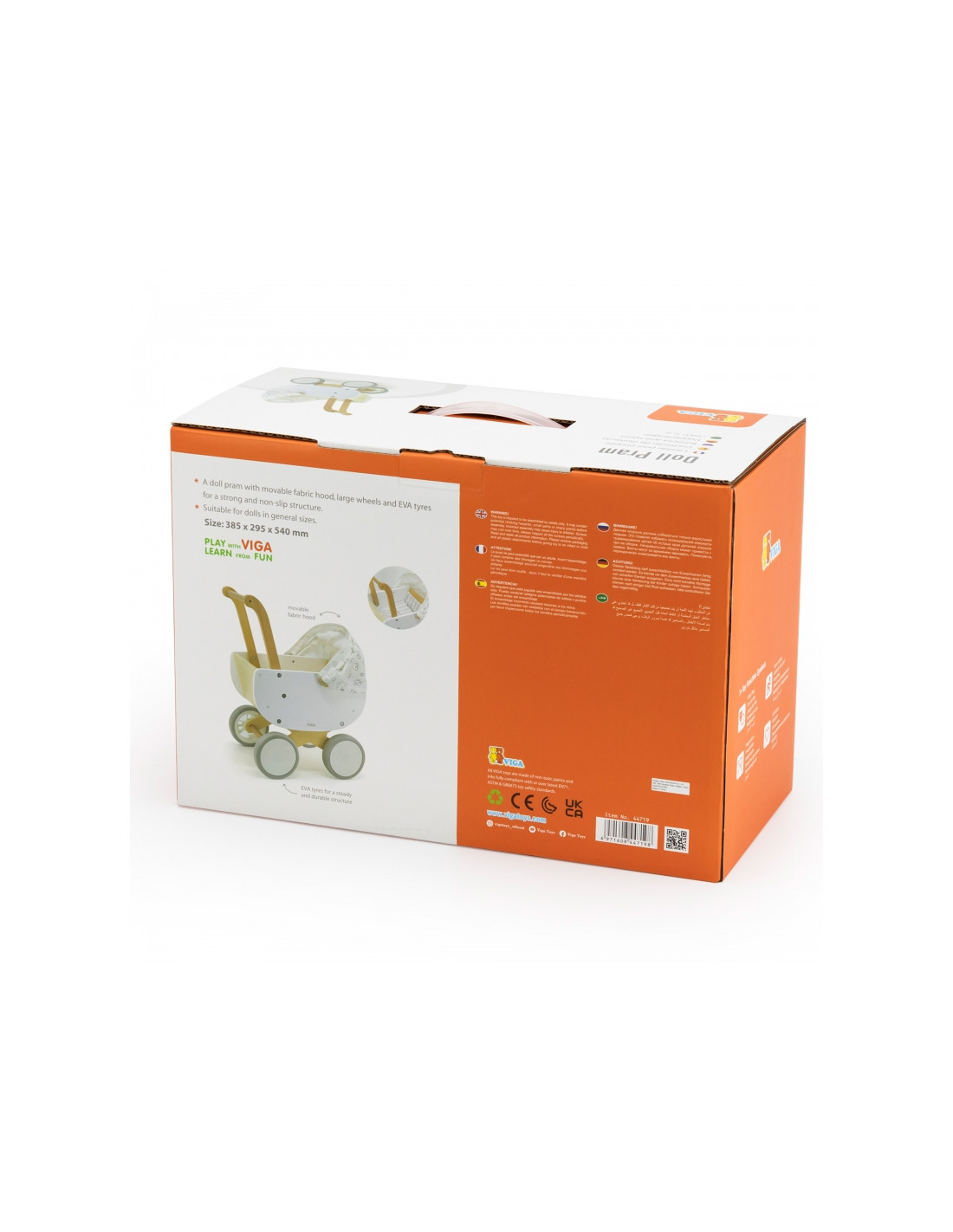 Žavus medinis lėlių vežimėlis iš garsaus „Viga“ prekės ženklo. Tai aukštos kokybės medienos ir modernaus dizaino derinys. EVA padangos užtikrina tvirtą, neslystančią konstrukciją ir saugų žaidimą vaikui. Vežimėlis pasižymi moderniomis, ryškiomis spalvomis, o medžiaginis gaubtas puikiai papildo darnią žaislo išvaizdą.