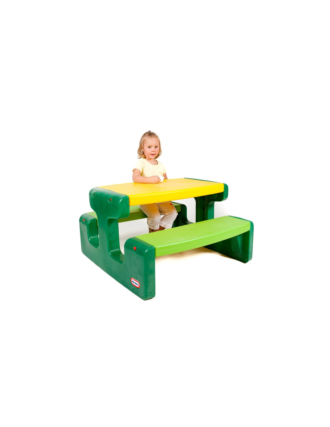 Didelis žalias pikniko stalas Šis vientisas pikniko stalas, sukurtas žinomo žaislų gamintojo „Little Tikes“, skirtas naudoti tiek patalpose, tiek lauke. Jis puikiai tinka įvairioms užduotims ir žaidimams. Tai puiki vieta atsipalaiduoti ar mėgautis maistu lauke.