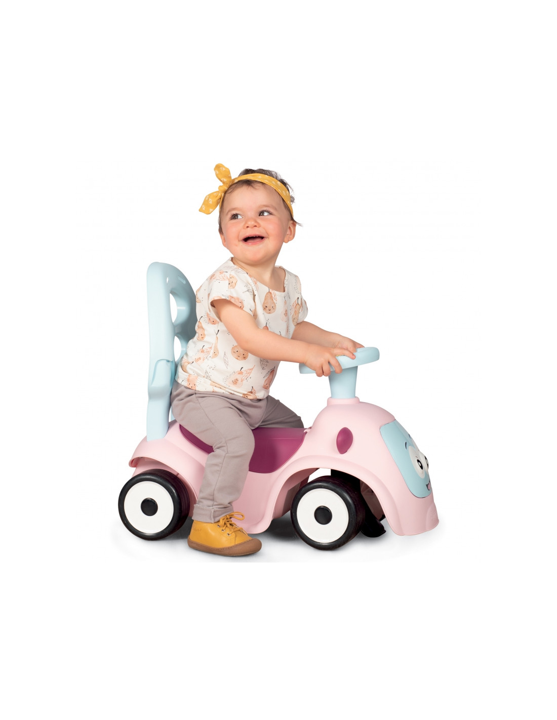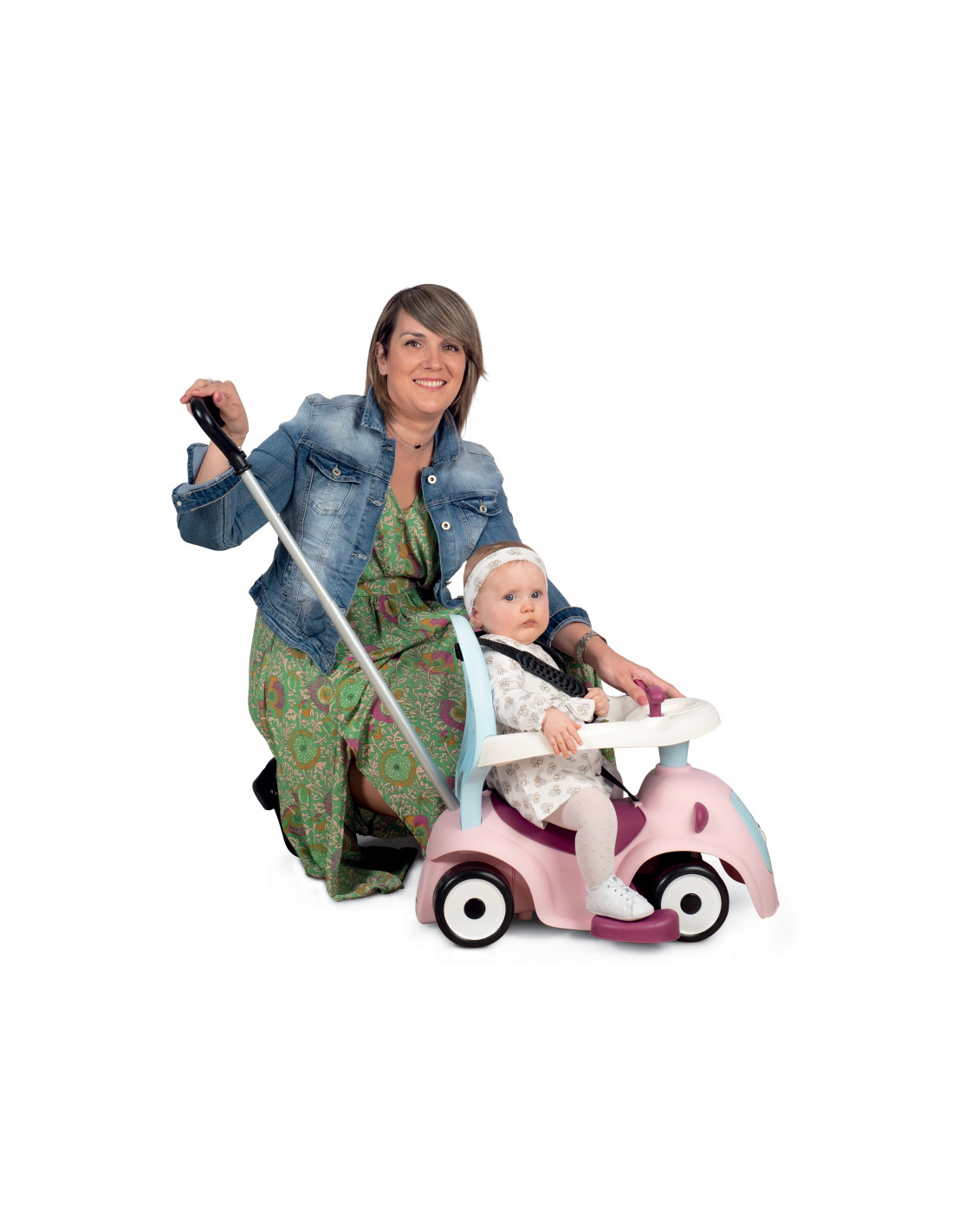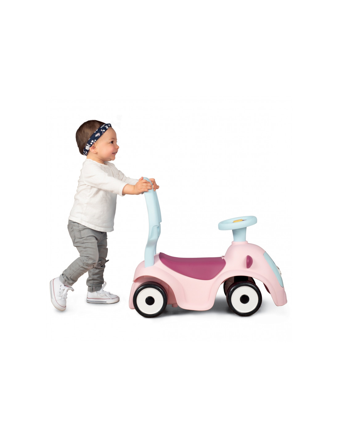- - važiuojamoji transporto priemonė turi 4 skirtingas funkcijas: nuo 6 mėnesio ją galima naudoti kaip tėvų stumiamą vežimėlį, nuo 10 mėnesio – kaip vaikštynę/stūmiklį, nuo 12 mėnesių vaikas gali naudoti ją kaip savarankišką vežimėlį,