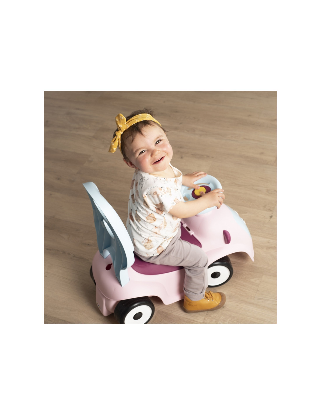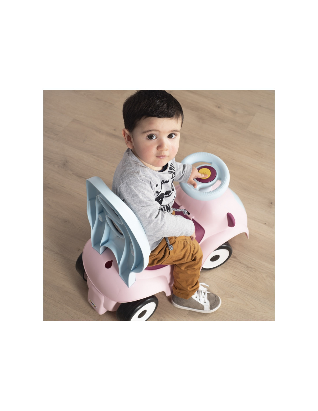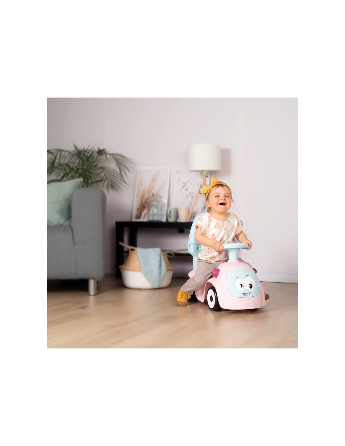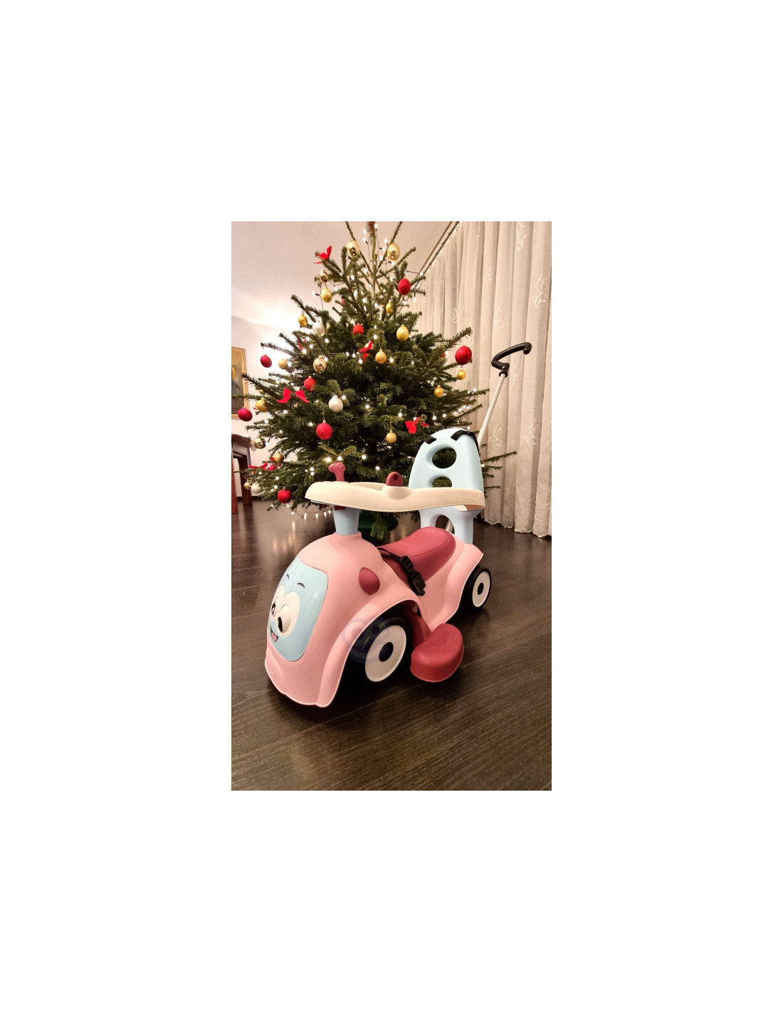 - - važiuojamoji transporto priemonė turi 4 skirtingas funkcijas: nuo 6 mėnesio ją galima naudoti kaip tėvų stumiamą vežimėlį, nuo 10 mėnesio – kaip vaikštynę/stūmiklį, nuo 12 mėnesių vaikas gali naudoti ją kaip savarankišką vežimėlį,