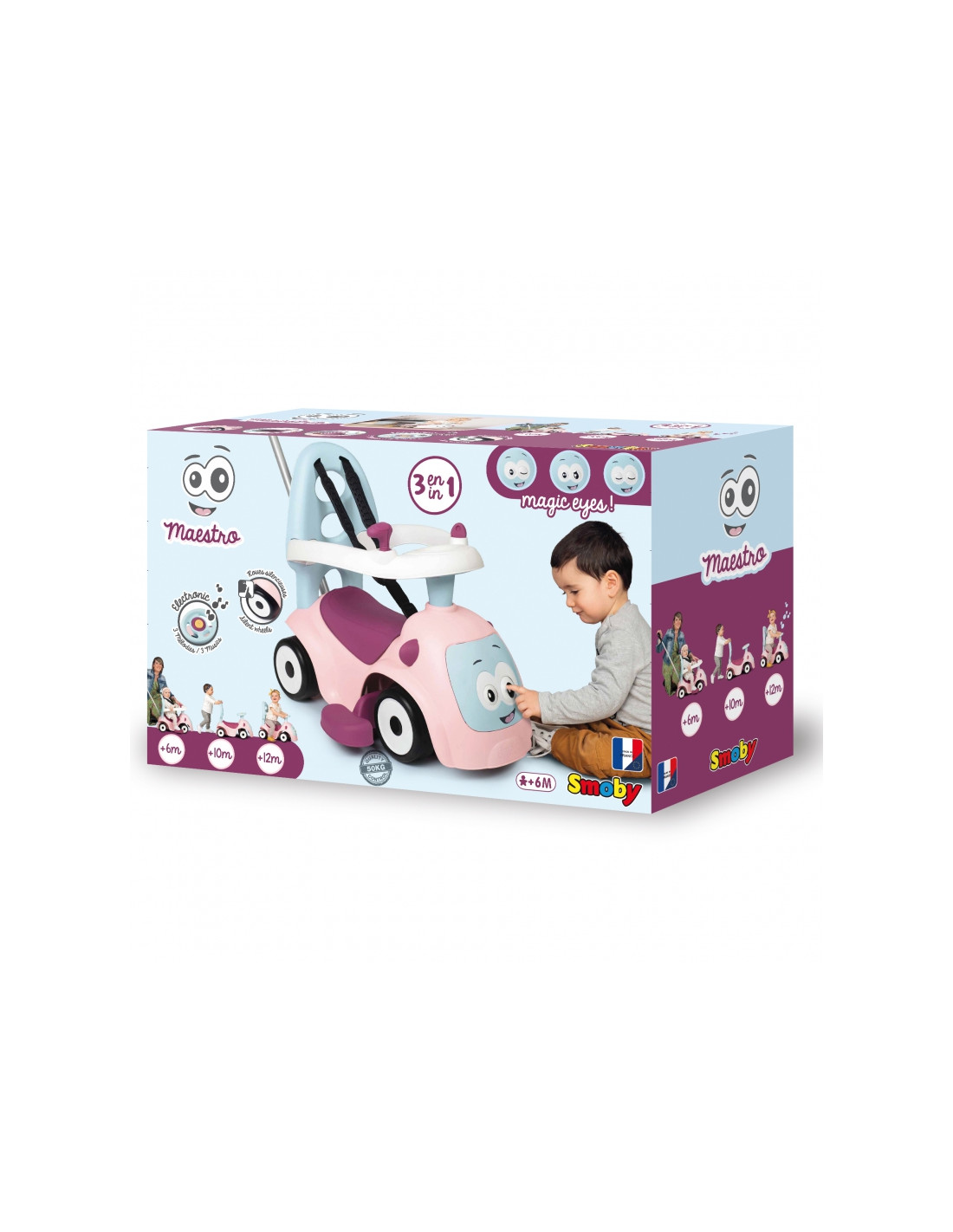 Smoby Maestro 4-in-1“ vežimėlis siūlo platų žaidimo galimybių pasirinkimą ir auga kartu su jūsų vaiku. Dėl priedų transporto priemonė prisitaiko prie jūsų vaiko gebėjimų ir poreikių. Žaidimas su vežimėliu veikia vaiko motorinę raidą.