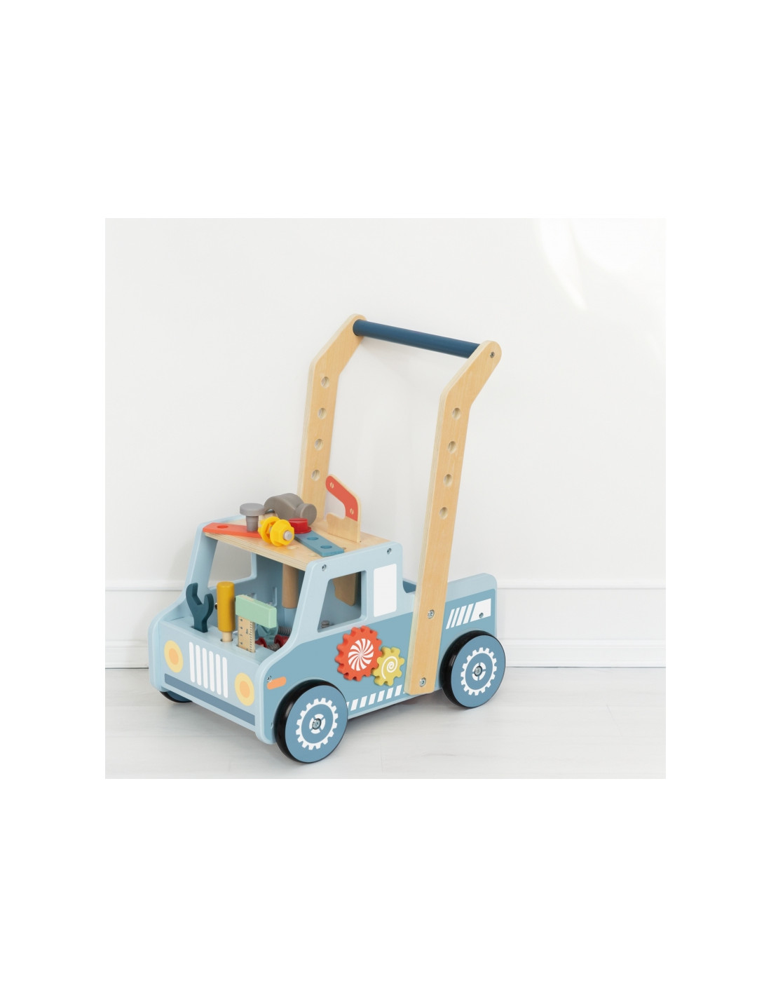 Pirmas žingsnis ir pirmas remontas – tai įmanoma su šia unikalia Tooky Toy vaikštyne! Stabilaus vežimėlio ir pilno dydžio dirbtuvių derinys yra tikras žaidimų centras mažiesiems meistrams. Vaikai ne tik lavina savo vaikščiojimo įgūdžius, bet ir pasineria į žavų meistravimo pasaulį, kuriame kiekvienas varžtas, kiekvienas transformatorius ir kiekvienas įrankis yra naujas nuotykis. Erdvus daiktadėžės skyrius automobilio salone leidžia pasiimti visus priedus su savimi keliaujant po namus, o tvirta konstrukcija užtikrina saugumą žengiant pirmuosius žingsnius.