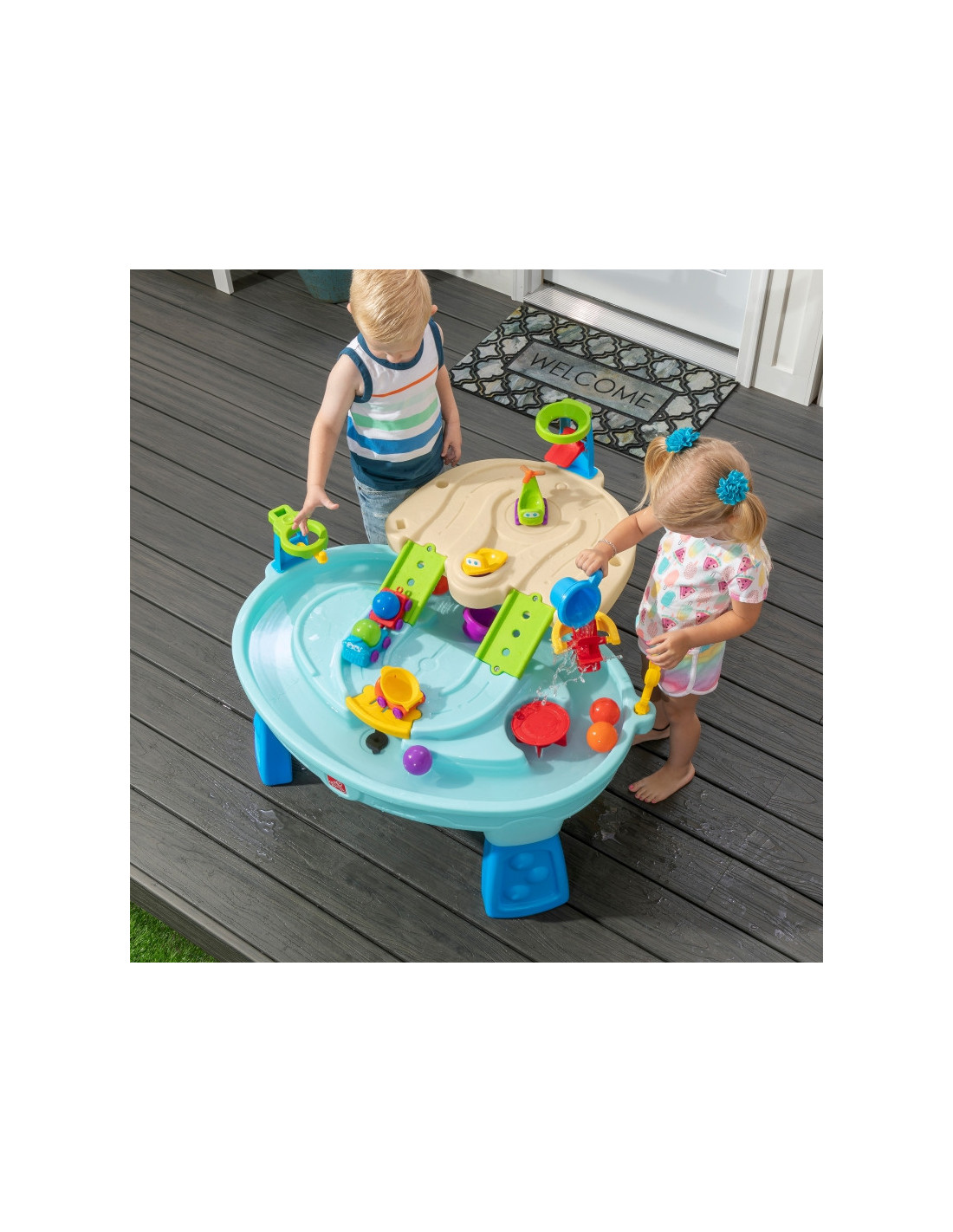 - - EverTough ™ , šis lauko vandens stalas yra tvirtas ir patvarus, todėl puikiai tinka žaisti be rūpesčių ir lengvai prižiūrėti.