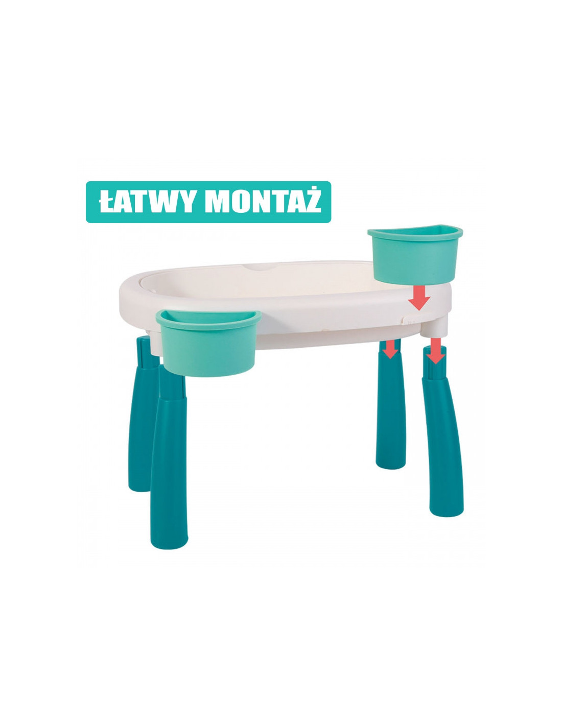 Pasiimkite vandens ir smėlio malonumą į savo sodą! "Woopie" vandens stalas "2-in-1" yra unikalus žaislas, sujungiantis smėlio dėžės ir vandens stalo funkcijas, suteikiantis vaikams valandų valandas kūrybiškų pramogų. Dėl stabilios konstrukcijos ir spalvingų priedų jis yra idealus pasiūlymas tiek kieme, tiek paplūdimyje. Rinkinyje yra net 7 elementai: aštuonkojo pelėsis, kačiukas, pandos ir zuikis, laistytuvas, mentelė ir indai vandeniui ar smėliui. Vaikas gali pilti, pilti ir kurti fantastiškus pastatus, lavindamas rankų ir akių koordinaciją, rankų įgūdžius ir vaizduotę.