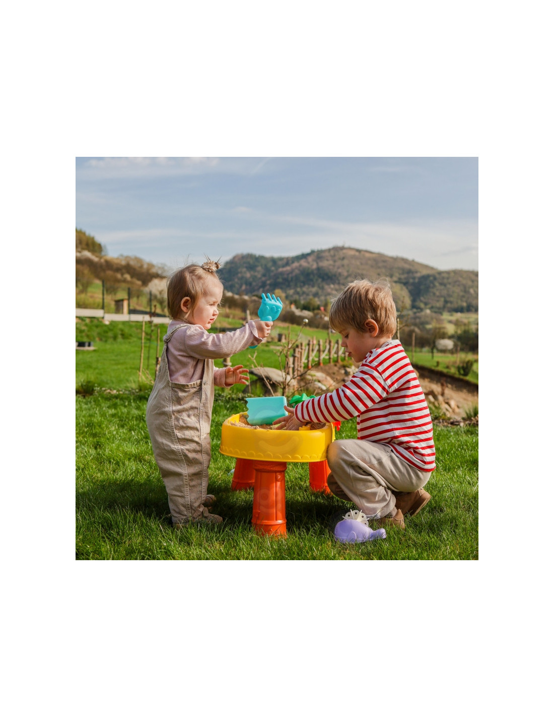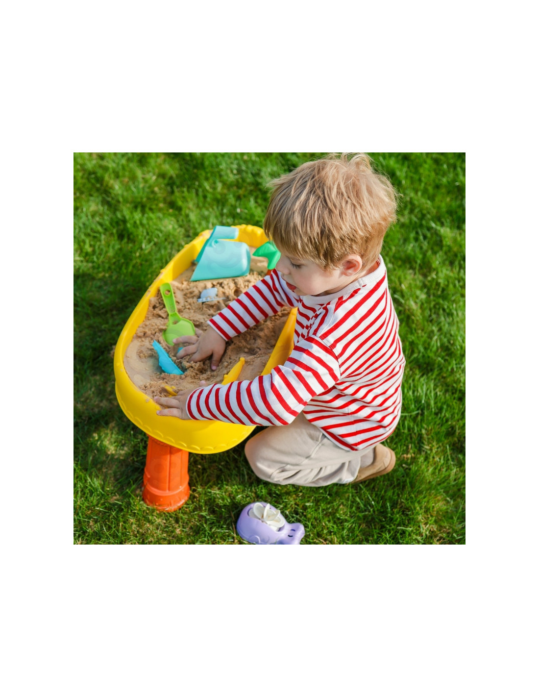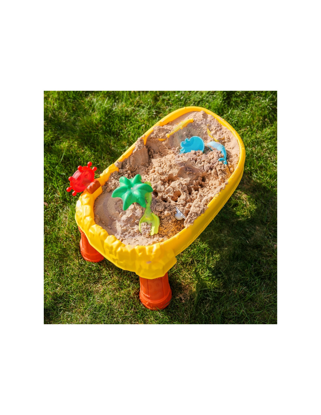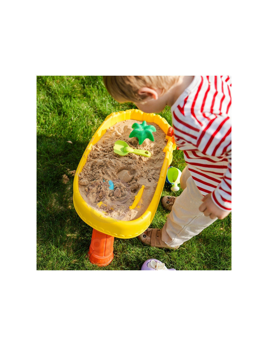 WOOPIE prekės ženklo smėlio stalas yra puikus žaislas žaisti su vandeniu ir smėliu. Rinkinyje yra 8 priedai: 3 formos, žuvis, laistytuvas, indas su rankena, grėblys ir mentele. Stalas turi vairą, kurį galite suktis ir pasijusti tikru piratu. Rinkinys skirtas žaisti tiek viduje, tiek lauke. Puikiai tinka žaisti namuose ir paplūdimyje ar smėlio dėžėje.