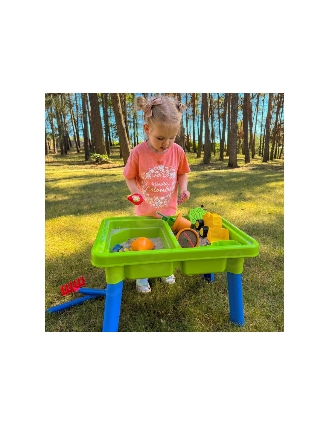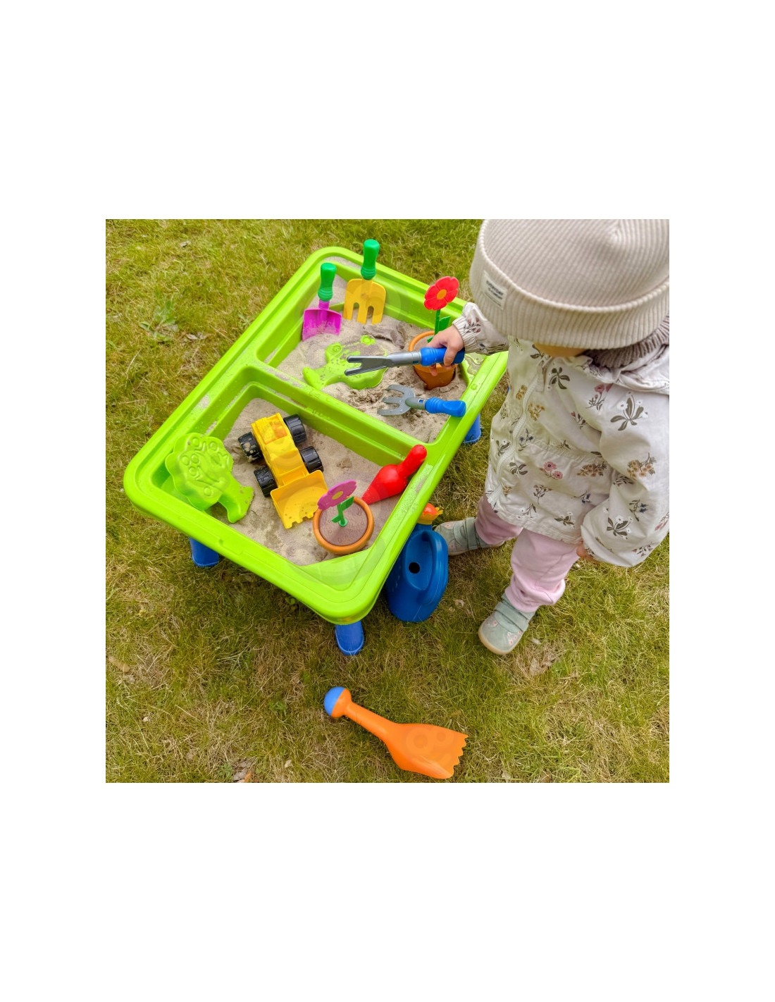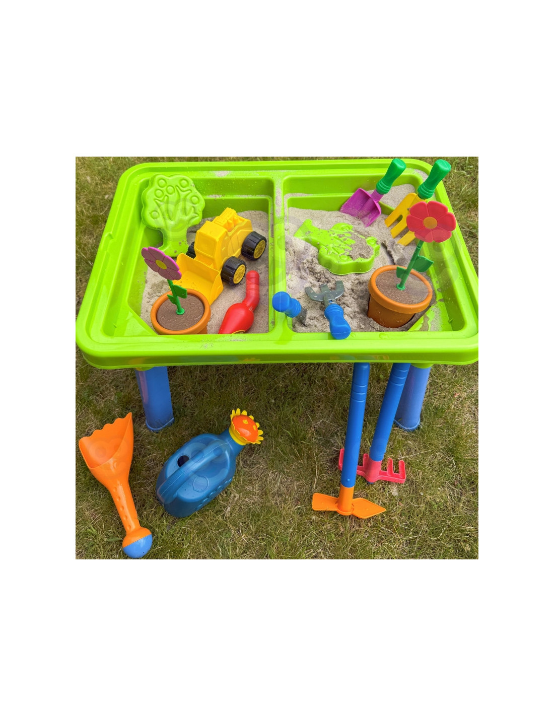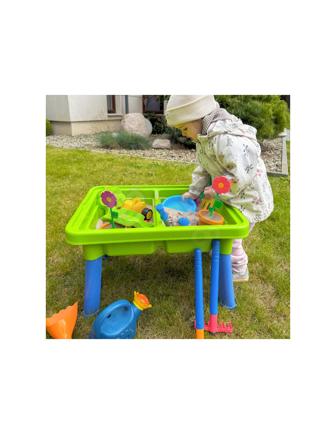 WOOPIE 2 viename vandens stalas- smėlio dėžė yra fantastiškas žaislas, kuris suteiks vaikams nesuskaičiuojamas valandas vandens ir smėlio pramogų . Rinkinį sudaro 13 skirtingų priedų, tokių kaip formelė, laistytuvas, ekskavatorius ir du kastuvai. Stalas turi dvi įdubas – vieną galima pripildyti vandens, o kitą – smėliu , todėl galima kūrybiškai žaisti bet kur. Rinkinys puikiai tinka namams, paplūdimiui ar smėlio dėžei. Šis universalus rinkinys leidžia vaikams kurti begalę žaidimo scenarijų, stimuliuoja jų vaizduotę ir lavina rankinius įgūdžius . Puikiai tinka kūrybiškam žaidimui tiek patalpose, tiek lauke!