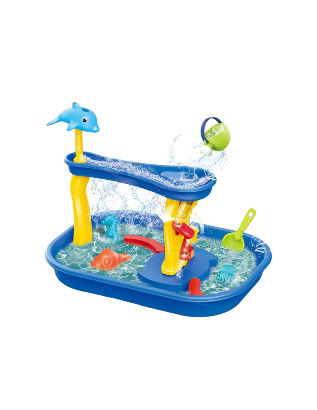 Sukurkite unikalią žaidimų zoną vaikams savo sode ar namuose! Šis spalvingas 2 viename vandens žaislas sujungia žuvų gaudymo, vandens išleidimo ir stebėjimo, kaip jis teka per smagius statinius, tokius kaip vandens ratas ir delfinų čiuožykla, džiaugsmą. Šis rinkinys suteiks vaikams valandų valandas lavinamųjų pramogų, kupinų judesio ir juoko!