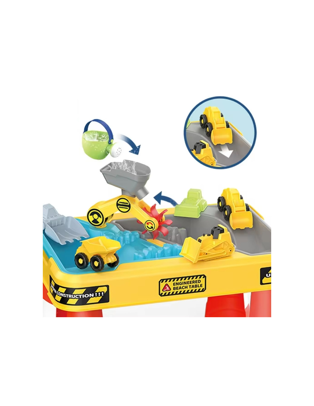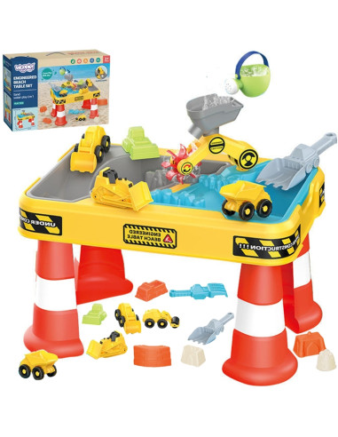 WOOPIE vandens stalas 2in1 smėlio dėžės statybvietė + 4 automobiliai 12el.
