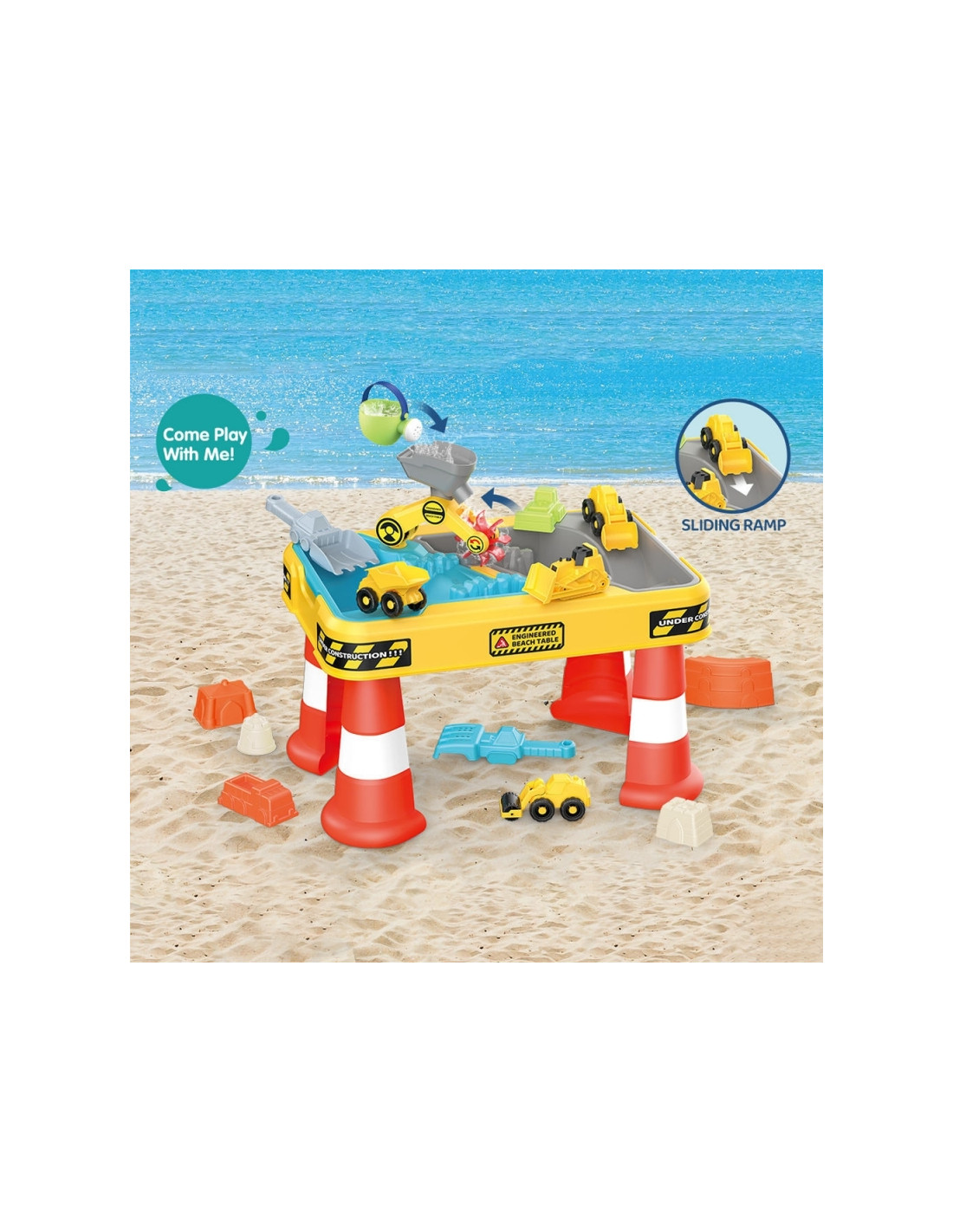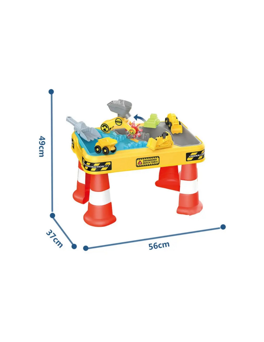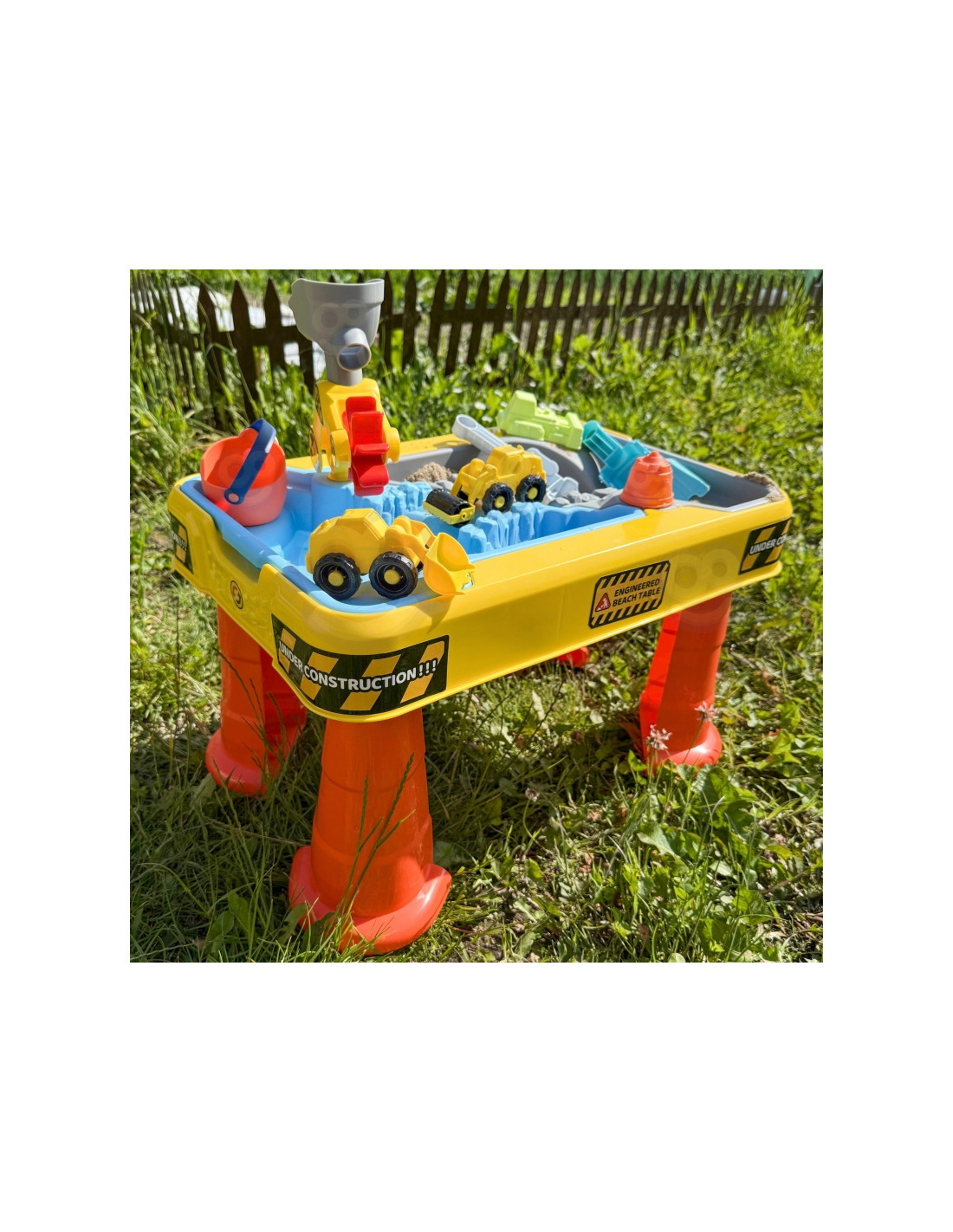 Pasinerkite į kūrybiško žaidimo pasaulį su dideliu vandens ir smėlio stalu konstravimo tema! Šis spalvingas ir solidžiai pagamintas rinkinys sujungia stalo, smėlio dėžės ir vandens baseino funkcijas, garantuodamas vaikams ilgas valandas lavinimosi ir įtraukiančių linksmybių. Idealiai tinka naudoti sode, terasoje, paplūdimyje ar namuose.