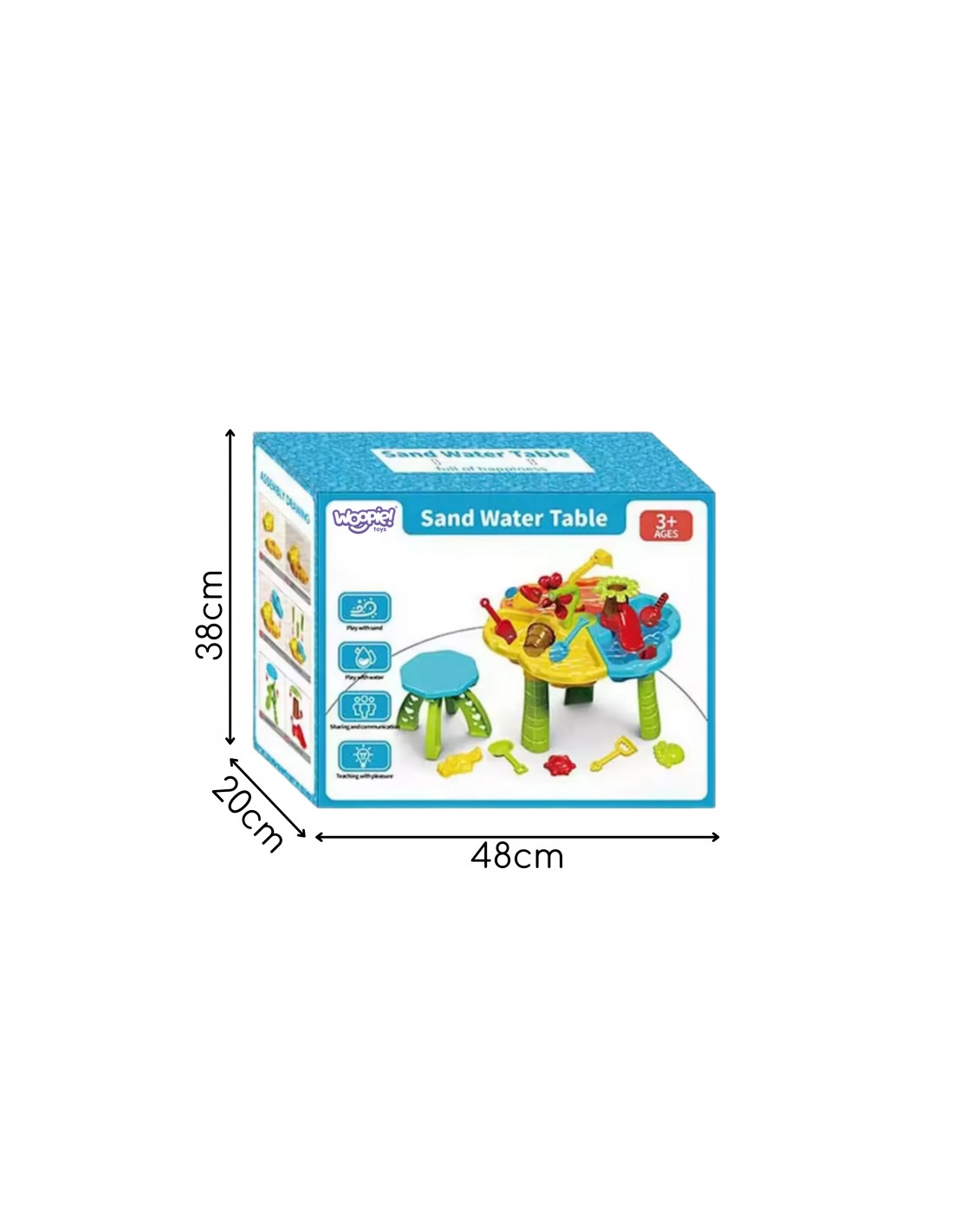„Woopie 2-in-1“ vandens staliukas su kėde yra universalus vandens ir smėlio žaidimų rinkinys, sukurtas atsižvelgiant į jauniausių tyrinėtojų poreikius. Jis puikiai tinka namams, balkonui, terasai, sodui ar paplūdimiui. Šis žaislas lavina kūrybiškumą, vaizduotę ir rankų miklumą, suteikdamas valandų valandas juoko ir mokymosi. Dėl plačių funkcijų ir tvirtos konstrukcijos šis spalvingas rinkinys puikiai tinka tiek sodui, tiek vaikų kambariui. Pagamintas iš saugios, patvarios ir lengvai valomos medžiagos be aštrių briaunų, jis yra visiškai saugus mažyliams. Trijų dalių stalo konstrukcija leidžia vaikams vienu metu eksperimentuoti su skirtingomis konstrukcijomis ir medžiagomis – smėliu, vandeniu ir pridedamais priedais. Kiekvienas elementas skirtas skatinti vaikų vaizduotę – rasite mini ekskavatorių, medžio piltuvą, vandens vėduoklę, smėlio formas, mažą valtį, kastuvus ir daugybę kitų spalvingų priedų. Tai leidžia vaikams vaidinti scenas, kurti smėlio formas, pilti vandenį, konstruoti ir eksperimentuoti – mokytis per žaidimą. Rinkinyje taip pat yra spalvinga ir ergonomiška kėdė, užtikrinanti patogų žaidimą. Visą rinkinį lengva surinkti ir išardyti, todėl jis puikiai tinka tiek kasdieniam naudojimui, tiek kelionėms. Žaislui nereikia jokių įrankių – viskas jungiasi intuityviai ir stabiliai. Stalas yra ne tik vieta žaisti, bet ir mokymosi priemonė – jis padeda lavinti motorinius įgūdžius, akių ir rankų koordinaciją, rankų miklumą, loginį mąstymą, taip pat bendravimo ir socialinius įgūdžius, ypač žaidžiant su bendraamžiais. Tai puikus žaislas bendroms, džiaugsmingoms akimirkoms, kurios vienu metu lavina ir moko.