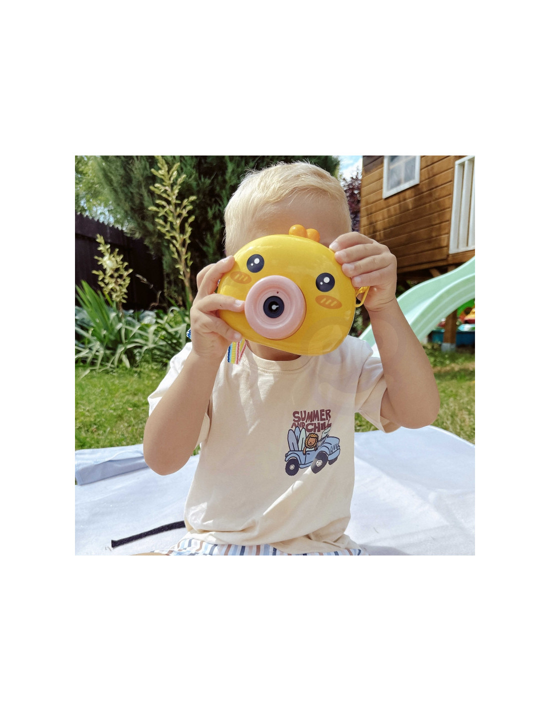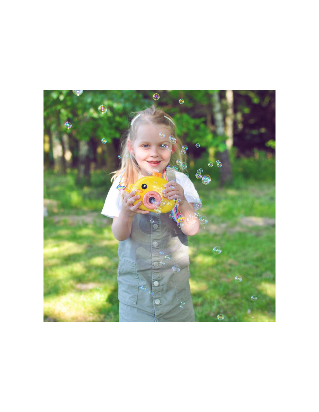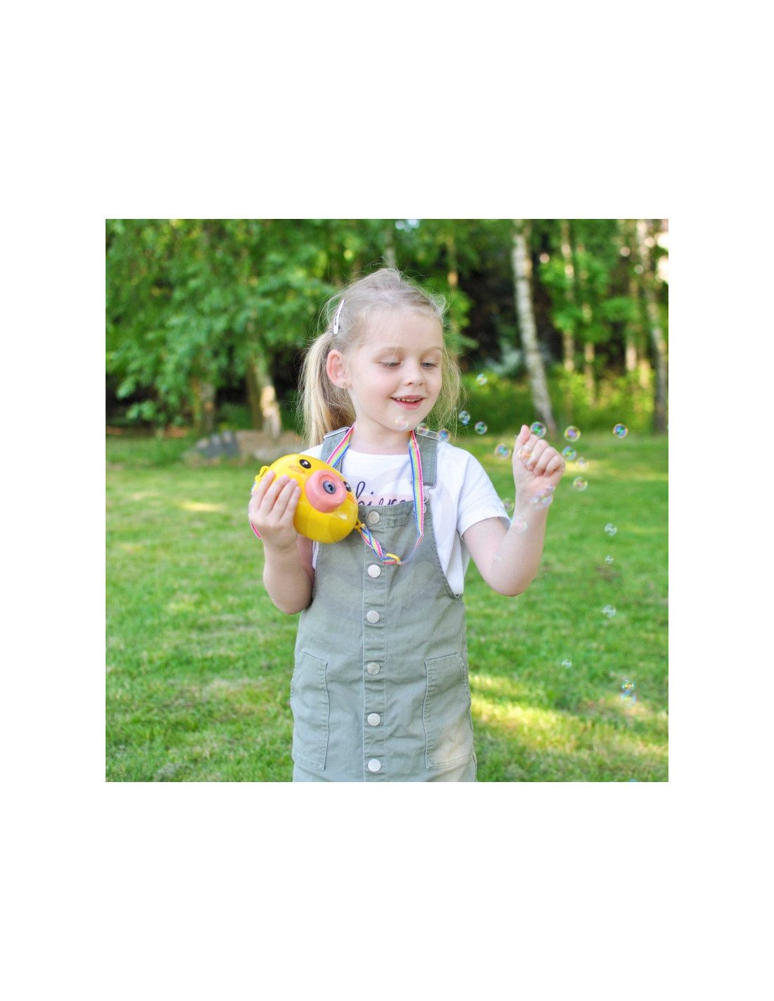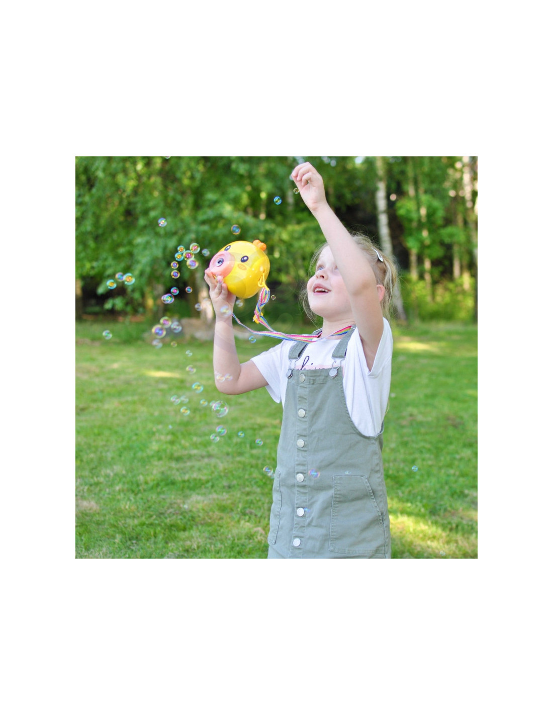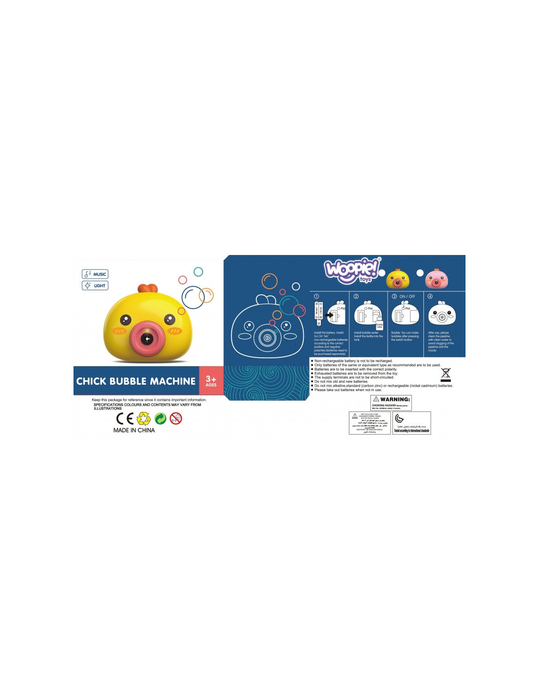 Woopie Muilo burbulų aparatas Viščiukas puikus žaislas vaikams. Paleisdamas burbulus viščiukas groja malonią melodiją, todėl pramoga tampa dar malonesnė. Įmontuotas vėjo malūnėlis burbuliukus nupučia dar toliau. Taip pat rasite indą burbulų skysčiui ir virvutę žaislui pakabinti ant kaklo. Woopie burbulų aparatas puikiai tinka gimtadieniams, šventėms, žaidimams kieme, parke ar paplūdimyje. Tai ne tik linksmas, bet ir kūrybiškumą bei judėjimą skatinantis žaislas.