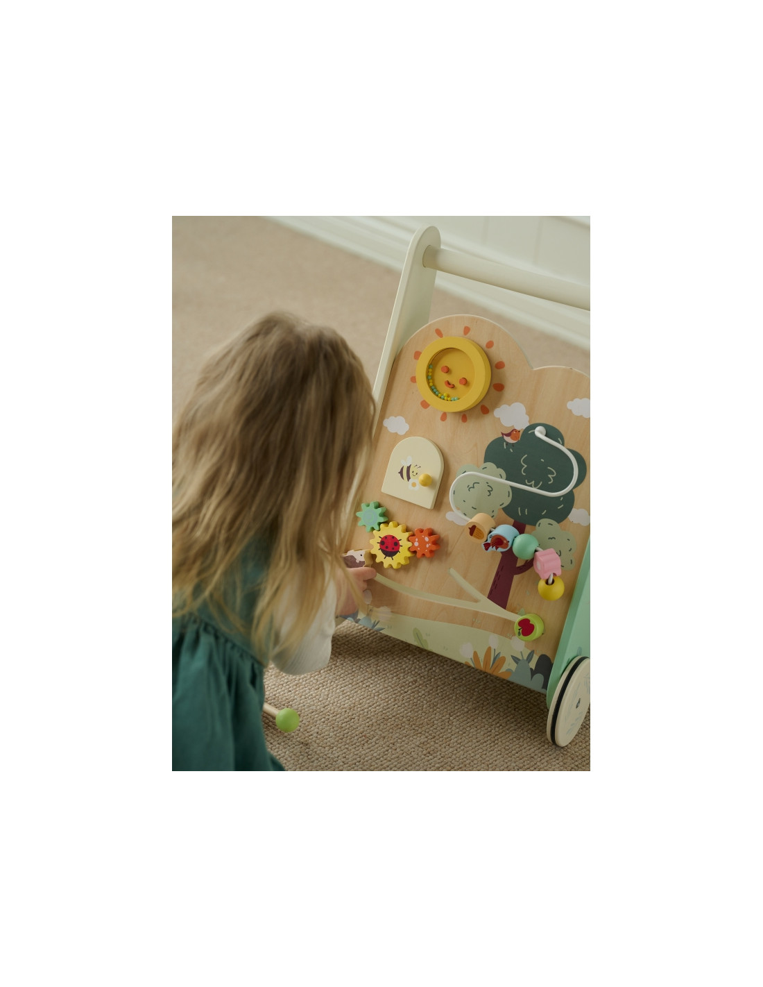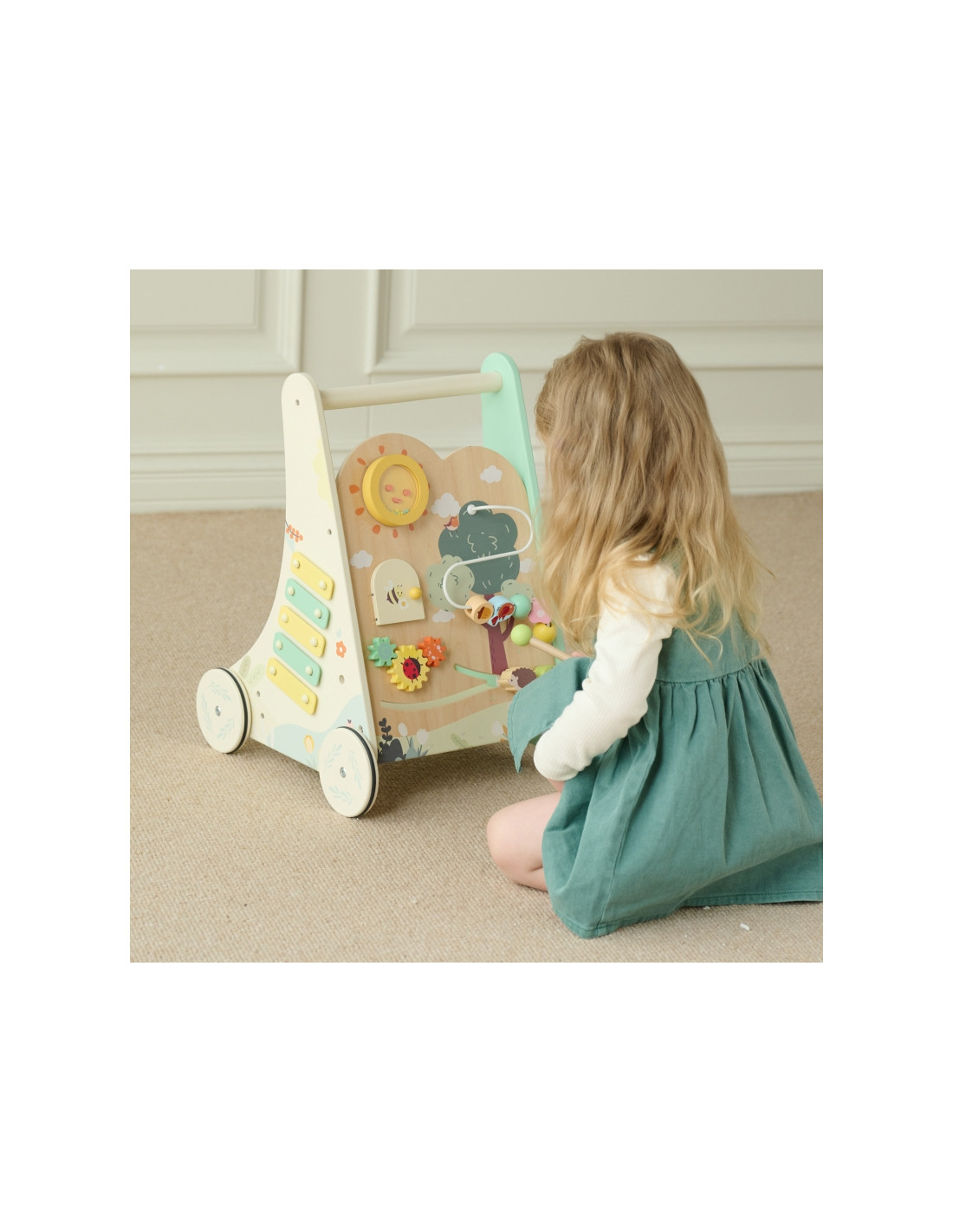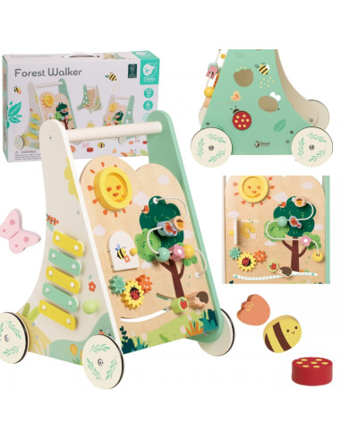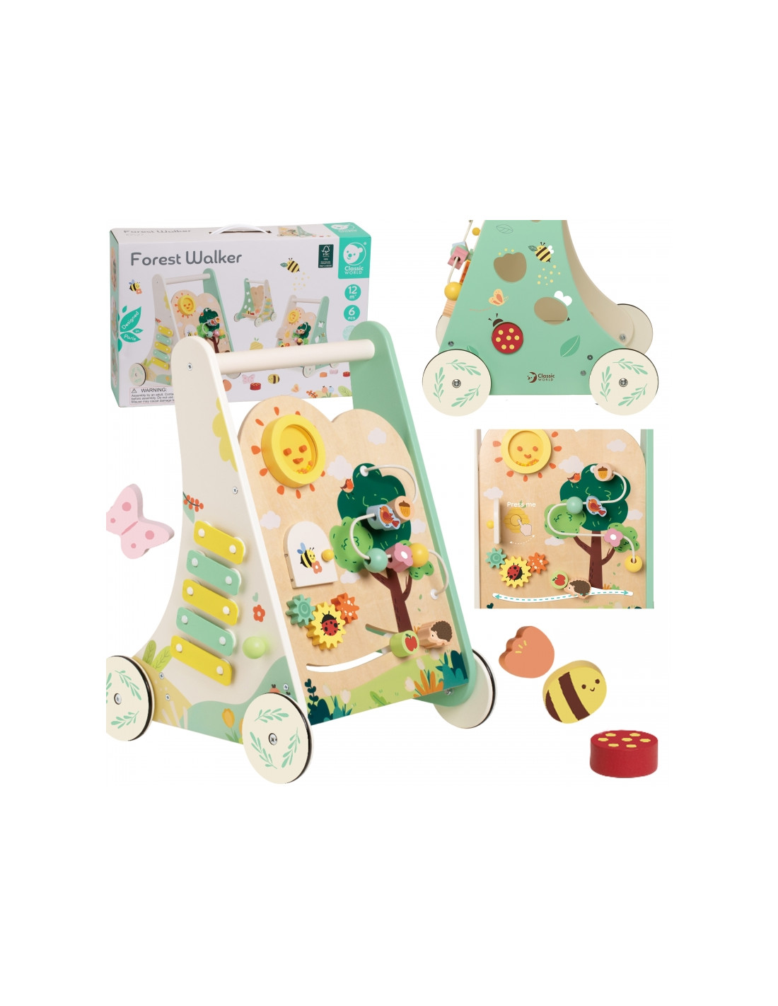 Leiskite savo vaikui atrasti magijos ir mokymosi kupiną pasaulį su garsaus prekės ženklo „Classic World “ „Miško vaikštyne“ . Ši medinė vaikštynė sukurta padėti jūsų vaikui žengti pirmuosius žingsnius , lavinant jo pojūčius ir motorinius įgūdžius. Su kiekvienu karoliuko judesiu, krumpliaračio pasukimu ar lėkštės smūgiu jūsų mažylis mokosi, kaip veikia jį supantis pasaulis, tuo pačiu stiprindamas rankytes ir koordinaciją . Vaikštynė lydės jūsų vaiką žengiant pirmuosius žingsnius. Pagamintas iš medžio, žaislas yra stabilus ir suteikia saugumo jausmą. Vaikštynės ratukai turi guminius sandariklius , kad būtų lengva ir tylu manevruoti. Elementai nudažyti vaikams saugiais dažais gražiomis spalvomis, kurios pradžiugins kiekvieną naudotoją ir suteiks daug džiaugsmo.