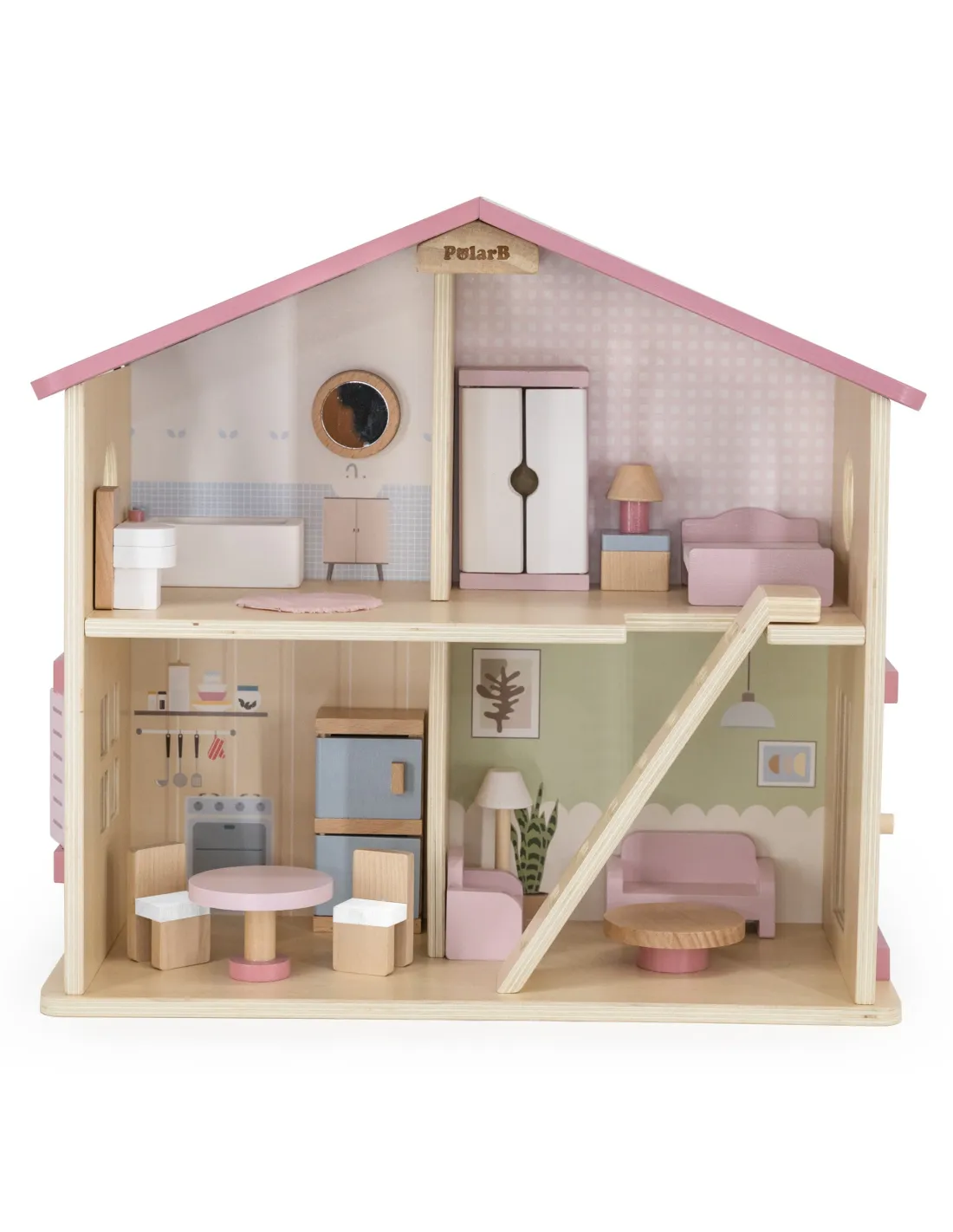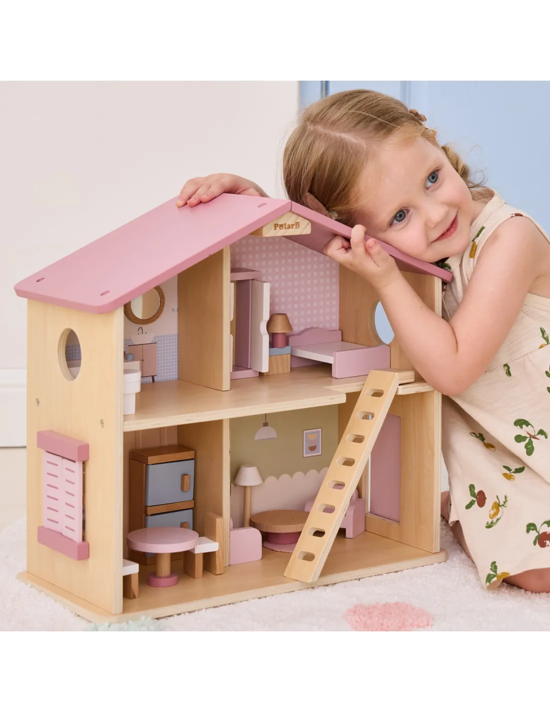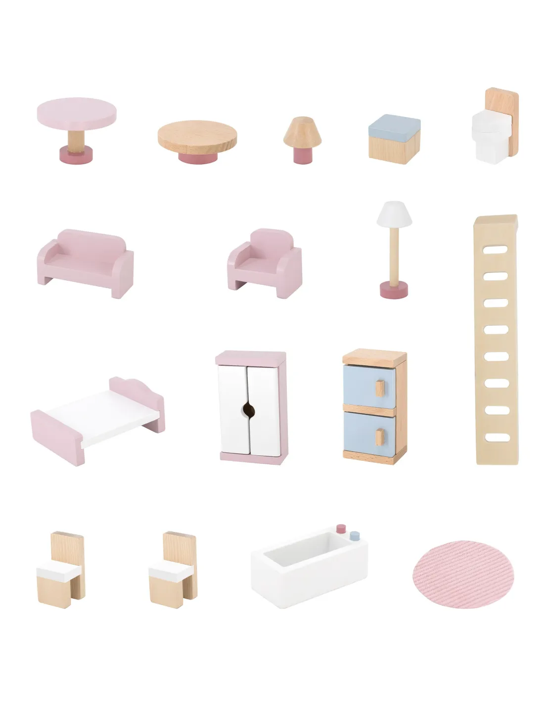 VIGA PolarB didelis medinis lėlių namelis, 17 vnt.