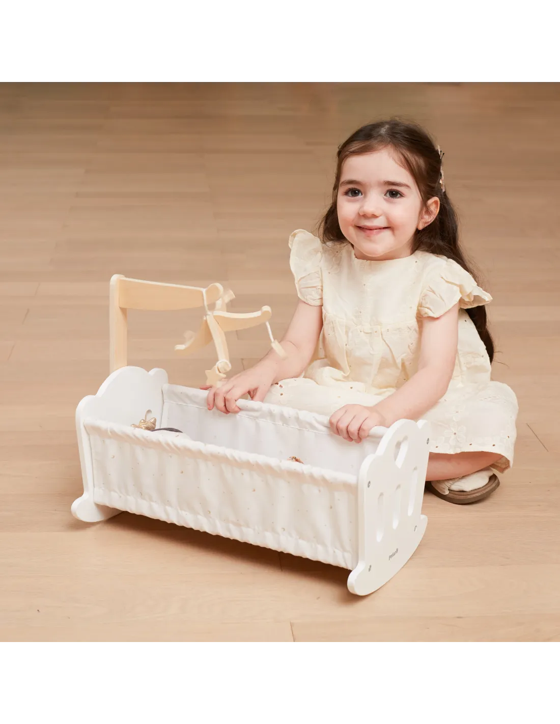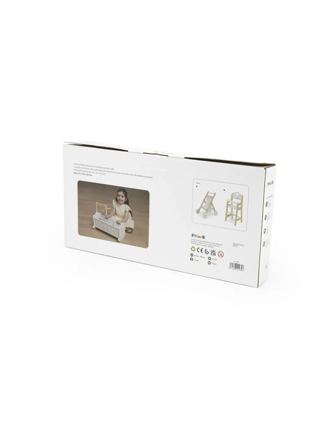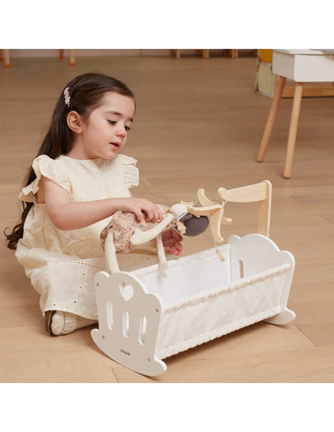 Paguldykite savo lėlę miegoti į šią gražiai pagamintą lopšį iš „VIGA“ „PolarB“ serijos. Lopšyje yra minkšta medvilninė pagalvė ir antklodė su mielu žvaigždžių ir mėnulio raštu, taip pat žavus mobilusis žaislas. Tinka lėlėms, kurių aukštis neviršija 38 cm.