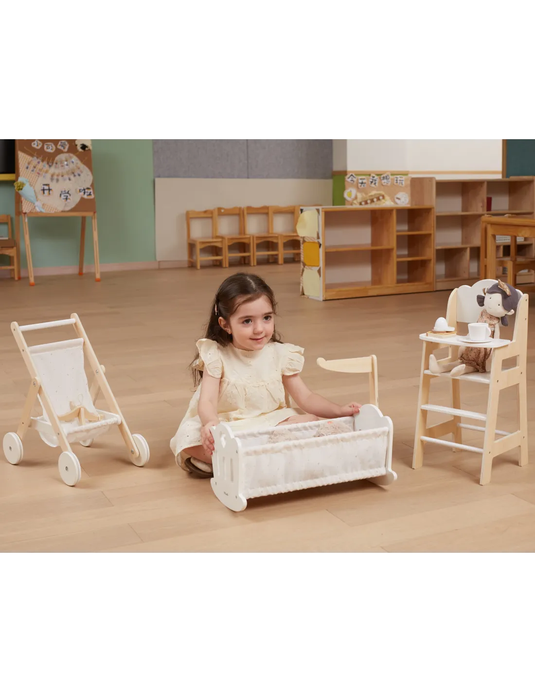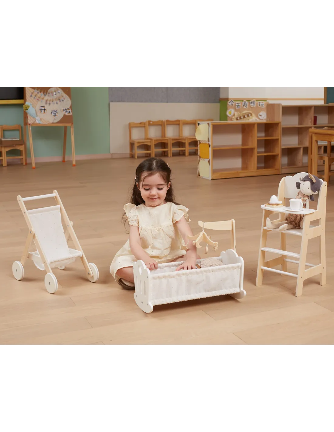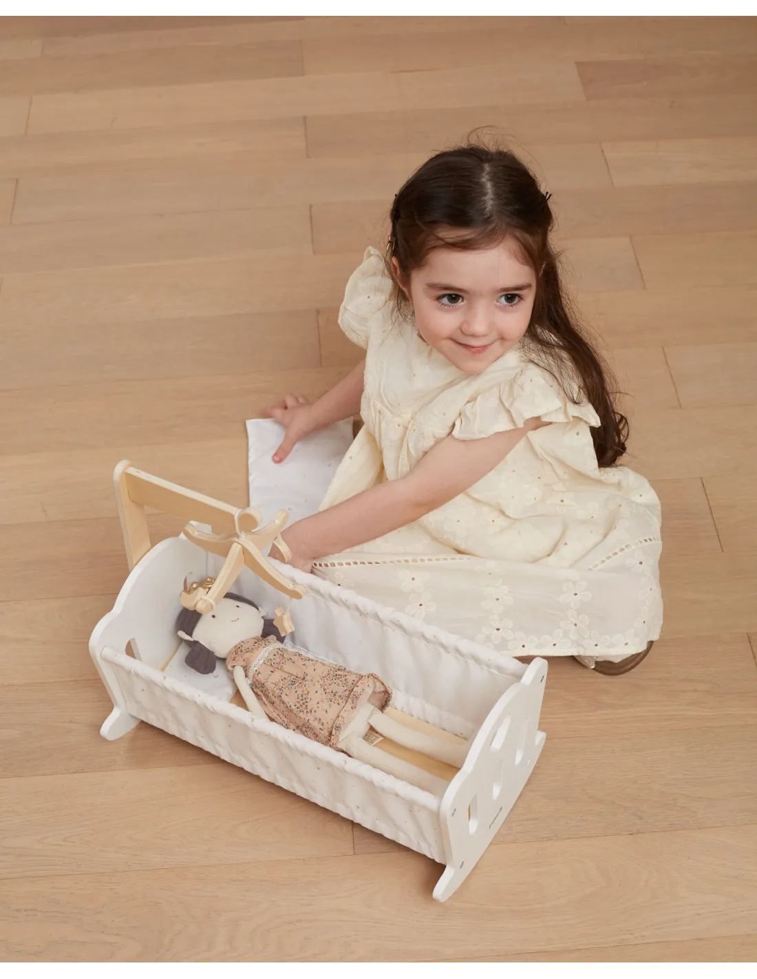 Paguldykite savo lėlę miegoti į šią gražiai pagamintą lopšį iš „VIGA“ „PolarB“ serijos. Lopšyje yra minkšta medvilninė pagalvė ir antklodė su mielu žvaigždžių ir mėnulio raštu, taip pat žavus mobilusis žaislas. Tinka lėlėms, kurių aukštis neviršija 38 cm.