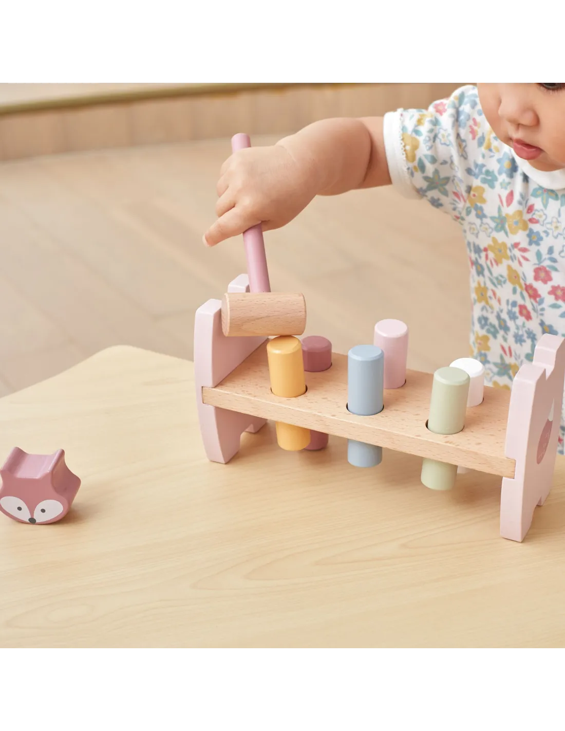 VIGA PolarB Medinė piramidė ir perforatorius su plaktuku Montessori Fox