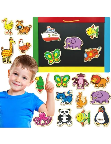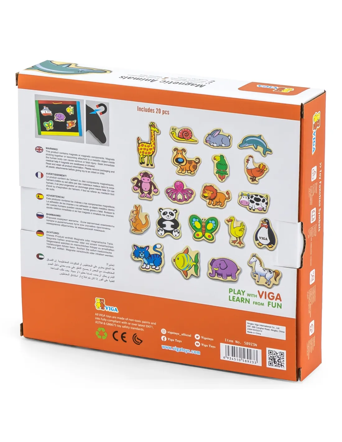 VIGA Wooden Animal Magnets is a unique set of 20 colorful pieces that will transport children to the fascinating world of fauna. Each magnet depicts a different animal, making playtime diverse and engaging. The set is made of high-quality wood, ensuring durability and safety during everyday activities on magnetic boards or the refrigerator. These magnetic animals are not only a toy but also an excellent teaching aid. Thanks to them, young children can learn the names of animals, their natural habitats, and classification. The vibrant colors and aesthetically pleasing design are eye-catching, encouraging creative creation of their own stories and scenes featuring the inhabitants of farms, safaris, or the depths of the sea.